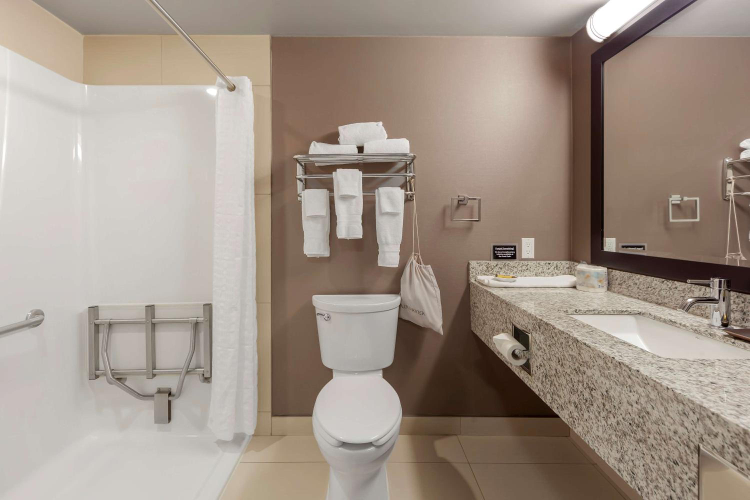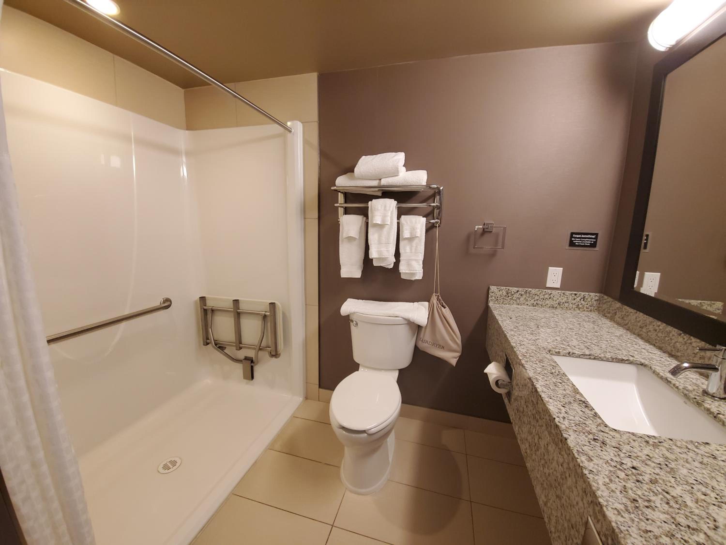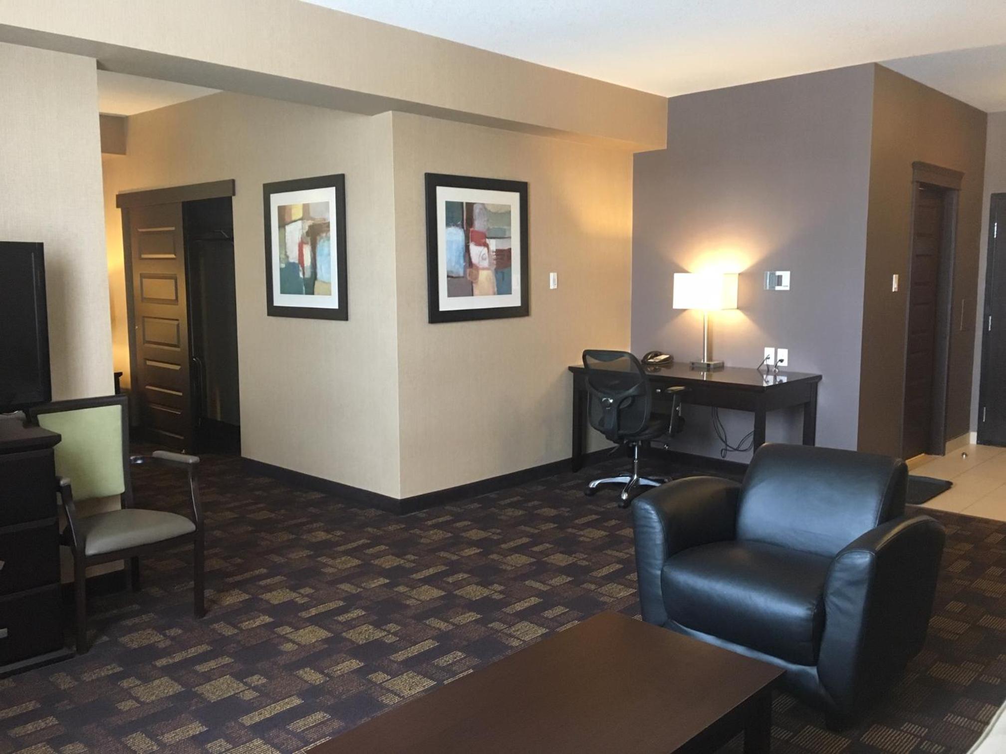 The hotel is clean, breakfast was great, conveniently right off the highway but still quiet. The pool was a bit chilly, and the parking lot had lots of ruts but out of the hotels control. We will stay again!
