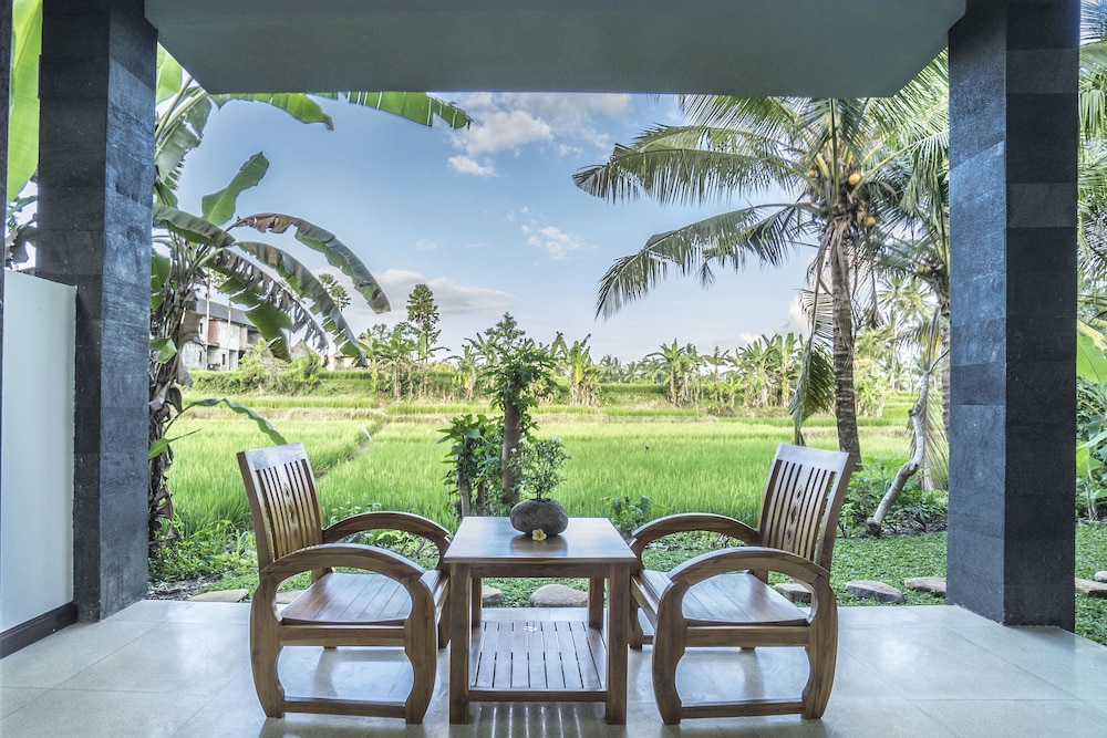 Was welcomed with fresh juice and friendly service. Situated in a lovely serene village, surrounded by rice fields, luscious terrain and only 5 minute drive to Ubud Central. Rooms were like premier room,s with large bathroom, hallway entrance and dining area and balcony/terrace. Very comfortable bed with cotton linen. WIFI (free), Mini bar, tea/coffee facilities, air conditioning. Rooms were cleaned each day and spotless. Fantastic wireless connection, free shuttle to Ubud central. I hired a scooter for AUD $5/day. Very friendly staff who were always open to help in anyway.