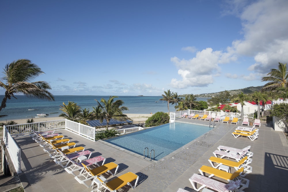 Nous avons passé 10jrs sur l ile de Rodrigues Il y avait vraiment 3jrs de trop A cette saison si vous n êtes pas kitesurfer il n y a aucun interêt à séjourner dans cet hotel le site est superbe de mème que la plage mais vous ne pouvez pas vous baigner, trop de vent de courant et la plage est mobilisée par les surfers La piscine est petite et froide De plus il n y aurait qu'à marée haute ou à la rigueur vous pourriez nager car ce lagon est de très faible profondeur Heureusement à partir de l ' hotel il y a des excursions payantes dans les différents ilots voisins ou vous pique niquez et là vous pouvez vous baigner Il faut savoir que sur Rodrigues l eau se fait rare et elle est coupée de 10h à 17h Le buffet du soir est conséquent mais manque de grillades viandes ou poissons et vous saturez des ragouts divers .Le service et le staff sont très professionnels .Heureusement que nous avions déjà passé 2 semaines sur Maurice car les bains de mer nous auraient manqué Quant au comfort des chambres ,la literie est bonne la salle d'eau serait à revoir La pomme de douche ne diffuse qu'un filet d'eau Par contre chaque chambre a 1 petite terrasse très agréable avec vue sur le lagon c est superbe!
