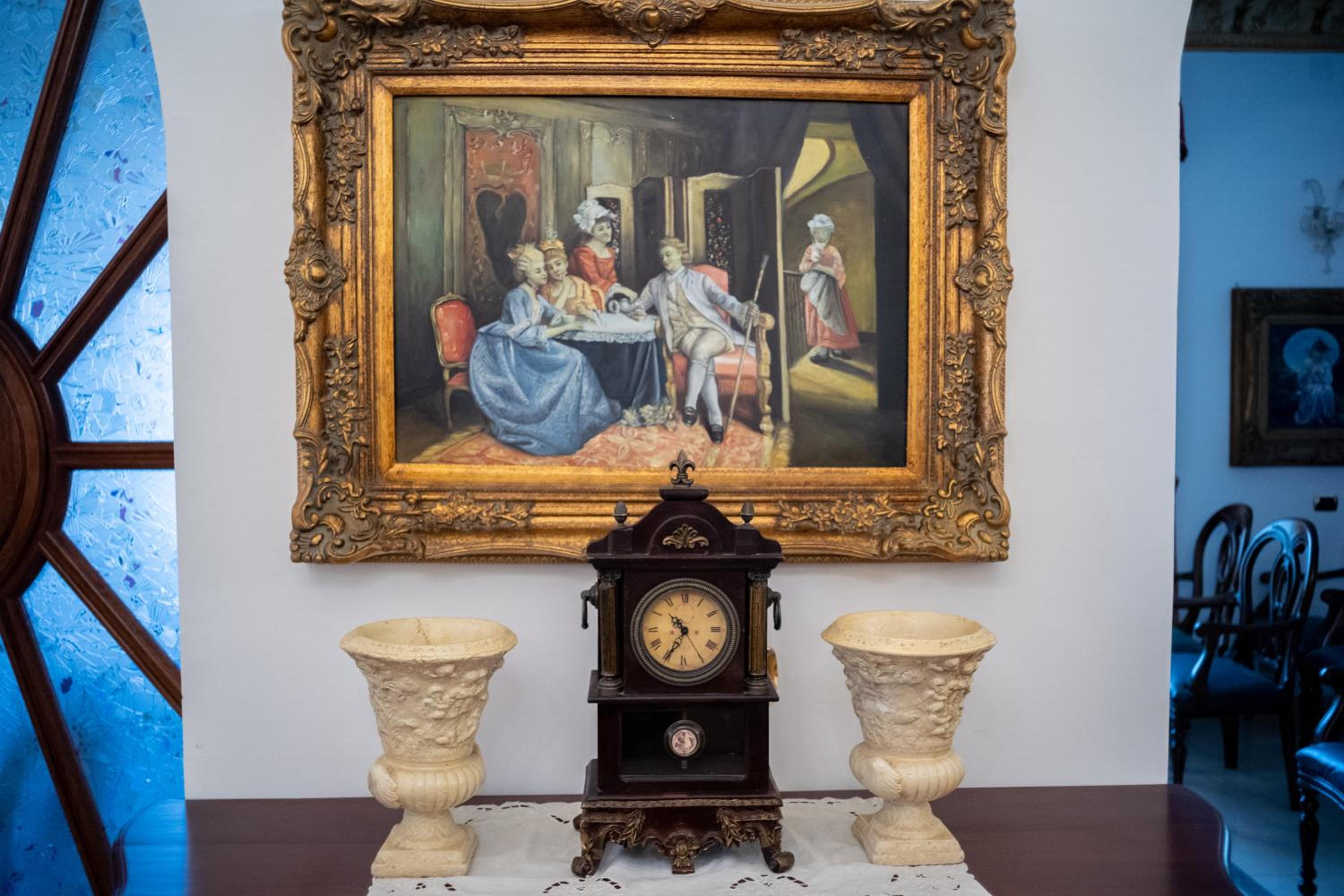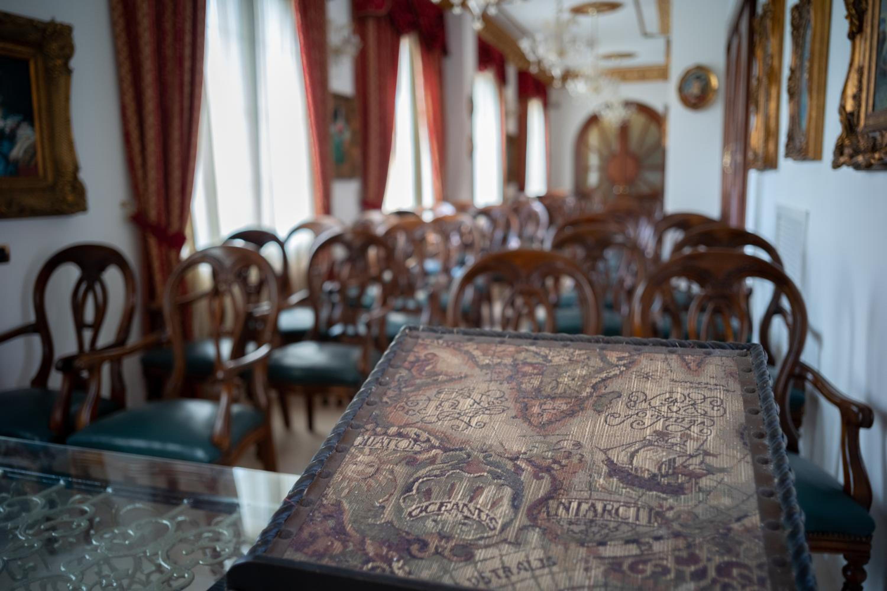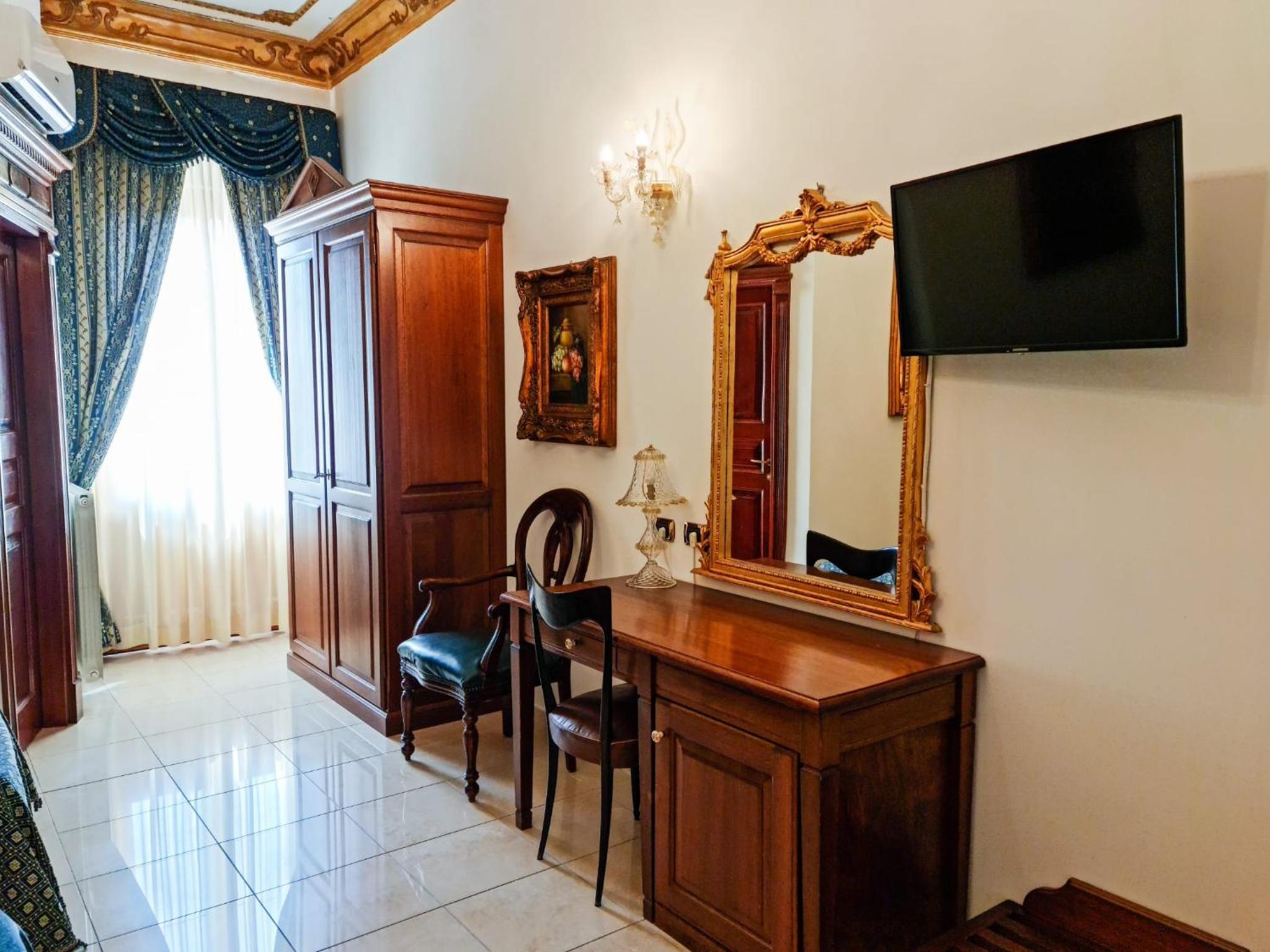The town of Iglesias is an approximate 2-hour drive from the Sardinian capital on the west coast. The choices are somewhat limited in this town; the reviews of prior guests helped us in our choice. This area of Sardinia is essentially in a state of hibernation in March a non-tourist month on the island. The hotel was built in originally as a private home, owned apparently by lawyers during the heyday of the local mining industry. The property was bought by an interested local investor and lover of Late Broque-Rococo style décor. Legend has it that he scouted through- out Italy for the original furnishing that met his criteria. Be prepared for a visual treat. The floors are of beautiful polished marble, the woodwork throughout is of high quality. Our room’s chandelier was Morano glass…think the Italian version of Tiffany. The ceiling crown molding is real ceramic, a testimony to the high level of detail throughout the hotel.