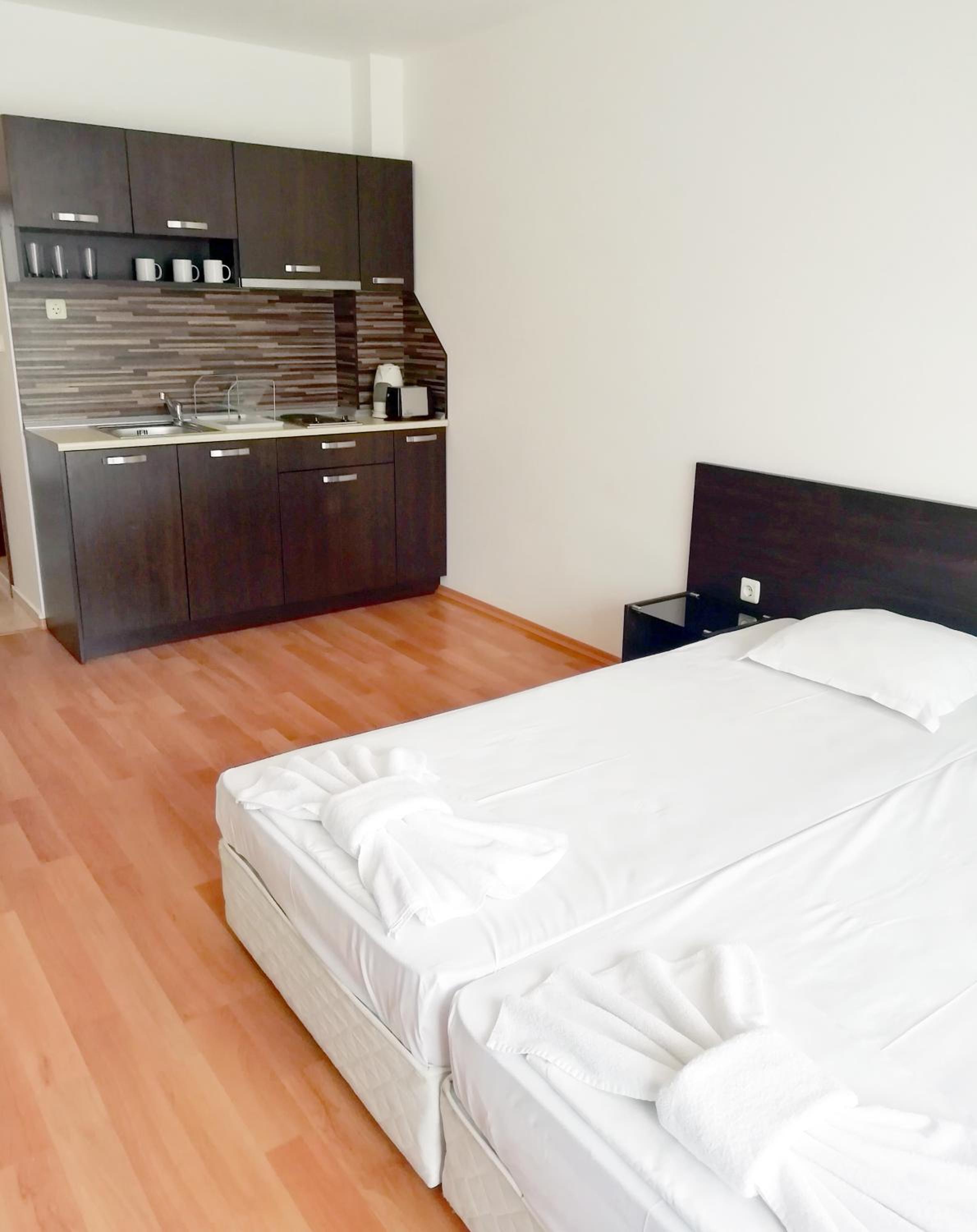 Luxurious Gated Complex: Apart Hotel Happy offers a luxurious Mediterranean-style architecture combined with modern interior design, nestled in the serene part of Sunny Beach.