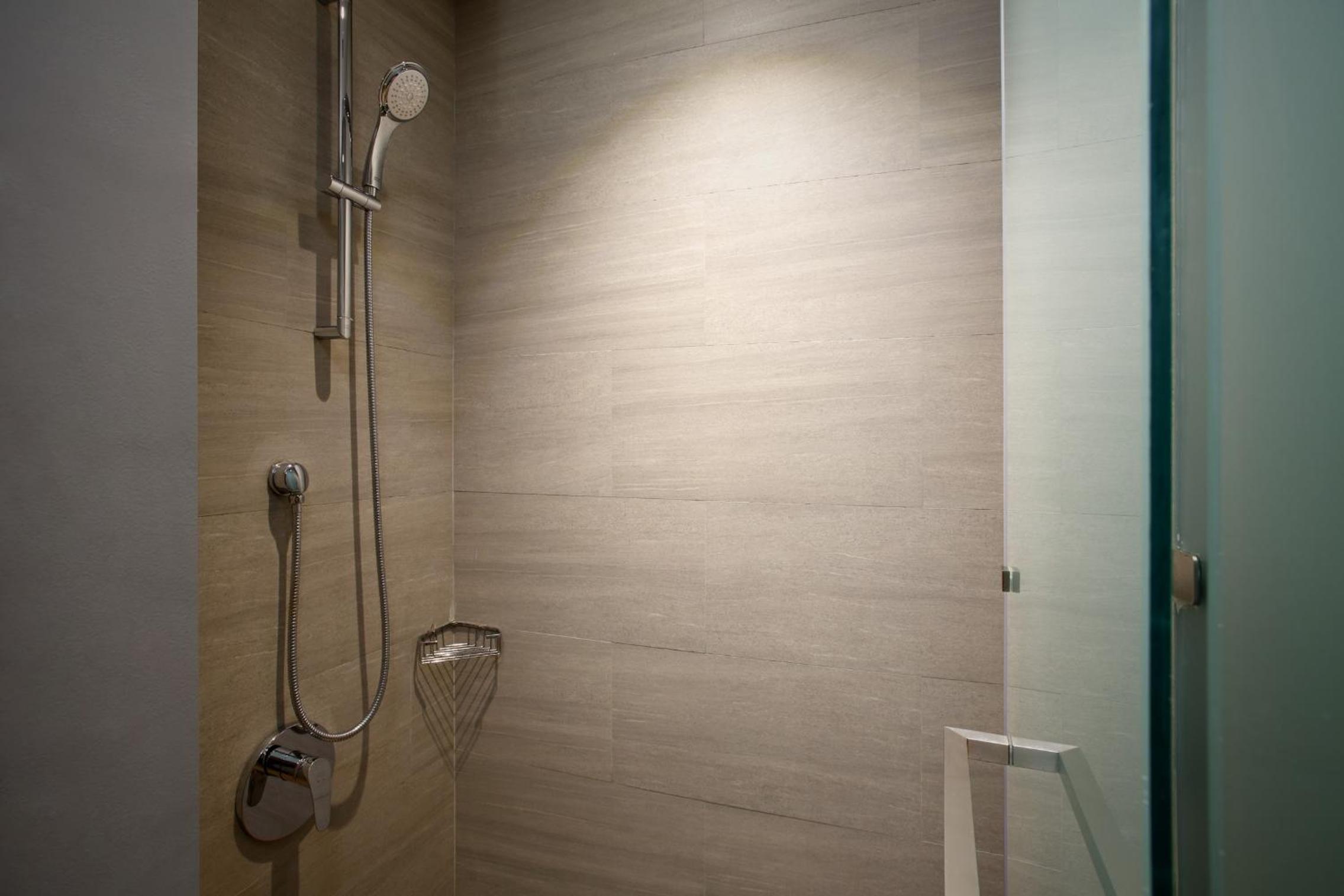 When taking a shower, the water will stay for minutes.