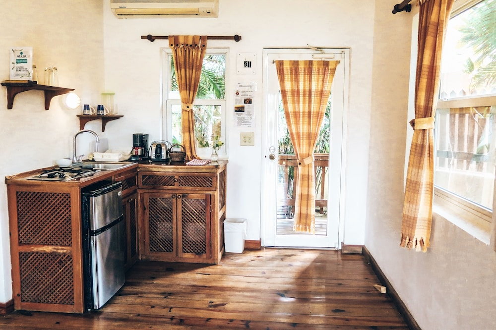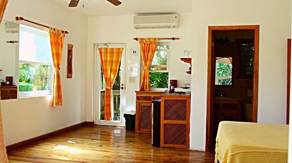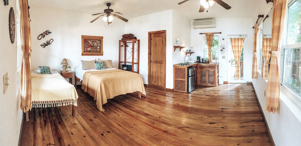 We loved this place! The location is great. It is nice to be near West End (a very short walk), but far enough away that it was a very peaceful setting. The hotel felt like a tree house in the jungle with a beautiful ocean view. The studio room was perfect with great amenities if you want to cook or just make coffee and use the refrigerator. The air conditioning was great and we loved our private deck with a hammock. The cafe is so cute and food is also excellent. The WiFi in the cafe is good too! We highly recommend this hotel and plan to return.