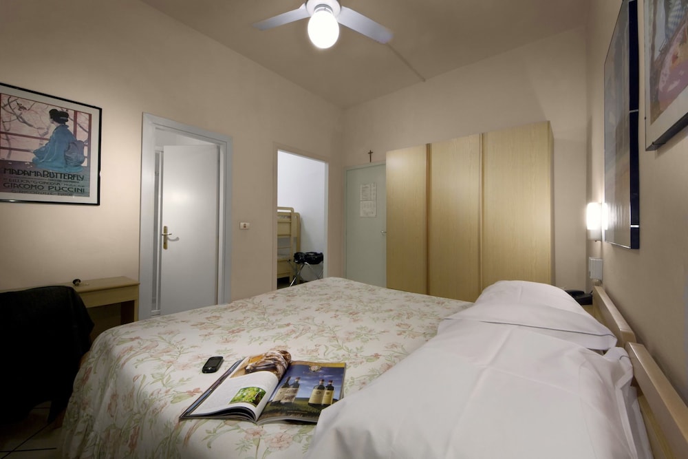 In realtà non è disponibile alcun parcheggio gratuito (intorno alla struttura si trovano solo parcometri pubblici). Inoltre avevamo bisogno della culla bambino ma, non avendo ricevuto riscontro alla mia esplicita richiesta in fase di prenotazione, chiamando la struttura per telefono ci è stato detto che non hanno alcuna culla o lettino: per compensare la lacuna ci è stata offerta una camera tripla, con letto regolare (senza alcun sovrapprezzo). Purtroppo al primo tentativo ci è stata data una stanza "non pronta" (e senza televisore), ma hanno subito rimediato con altra stanza più ampia (con televisore... ma senza telecomando). Se avessi saputo prima la verità, quantomeno avrei scritto una recensione migliore :)