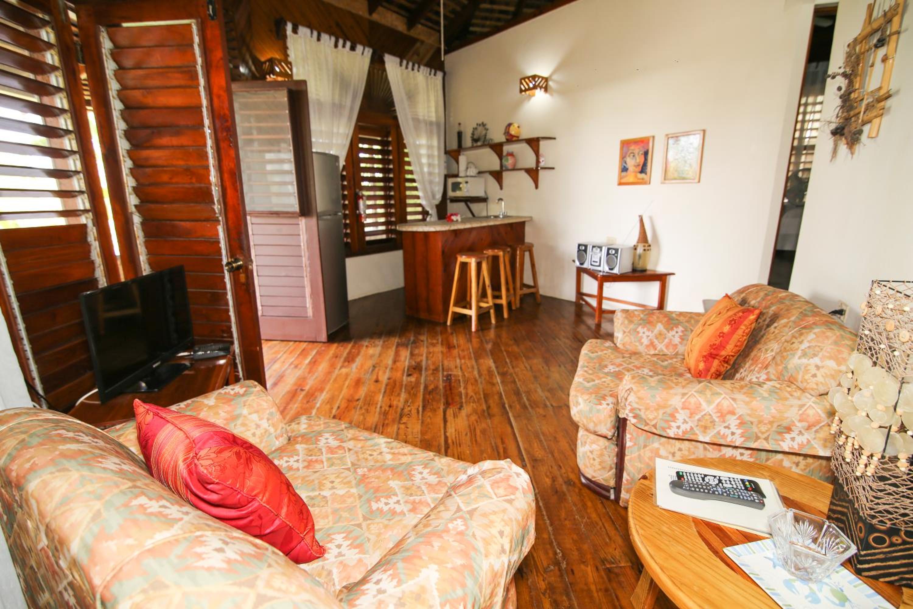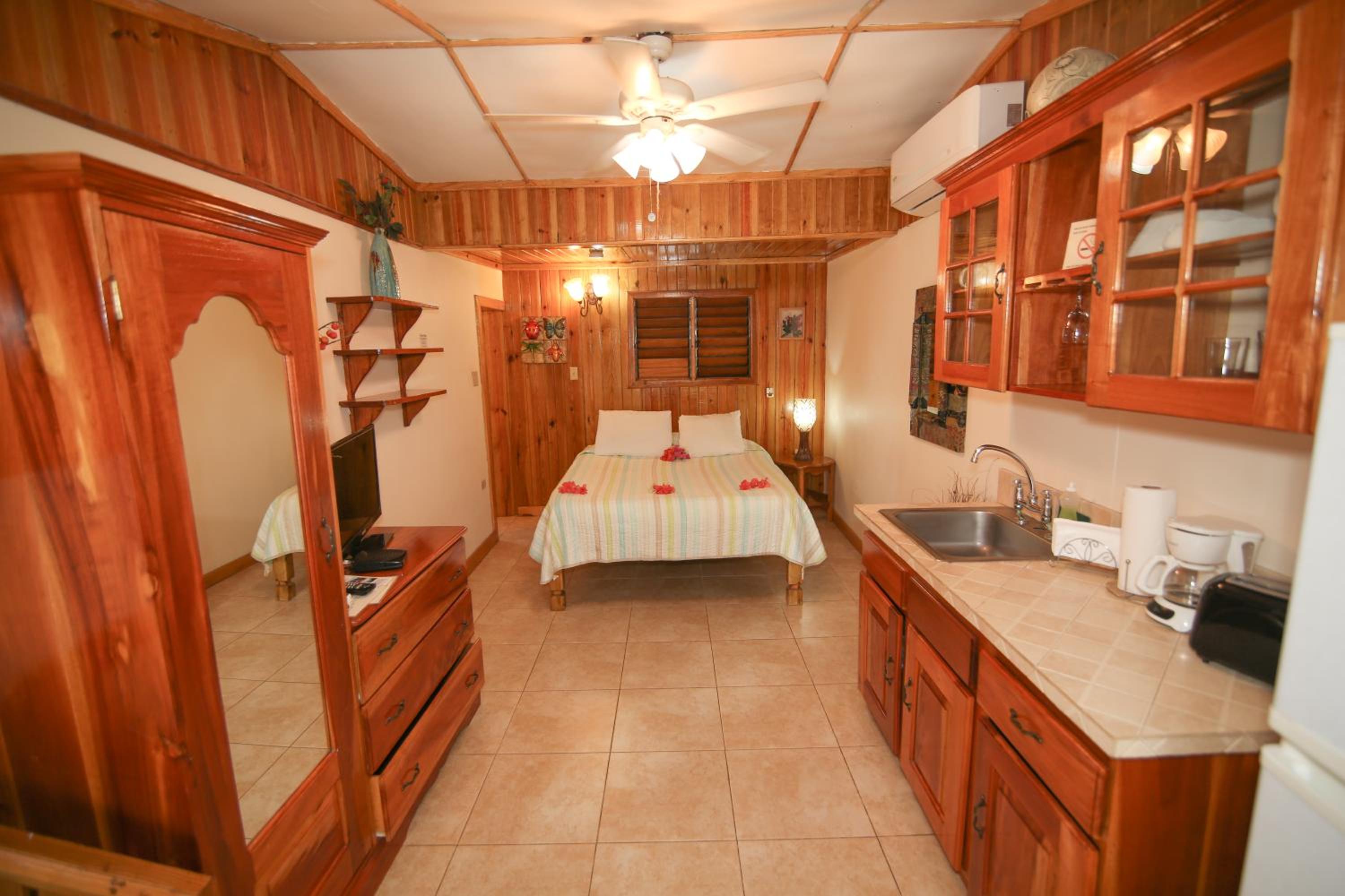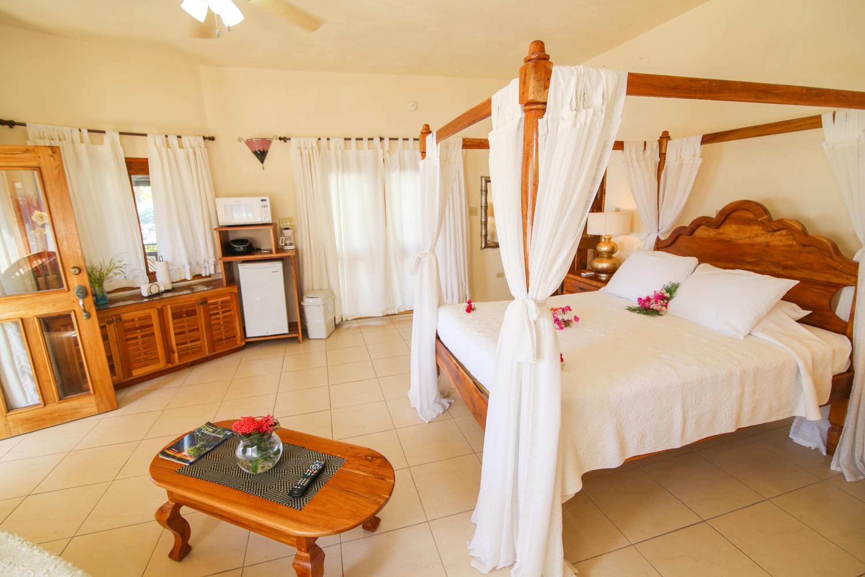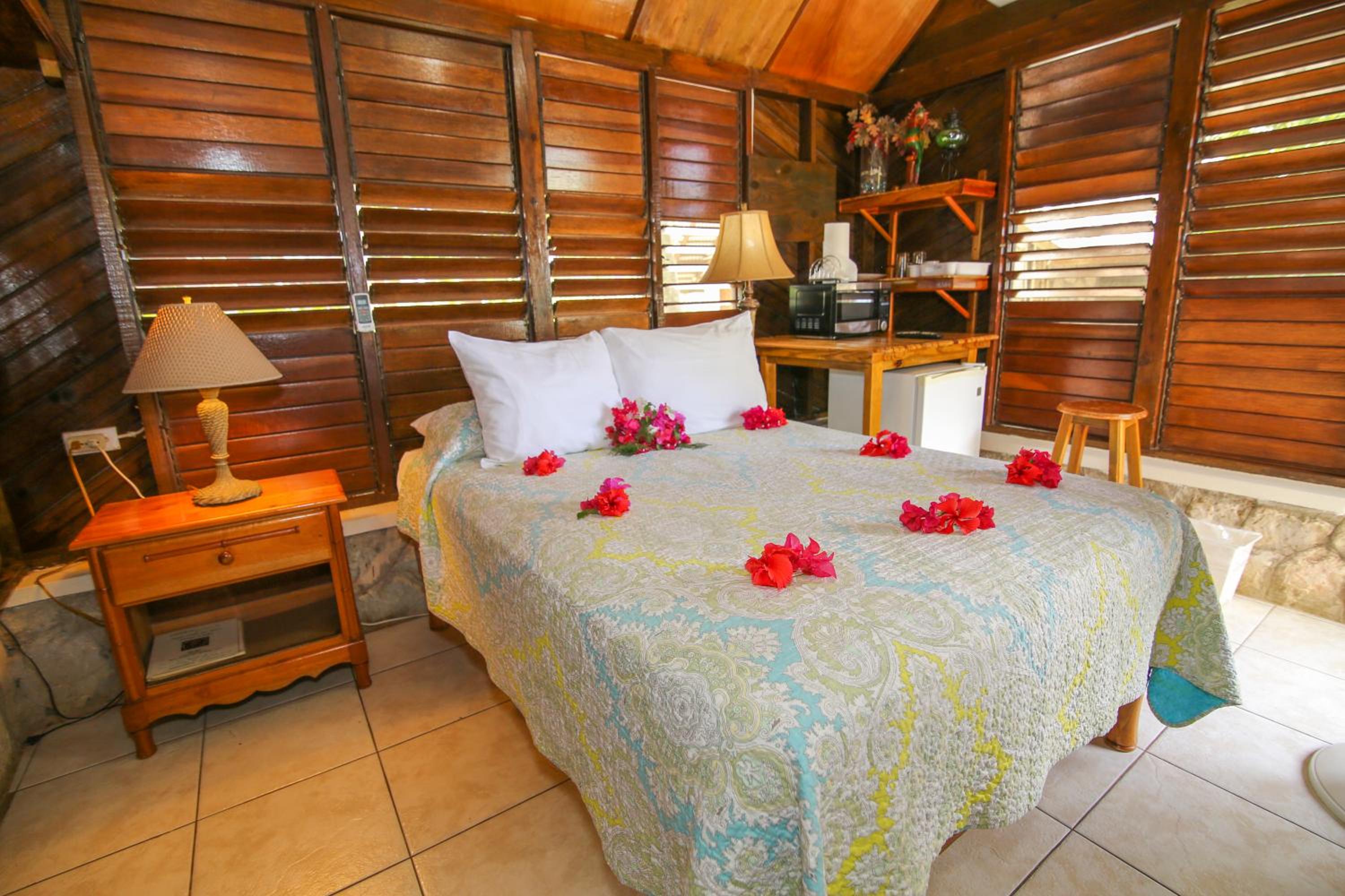 The cottages and suites at Catcha Falling Star offer a unique experience with locally made beds and stunning views of the Caribbean Sea. Each room is equipped with cable TV and some even have a convenient kitchenette for added comfort.
