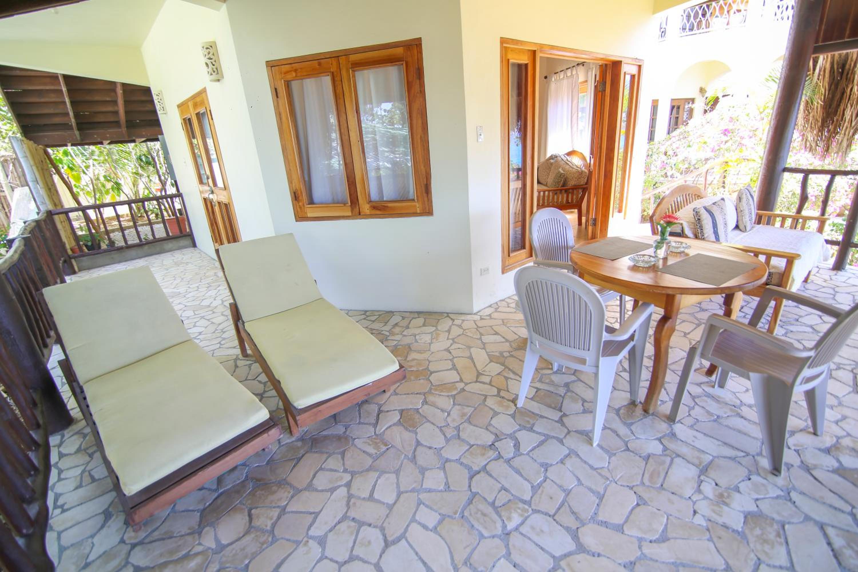We stayed in Aries. Second floor one bedroom. Only the bedroom was airconditioned, but it worked well and we slept under blankets. The view from the balcony was amazing.