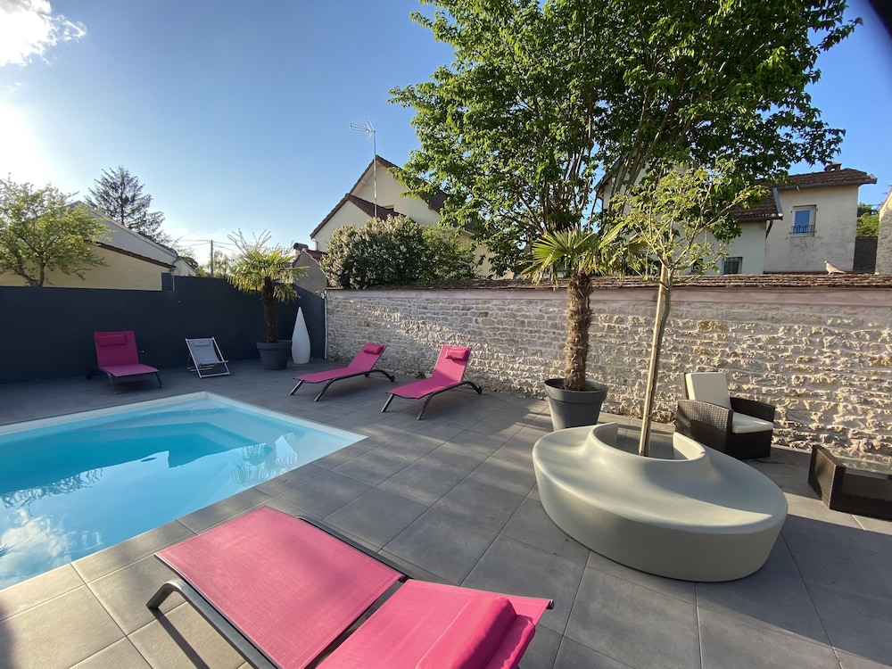 Endroit paisible autour de la piscine