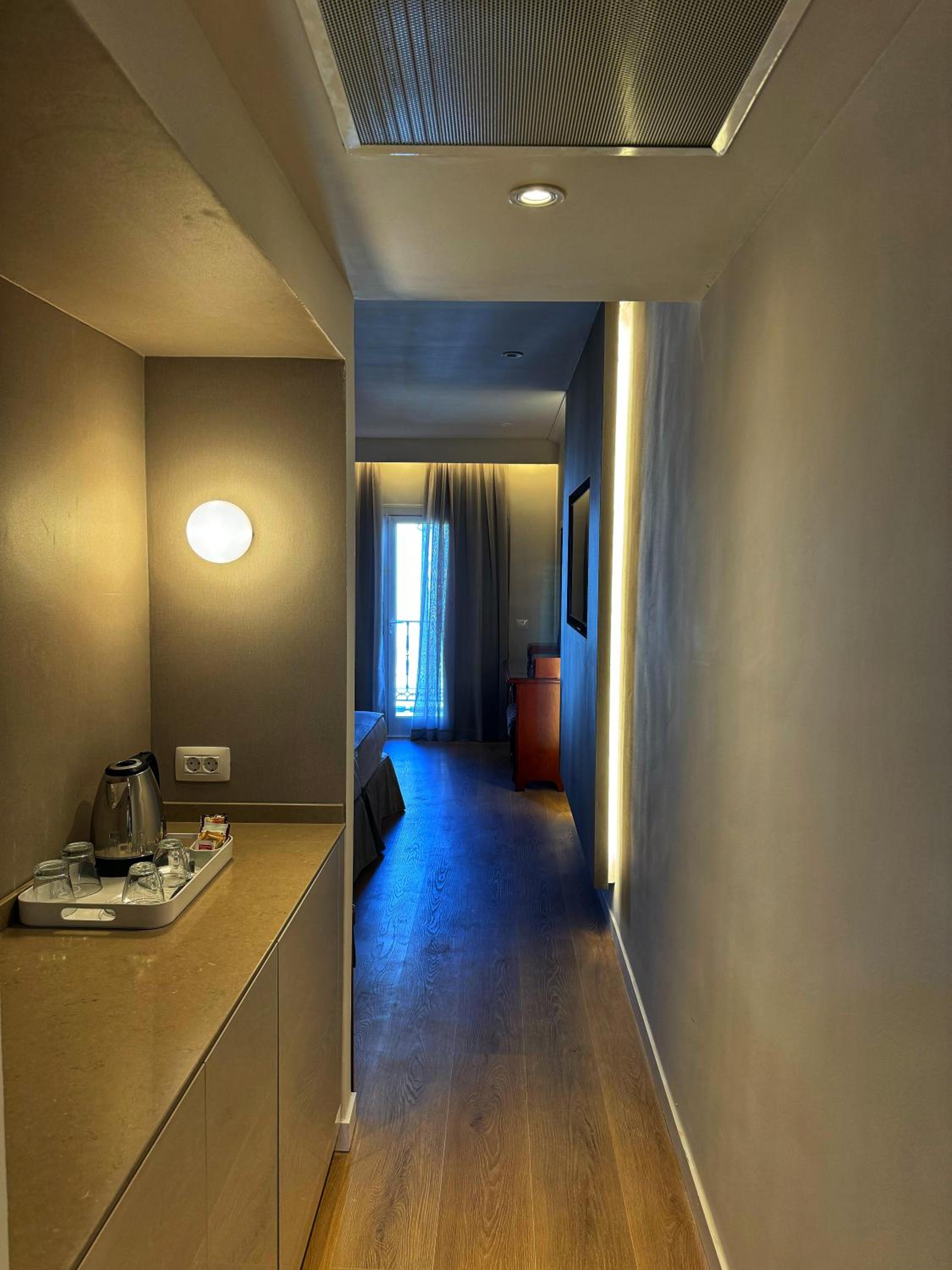 The location is fantastic - so central for the town. The hotel feels quintessentially Spanish with wrought iron balconies, ornate tiling , artwork. The free refillable water is a lovely idea.