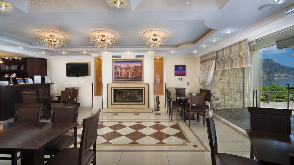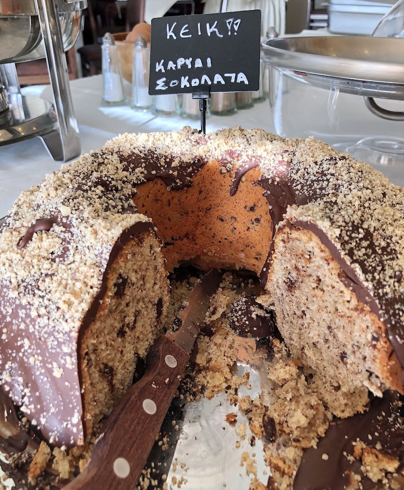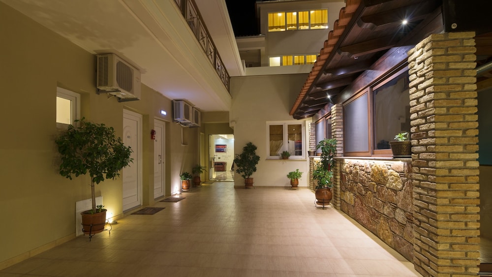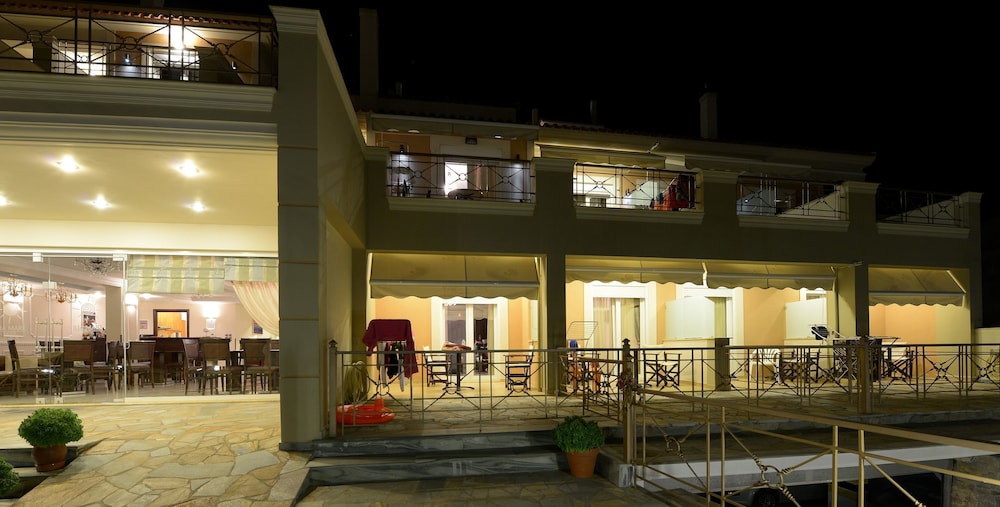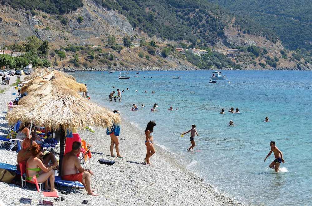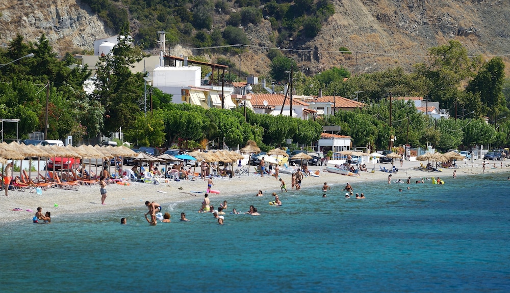 It's a cosy family- friendly hotel next to the clear blue sea (probably the best in the area)with its own umbrellas among only few others. Worth mentioning is also the big breakfast buffet (every day-apart from the usual stuff -different greek pastries),the parking lot (as there is a narrow street in front of the hotel )and the vast and discrete balcony with its magnificent view over the serene sea (apart from room 101-which compensated you for its less spectacular view with the possibility of taking your breakfast (in your pyjamas) in the privacy of your balcony as it is next to the dinning area). Only drawback:weak Internet connection-which no one will miss staying there!