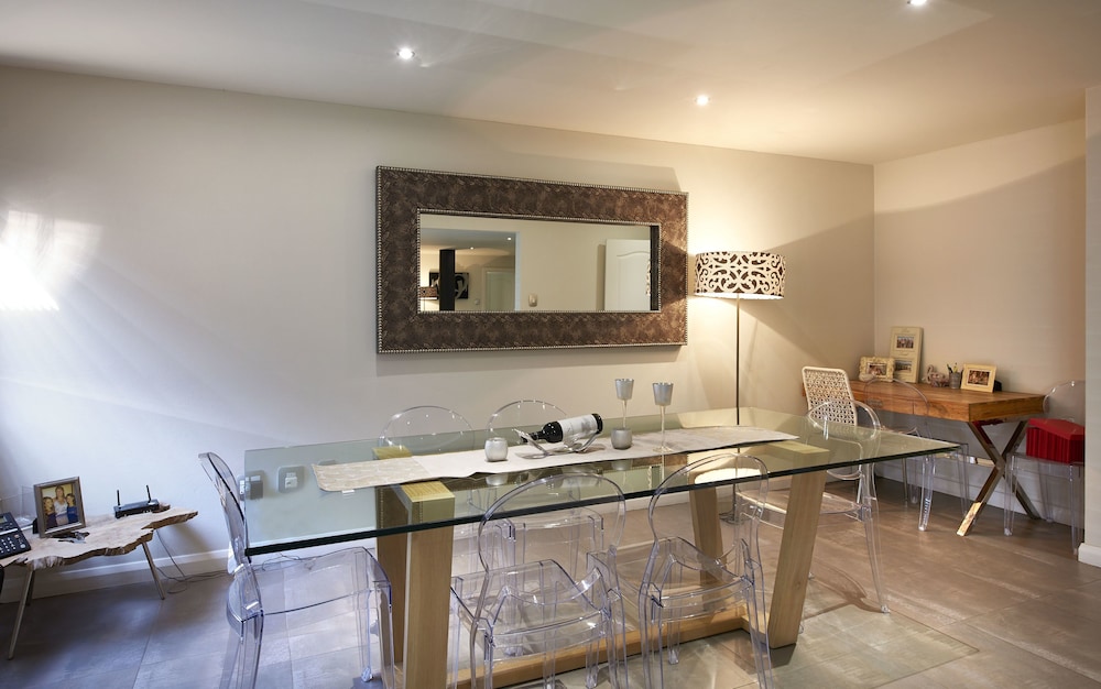 We stayed at a 2-bedroom apartment, 2 bathrooms, fully equipped kitchen, on the ground floor, with a lovely varanda and garden. Plenty of space, serenity and comfort at a secluded neighborhood, accessed through a road checkpoint. Yet, just a few minutes away from Sandton City Mall by car. The property seems to operate mainly for long-term stays, and the spaces are well-planned, so we didn´t really see any of the other tenants. Free wifi provided. Fully recommended.