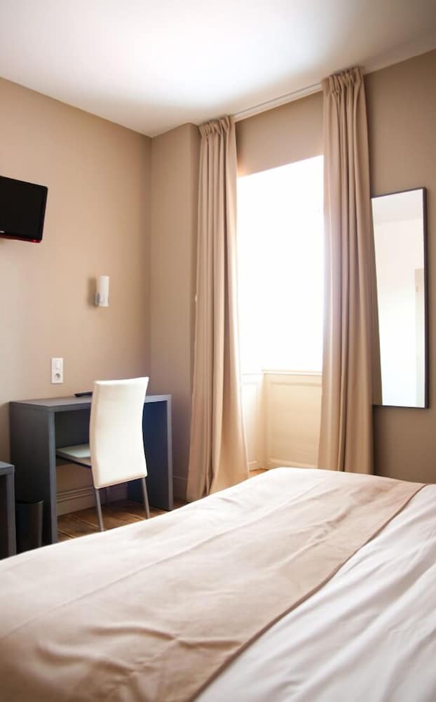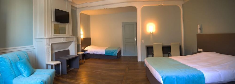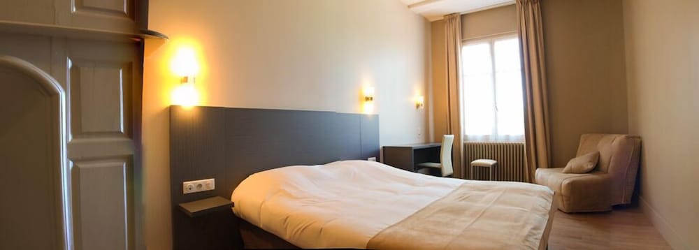 Prima hotel voor doorreis. Mooi Frans hotel met een ruime kamer voor 4 personen. Mooie badkamer. Goed restaurant en lekker gezwommen. Wat wel een enorme teleurstelling was, is dat het hotel veel minder vraagt als je rechtstreeks een kamer boekt. Wij hebben 109,- moeten betalen voor een 4-persoonskamer, terwijl de vaste prijs 95,- is. De vaste prijzen hangen in de kamers en bij de voordeur. Als uitleg gaven ze ook aan dat het kwam, omdat we via hotels.com hebben geboekt. Erg jammer...