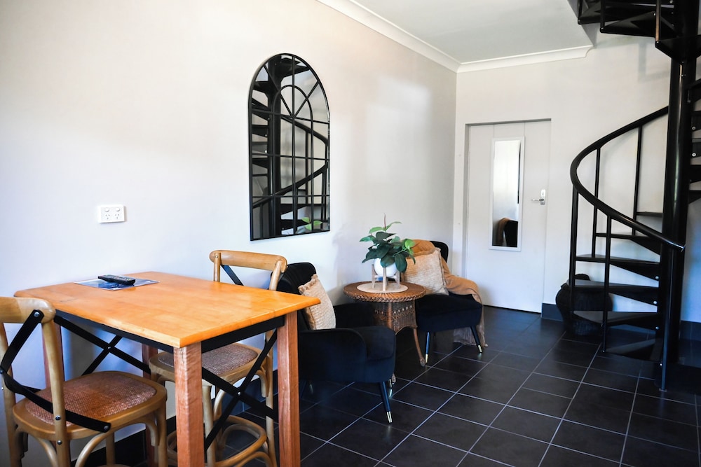 Lovely boutique accommodation in the heart of Mansfield. Central to everything, yet quiet. Great restoration/ transformation of old bank building. Very elegant and tastefully decorated rooms. We had a refreshing spa bath in our room. Well stocked bar fridge if you needed that. Complimentary pod coffee. Air conditioning. Very comfortable king bed.