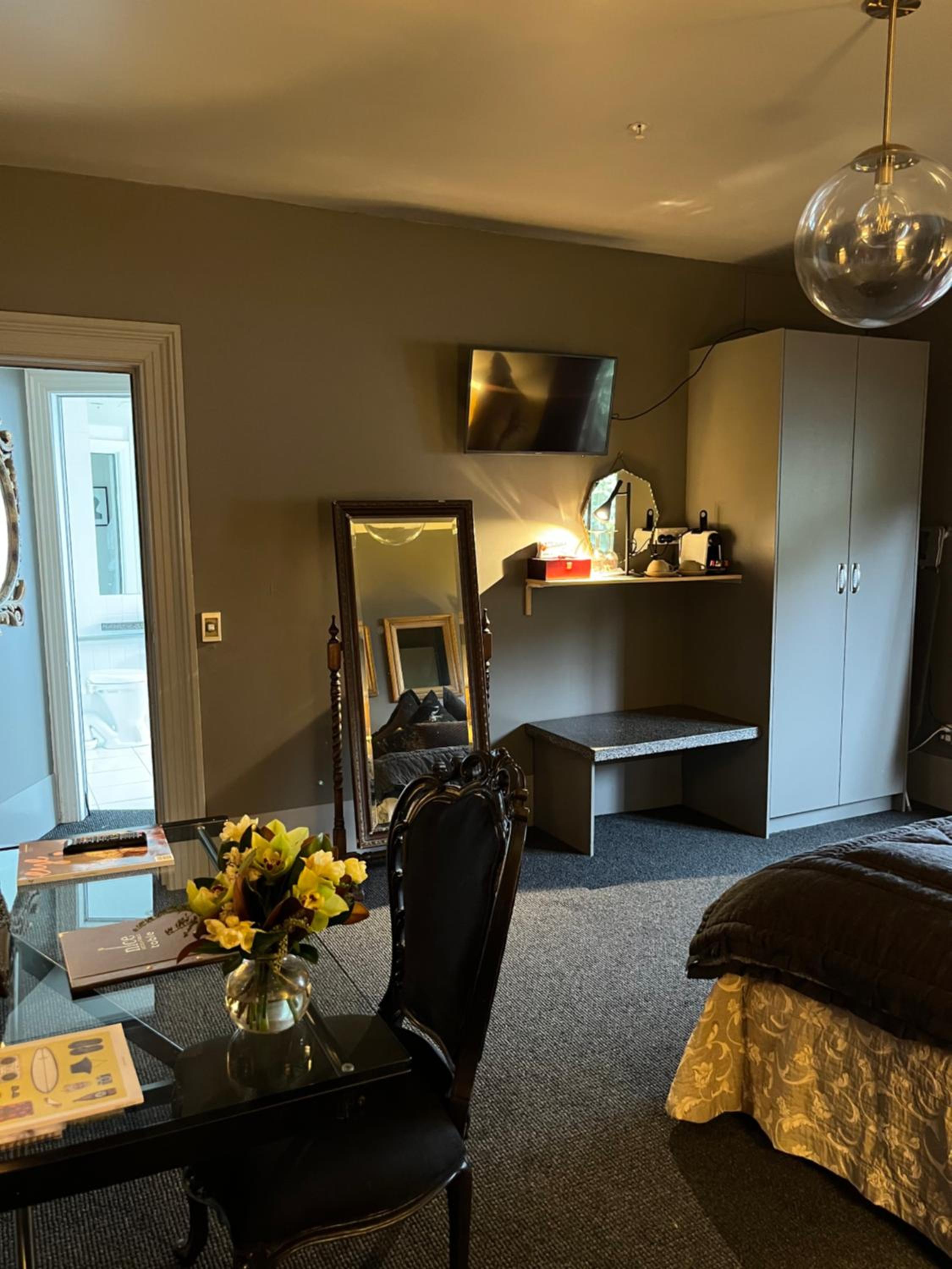 Put in room that was road side so noisy . Back on to kitchen noisy paid way to much for this room should not be a room they use have to walk thru dining room would not recommend had they been up front about room would have never stayed .