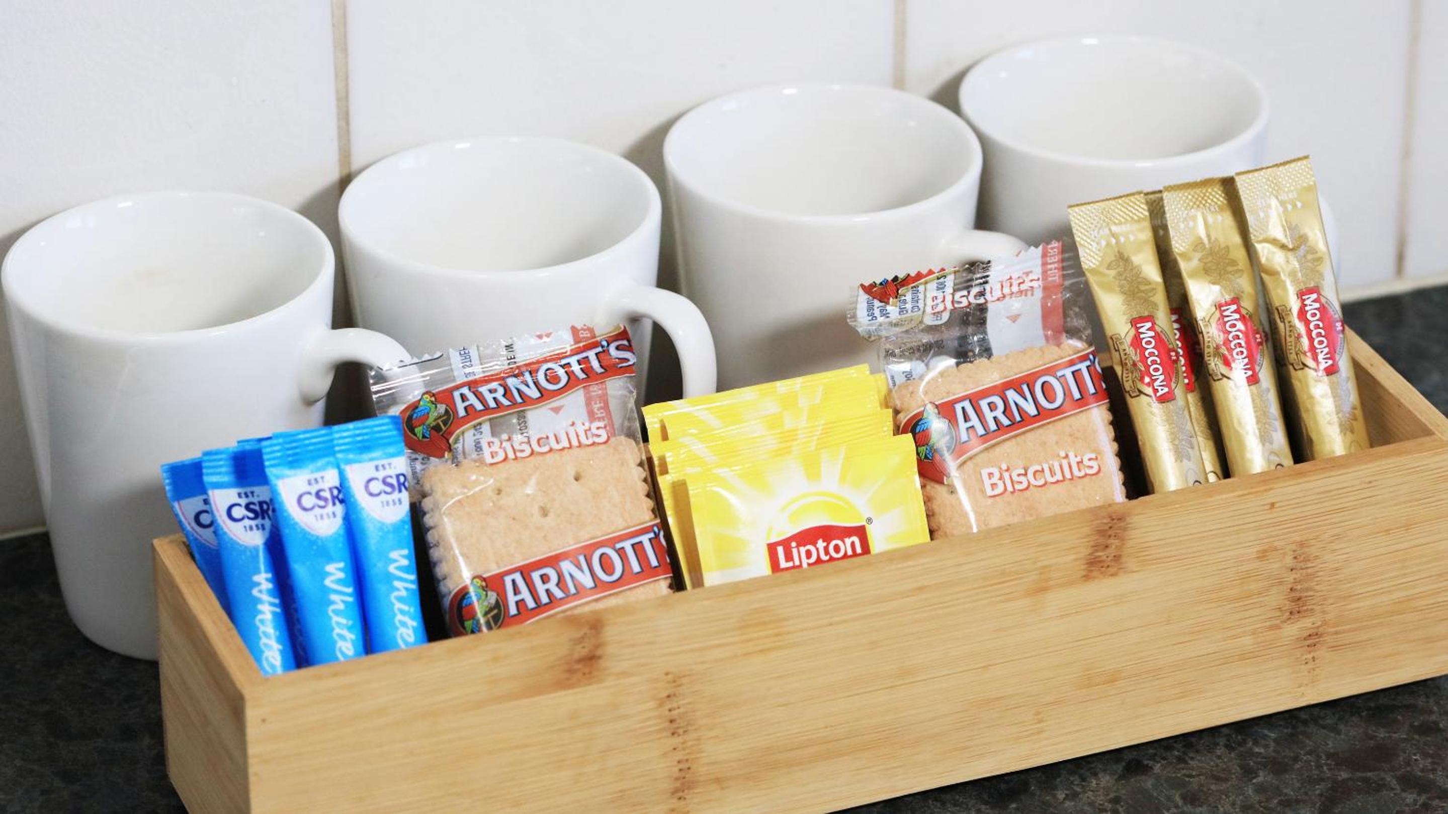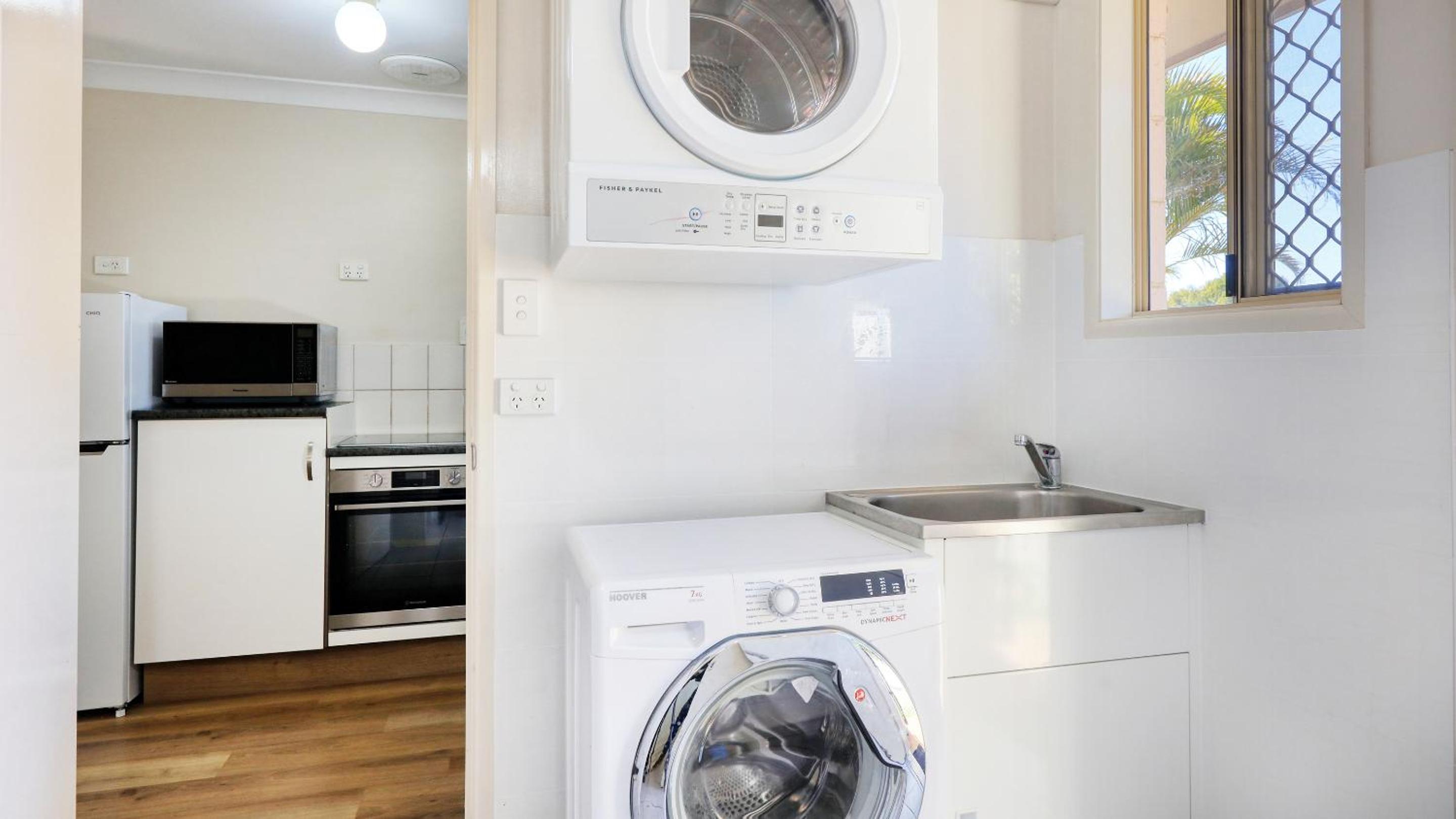 Our spacious apartments come equipped with convenient laundry facilities and complimentary parking in a secure garage. Enjoy entertainment on a large flat-screen TV with cable channels and movies. The self-contained apartments feature a microwave, 2-burner stovetop, cutlery, and crockery for your convenience.