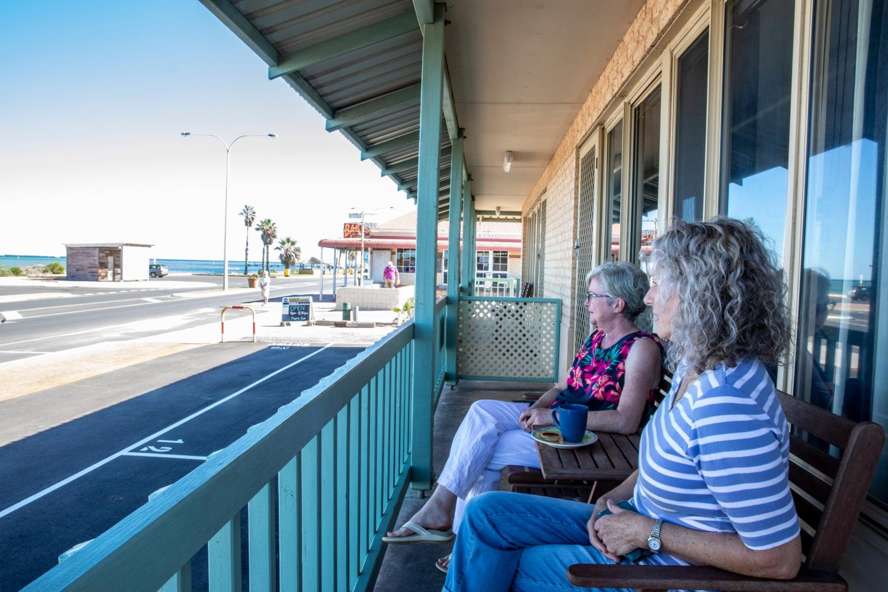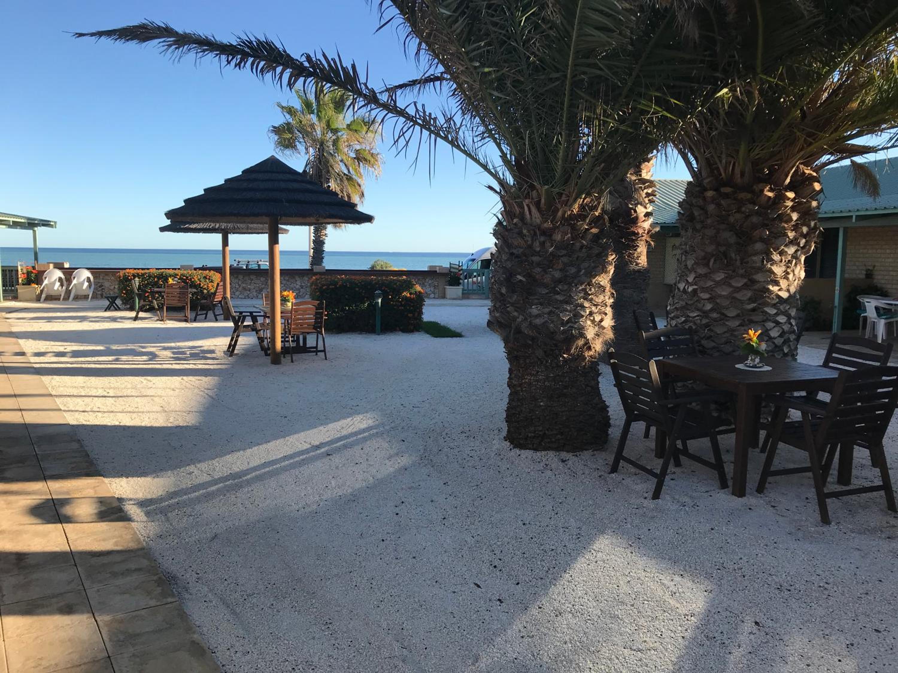 Experience breathtaking ocean views and direct access to Denham beach from your private patio at Shark Bay Seafront Apartments.