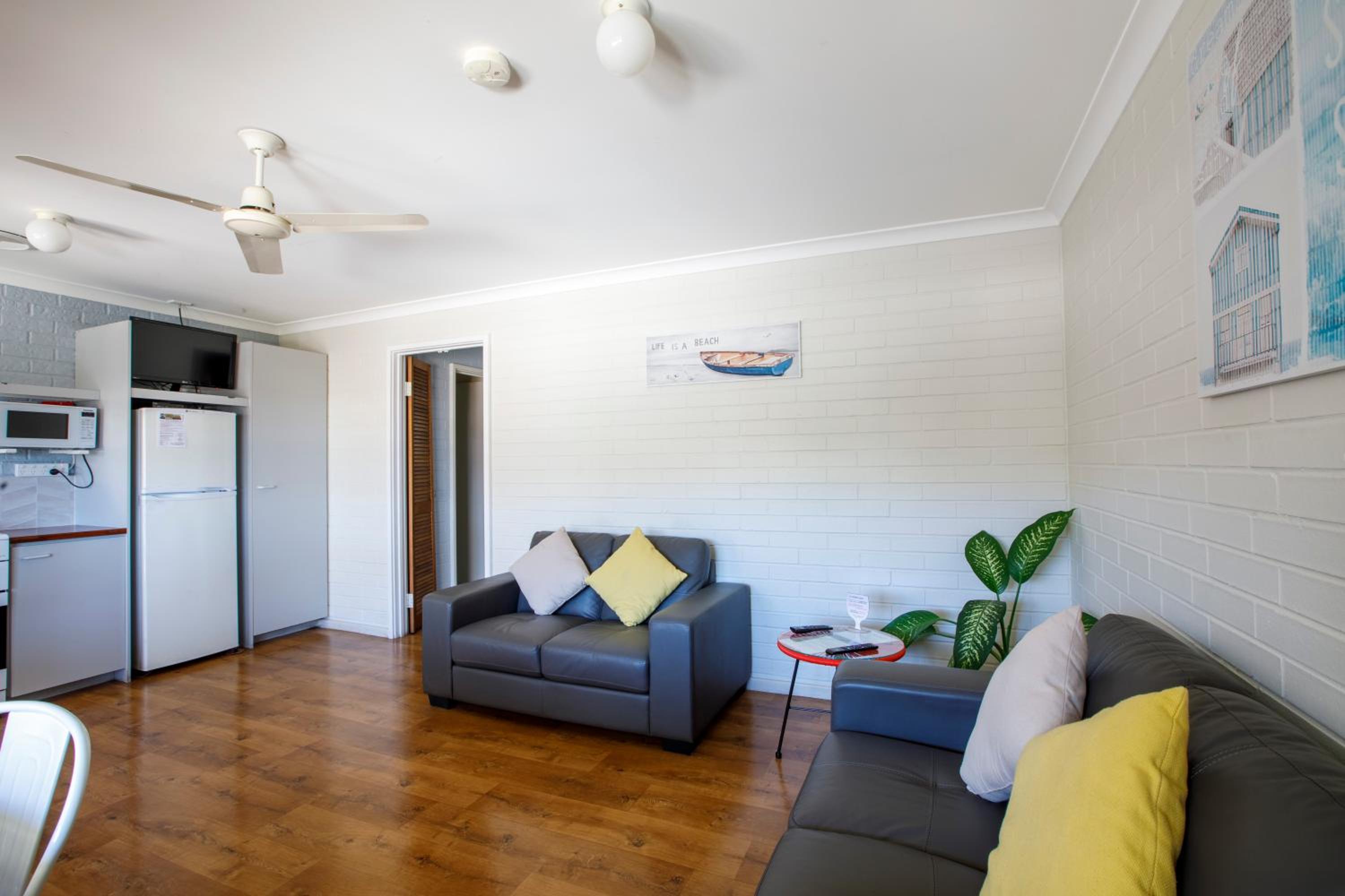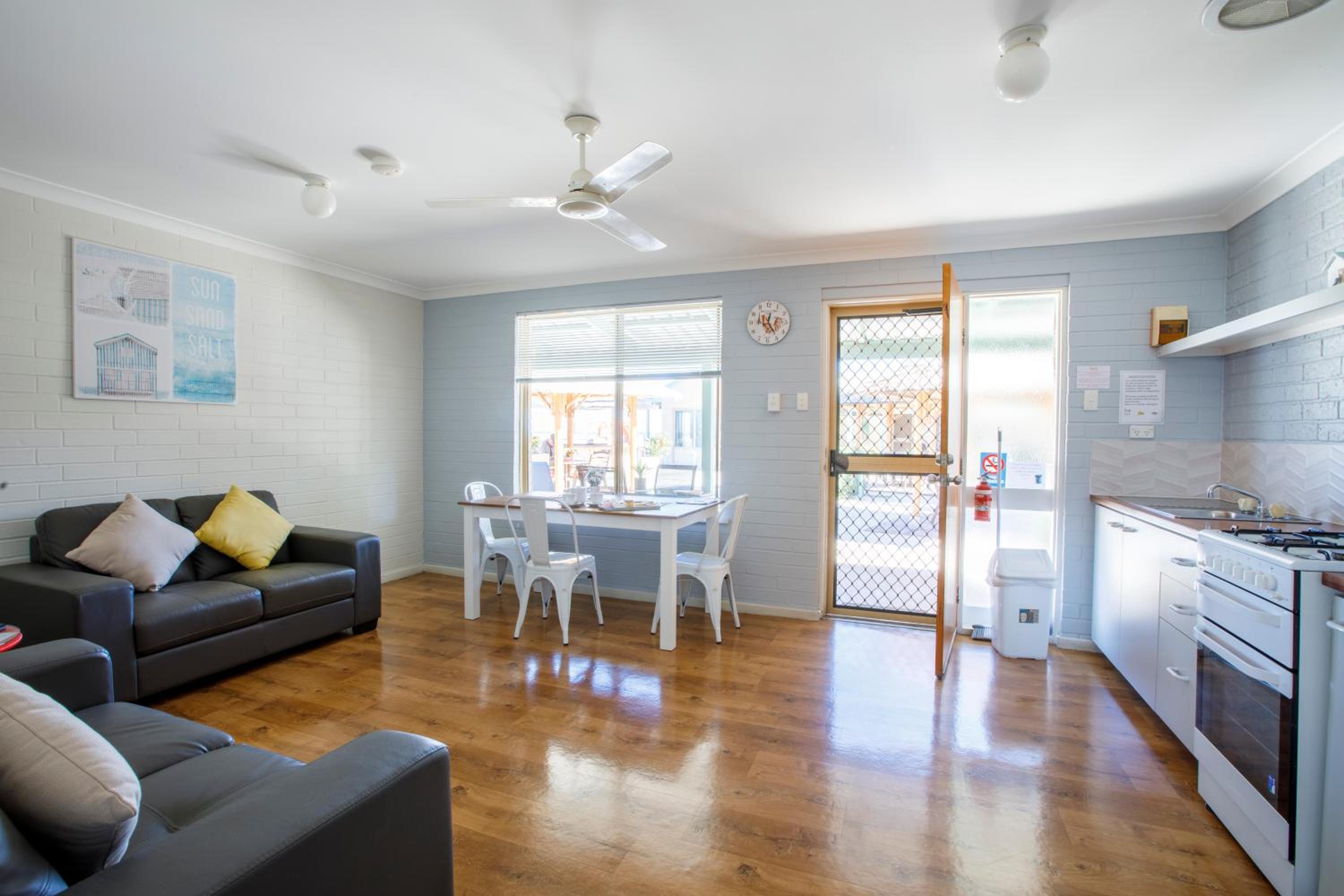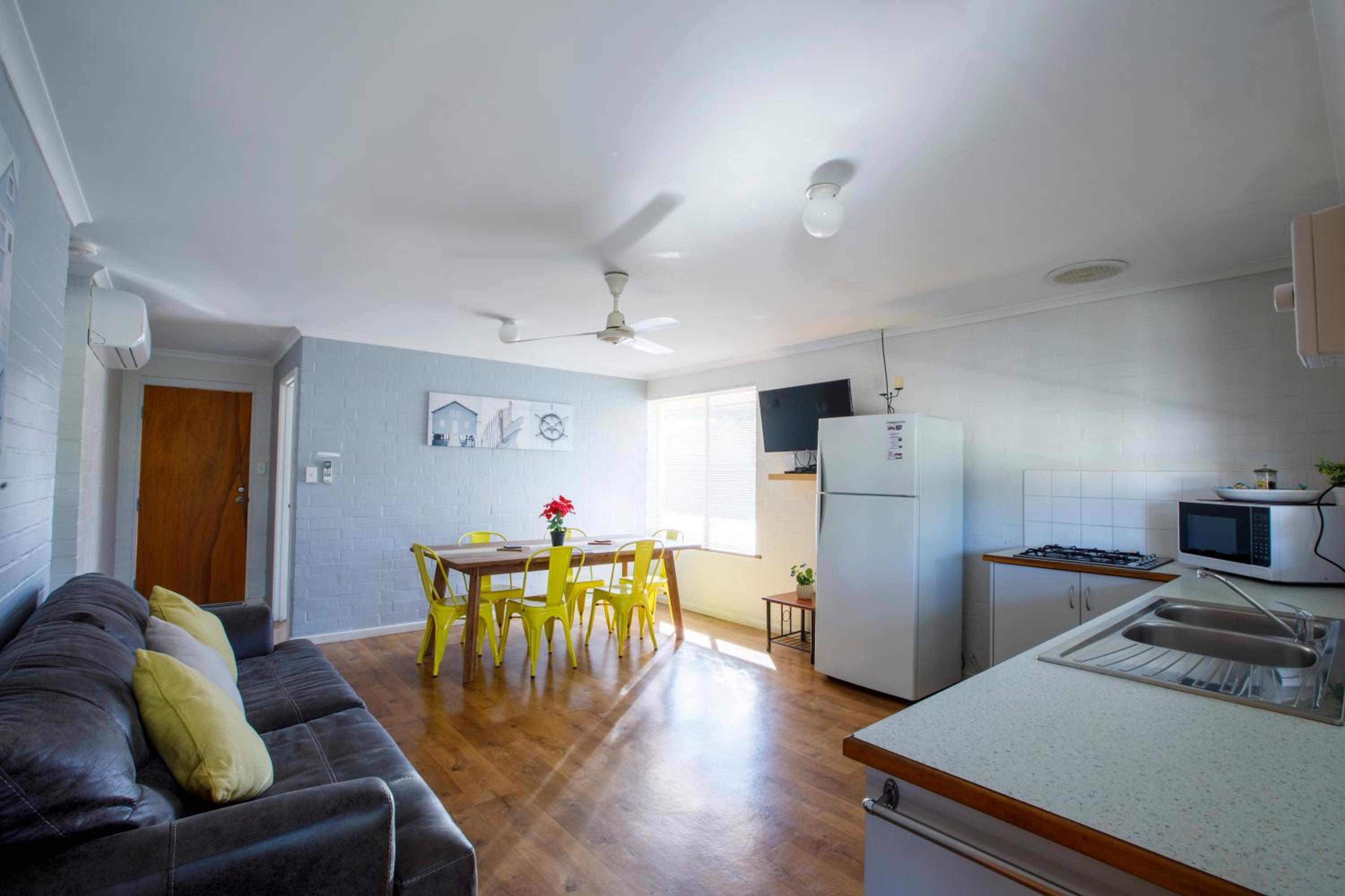 Located just a 5-minute drive from Denham Airport, Shark Bay Apartments offer easy access to Monkey Mia for dolphin watching, sailing, and snorkeling adventures.