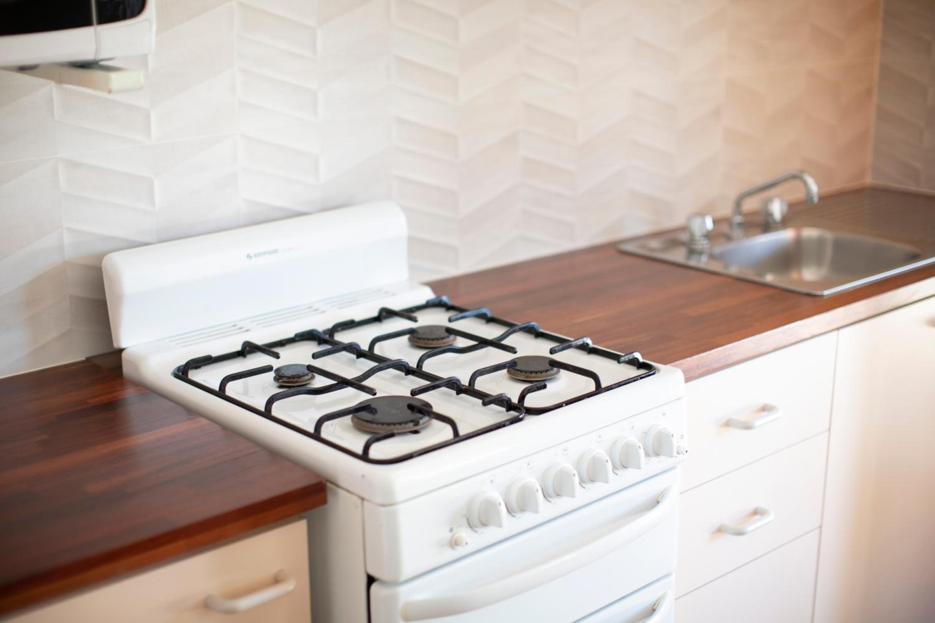 No staff or laundry. I have not found 1 member of staff since check in. I was told that the laundry was $4 charge and only between 12-4 (omg) that for 12ish apmts but every time I went in there the machine was full of sheets etc so couldn’t use. The TV turns off every time u open the fridge (crazy) the electrics must b terrible. Can’t turn in bathroom light as fan absolutely stinks the whole apmt out with god know what smell. Very little utility not enough cups etc no oven even though it is in pictures. Sheets and bedding not the best. Prob cos they r dried in the car park with dust and gravel all over them, which also comes into the apmt continuously so u have to sweep regularly.Plus the mattress protection is covered with stains - couldn’t report any of this as couldn’t find staff EVER