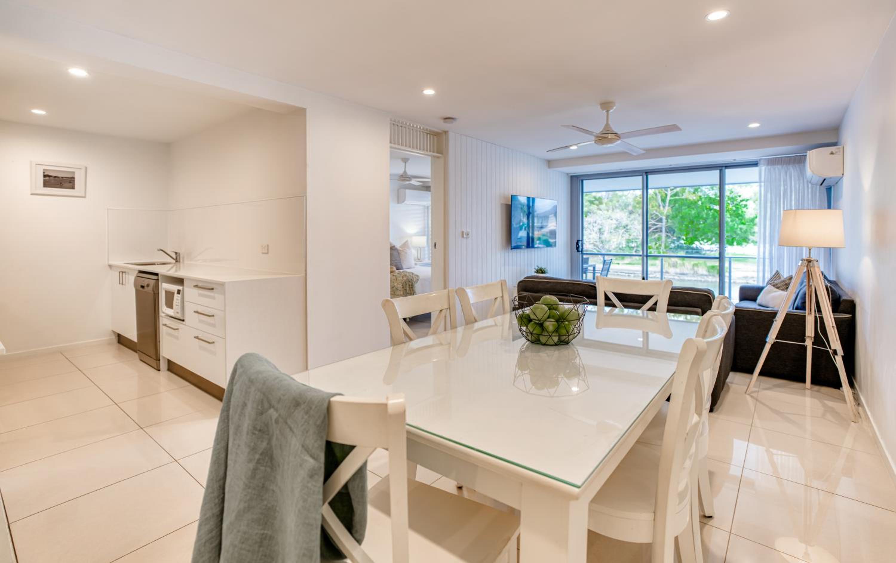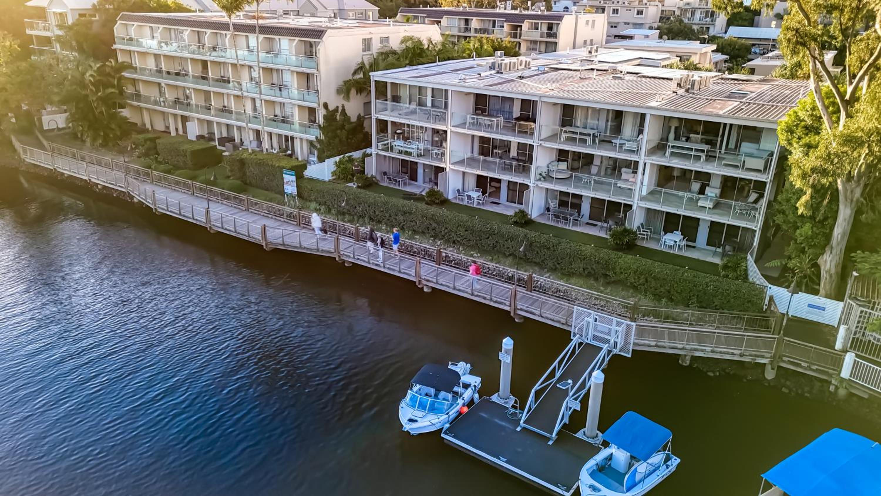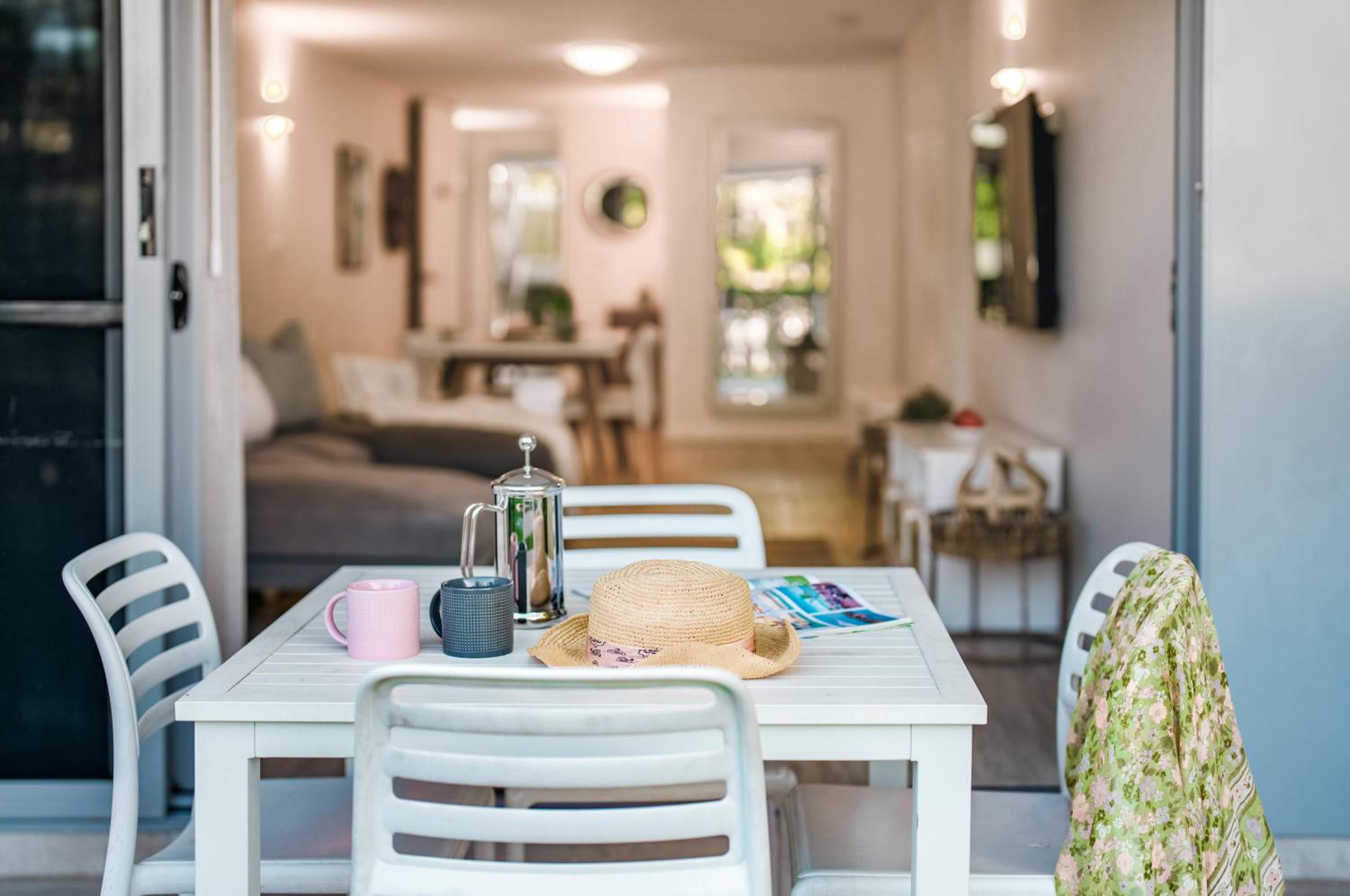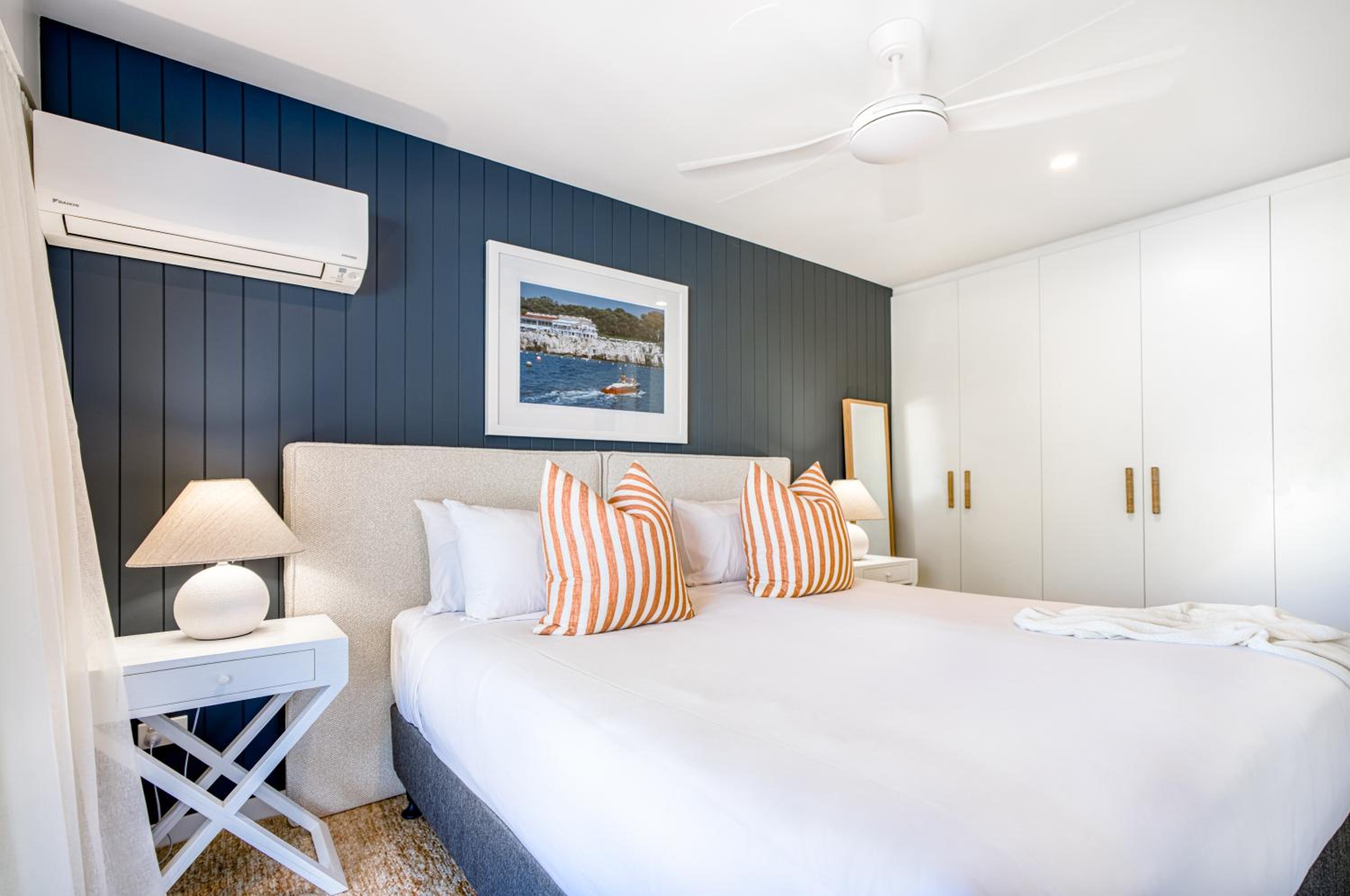 I booked a studio apartment on the ground floor. The room was very clean which was a relief (I've had others in different towns that were not clean) It was also a good sized room with a King bed and a single bed, TV with Netflix, ceiling fan and air conditioner, basic kitchenette, ironing facilities, small table and chairs. The apartments are on Hastings St but set well back from the busy street front which helped with being a bit quieter and very private. The outside areas are well attended and tidy. I was late arriving and was left my room key in a lock code box with the code for the pedestrian gate to get inside. It's secure from Hastings St and there is another coded pedestrian gate that goes out the back onto the boardwalk to the river and ferry. Car parking through a coded gate at entrance. The location was terrific. It's on Hastings St so has easy access to good cafes, restaurants, shops and the main beach. Great if on foot.