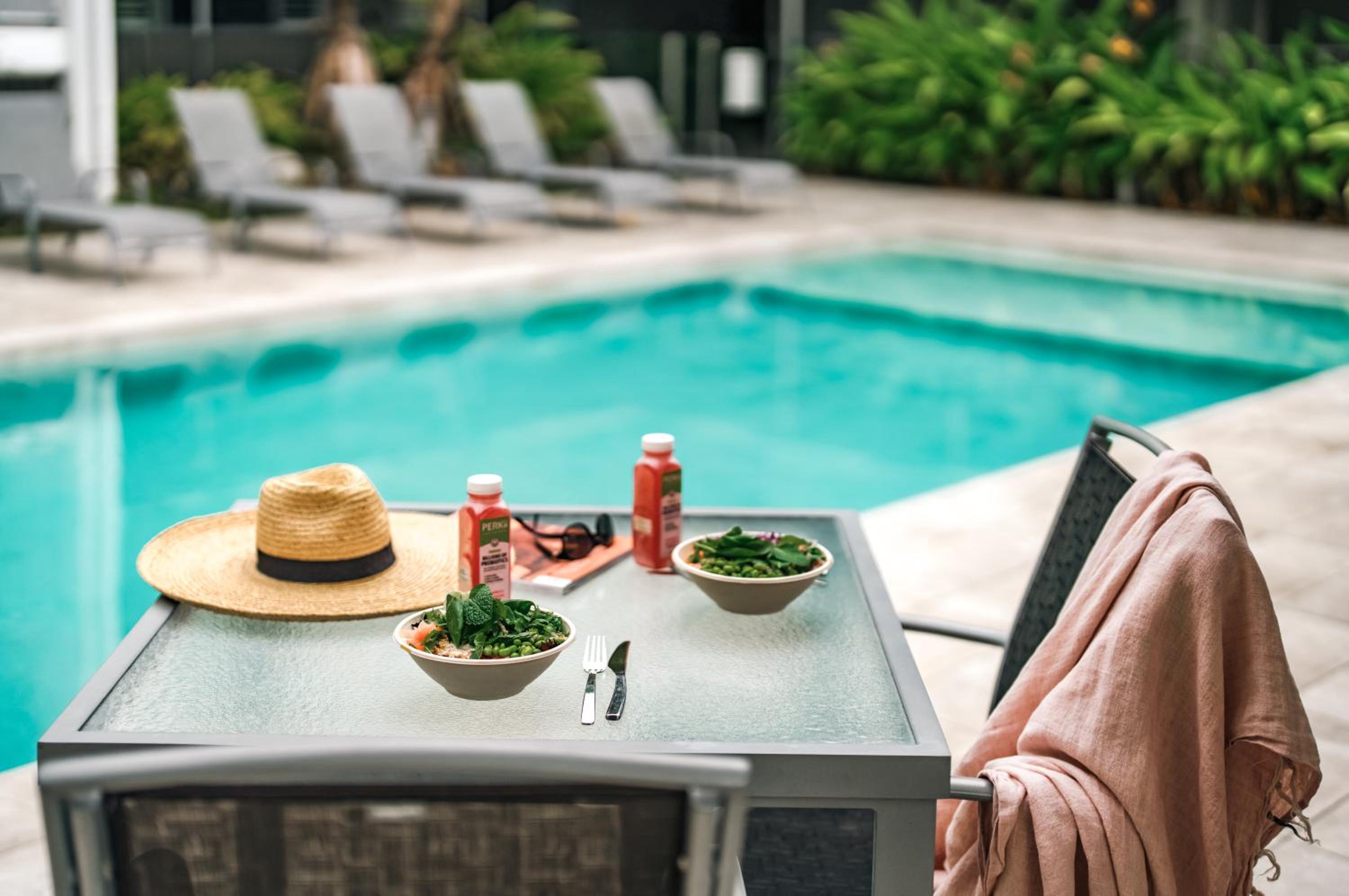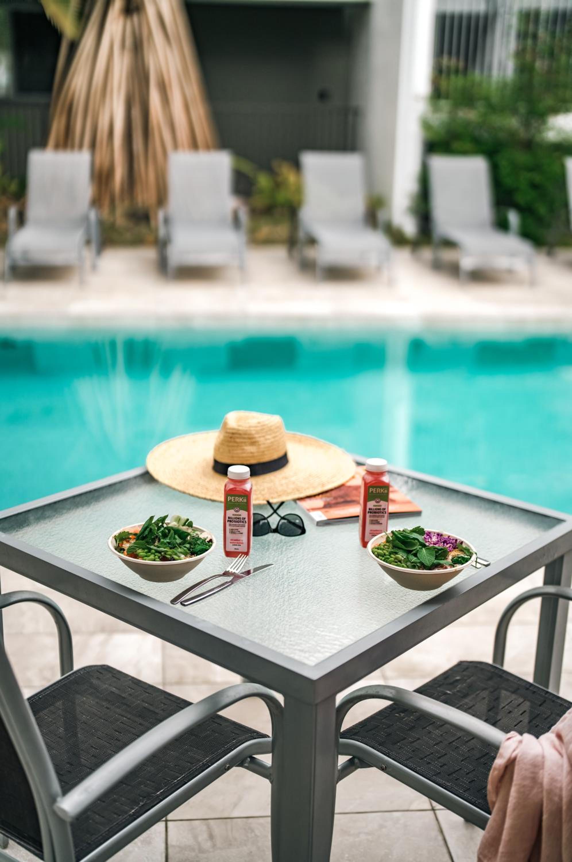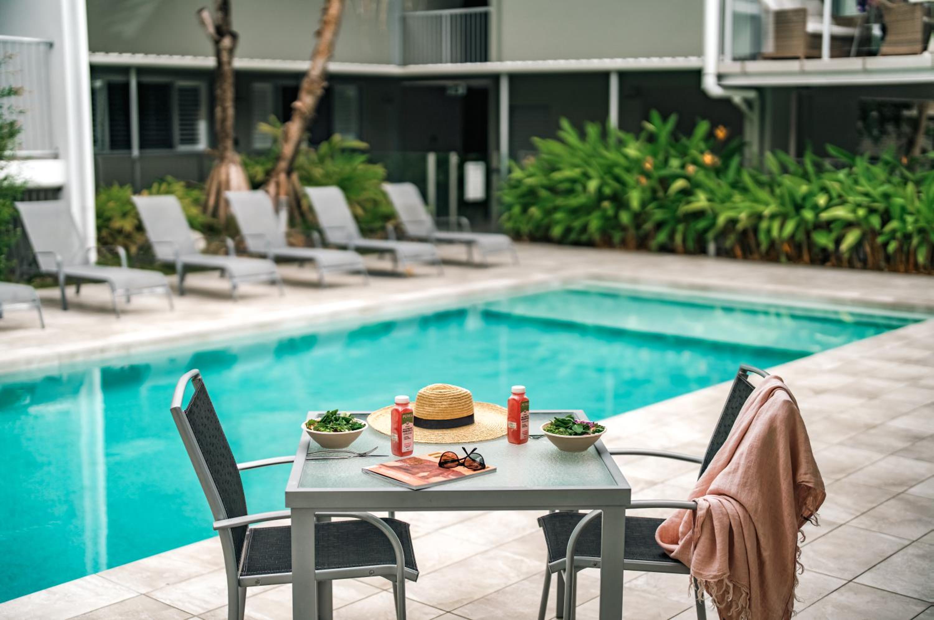 Unwind by the inviting outdoor pool or enjoy the comfort of your own private balcony in our fully equipped apartments. Each apartment boasts a fully equipped kitchen, perfect for preparing meals during your stay.