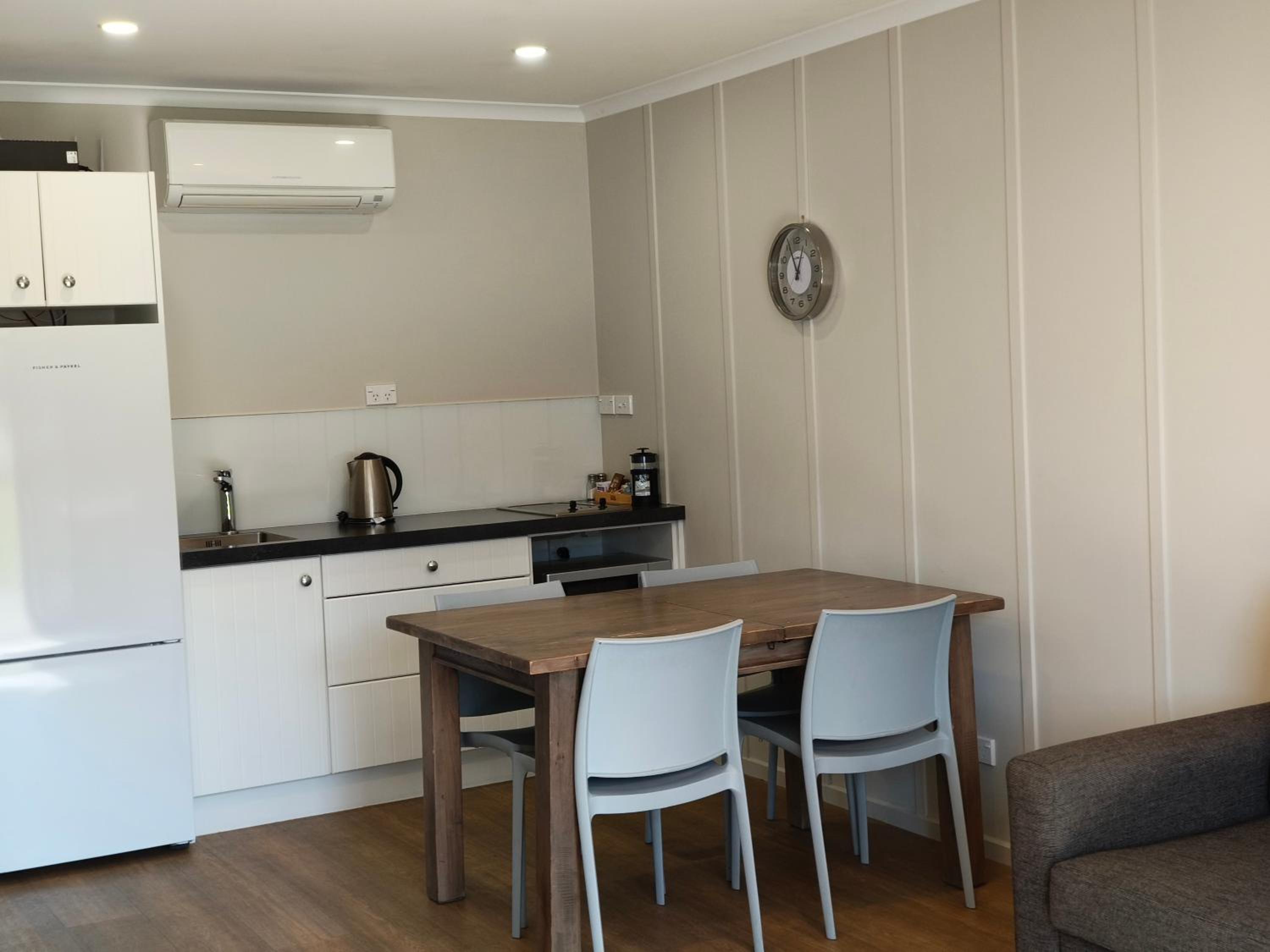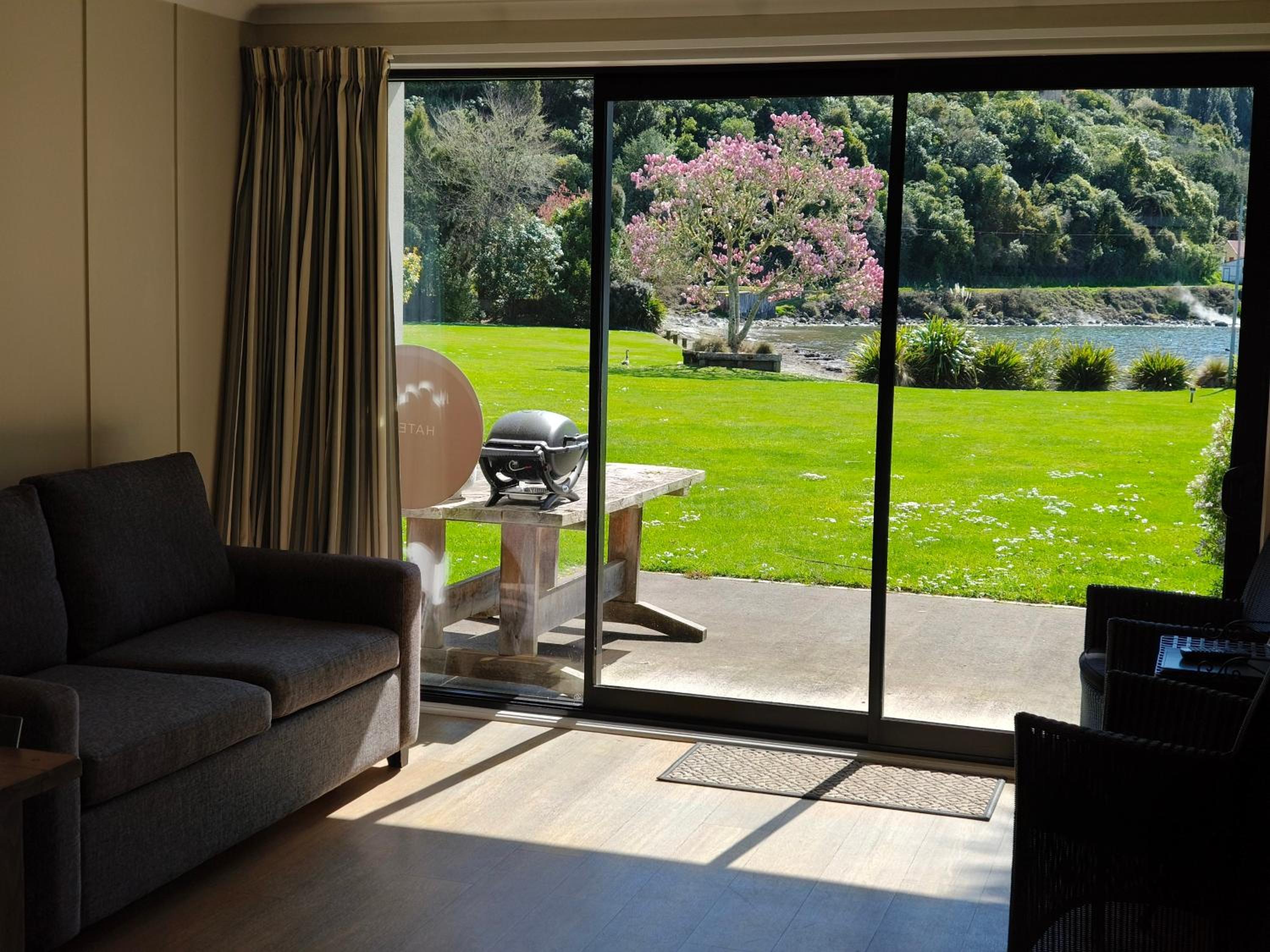The location of the property was perfect, all the units were lakeside and very quiet away from the main road. Sue the host was easily contactable; we were stuck in Whitianga with flooding and roads closed so I was concerned we would not make it out for the night of our booking. Sue booked a second night as a backup and corresponded with me immediately after every message I sent updating her of our our situation. She could not have been kinder or more understanding and it was very much appreciated.