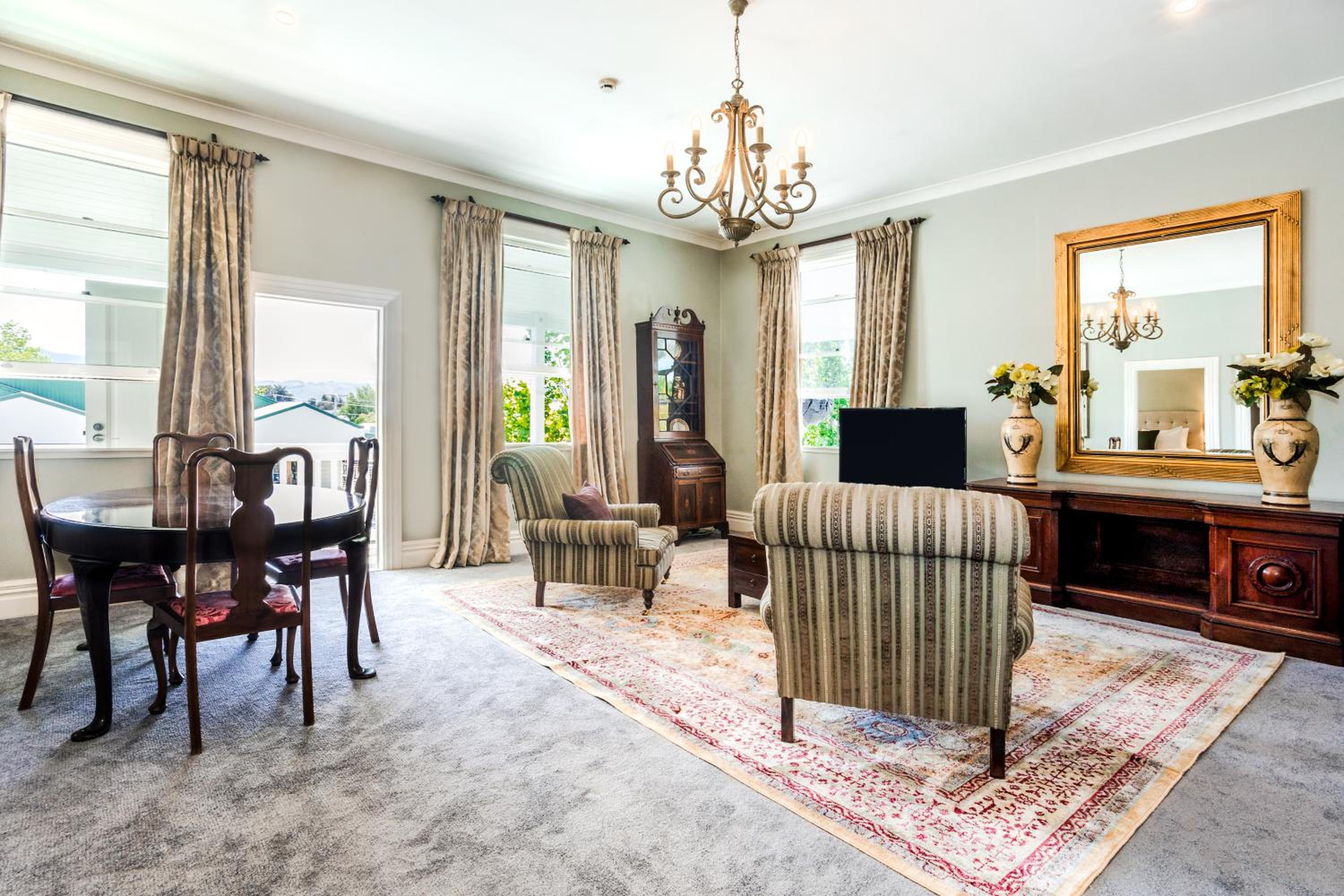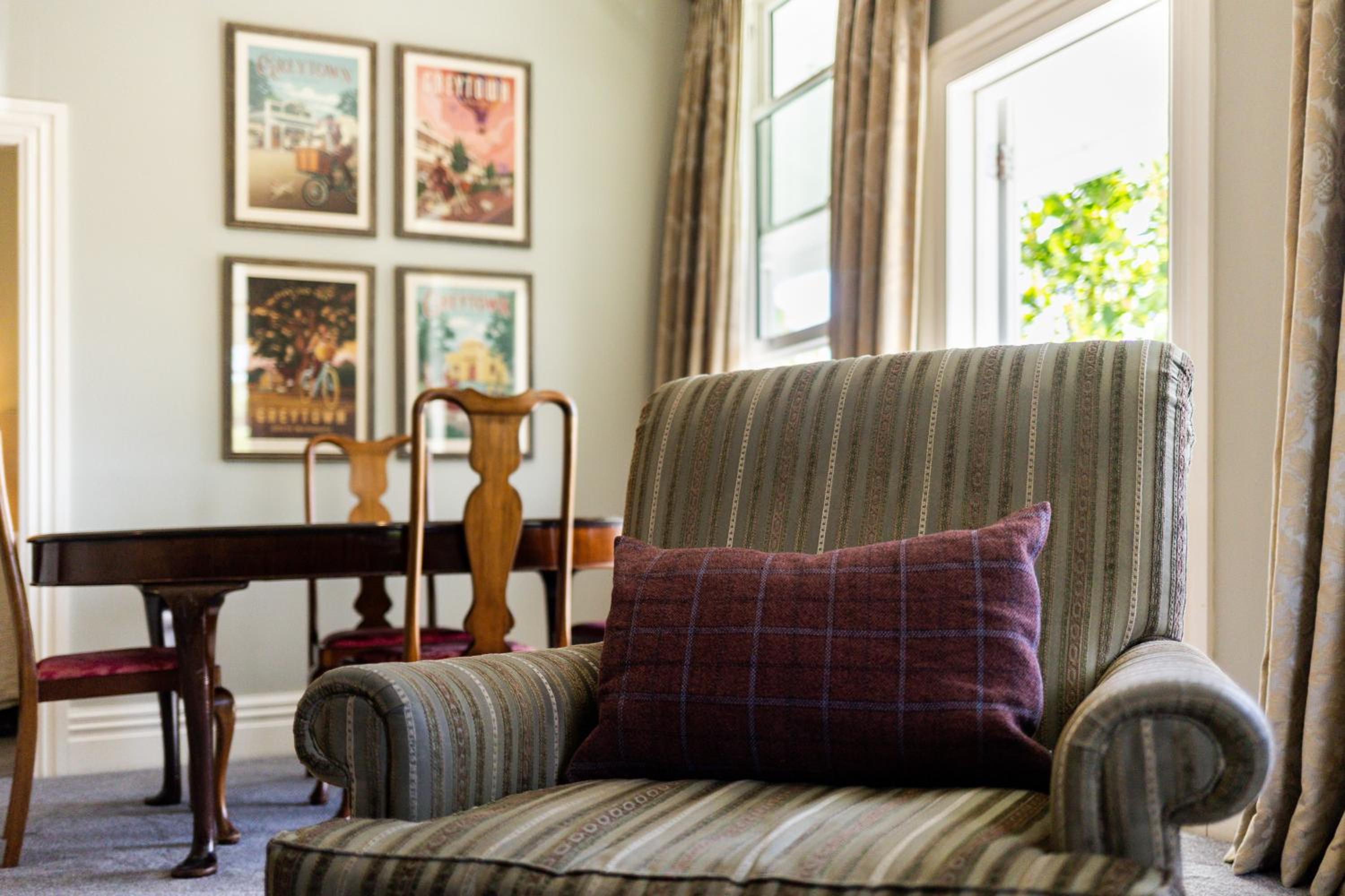 A lovely old building right in the heart of Greytown. Modern fittings including a great bathroom - with a bath! Huge room with a nice sitting area. Excellent restaurant on site.