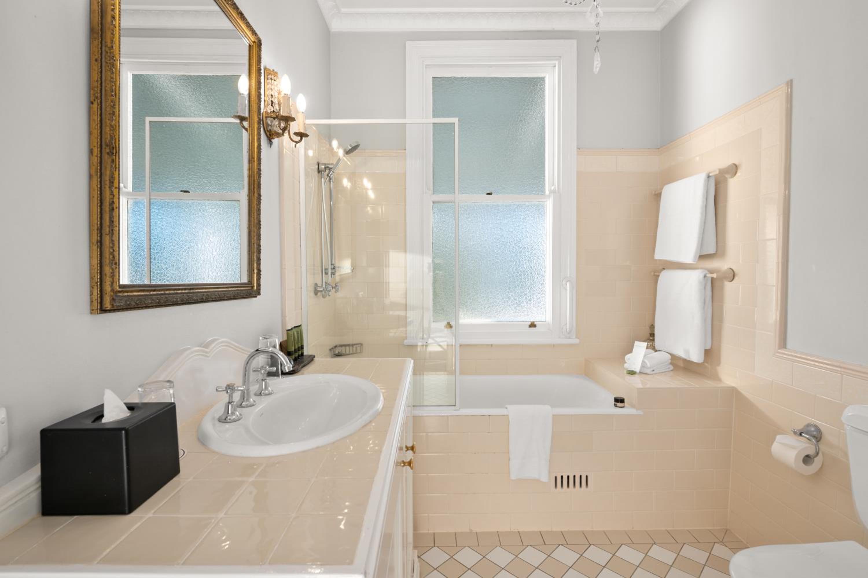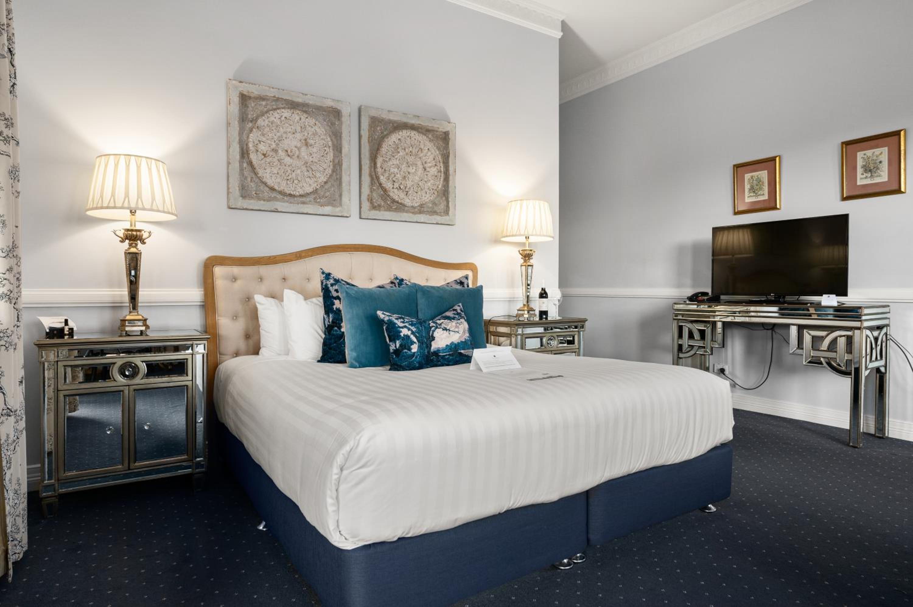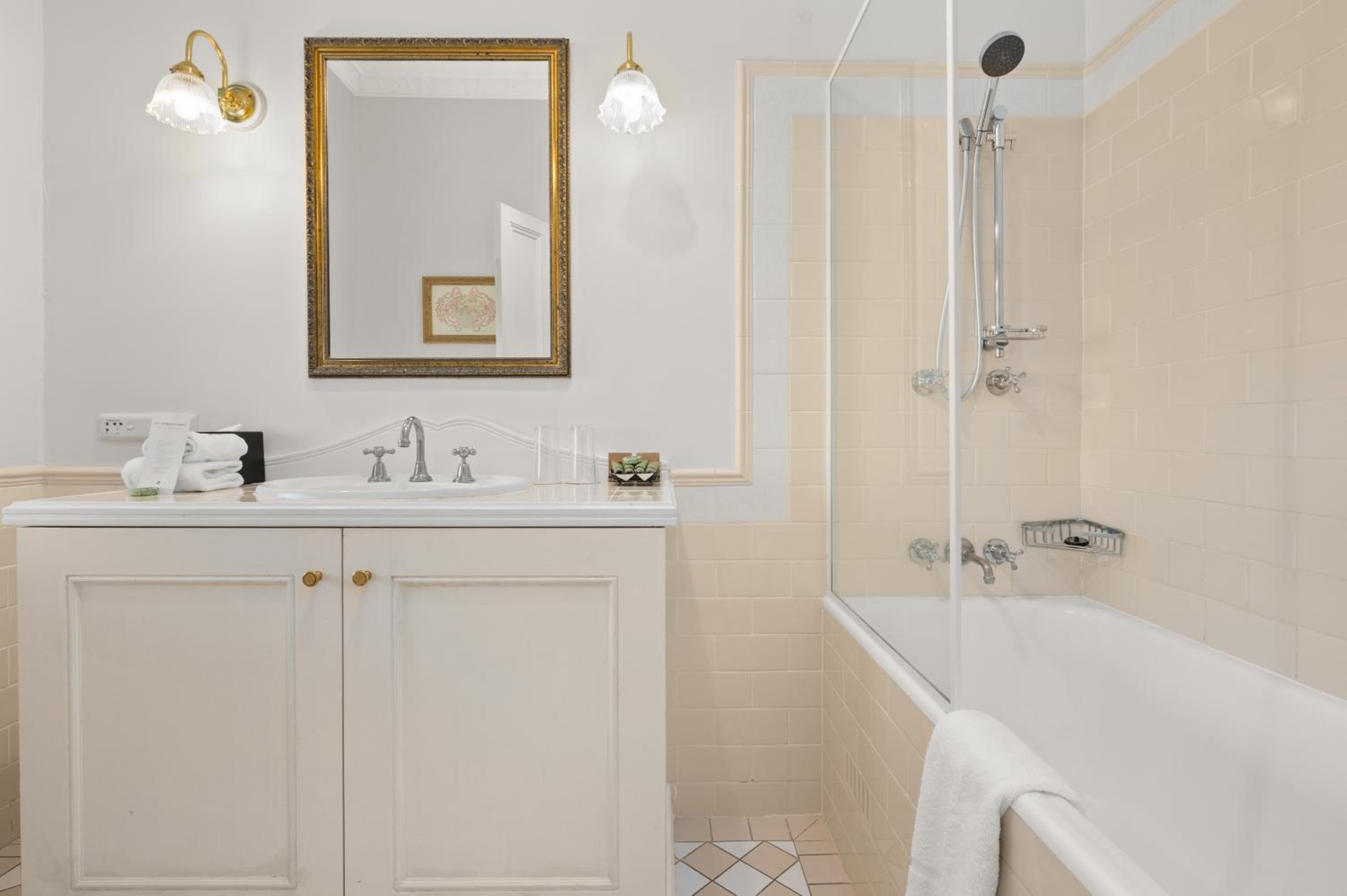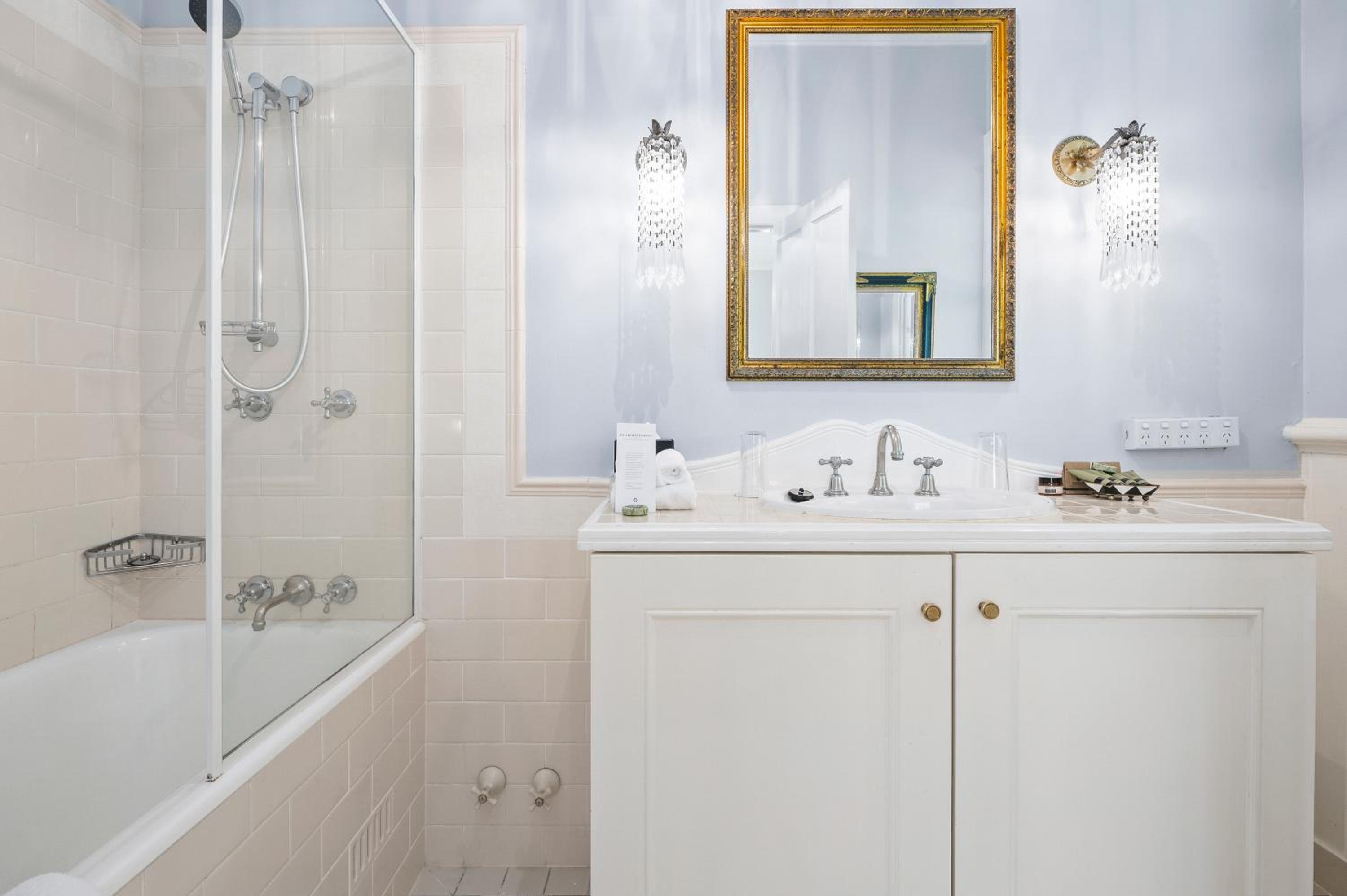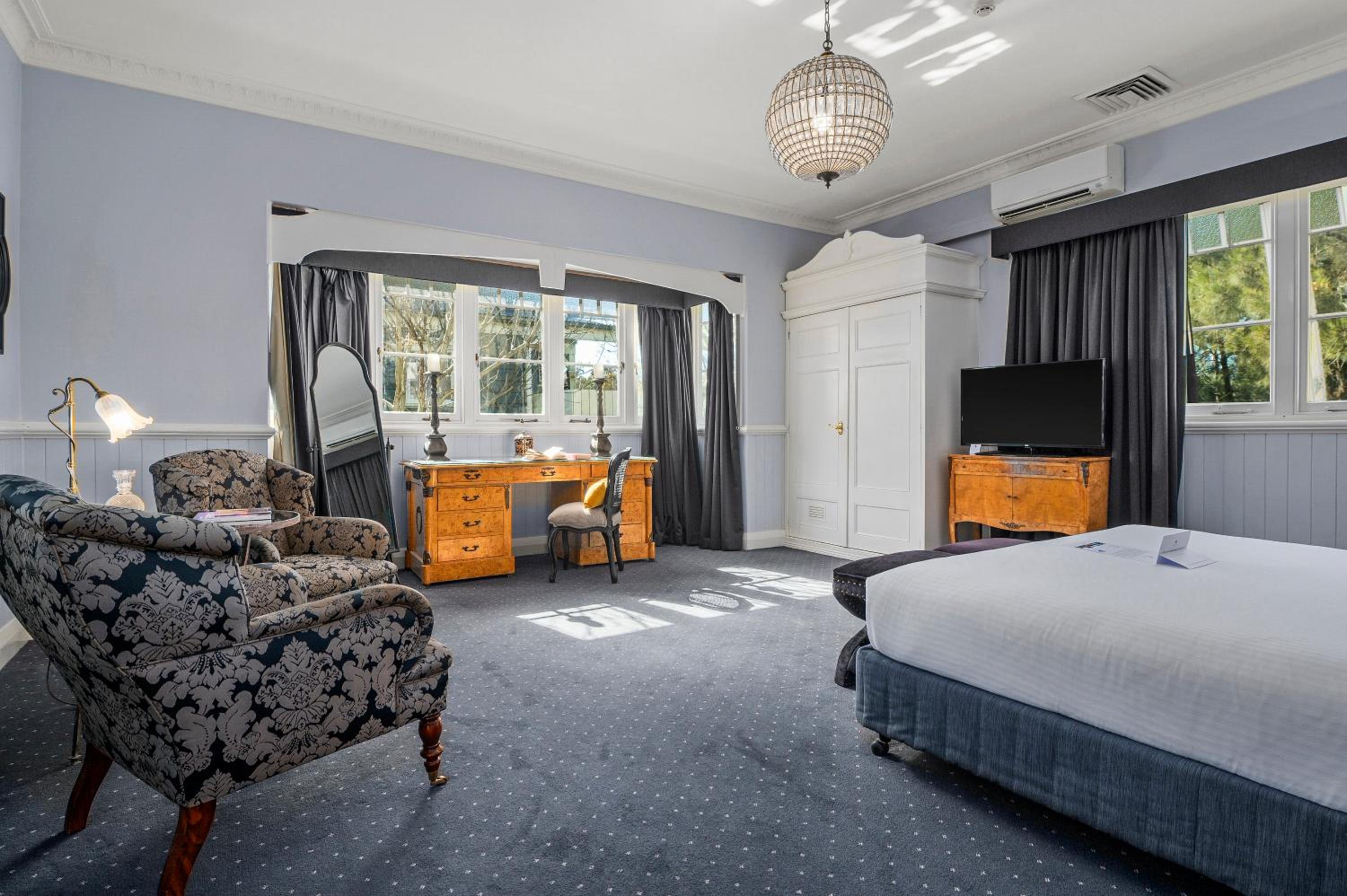 The Convent Hunter Valley Resort offers beautifully refurbished rooms with French doors and verandas overlooking lush gardens and vineyards. Each room is elegantly furnished, featuring modern amenities like LCD TVs, comfortable double beds, and unique decor pieces. The en suite bathrooms are equipped with luxurious grooming essentials, ensuring a pampering stay.