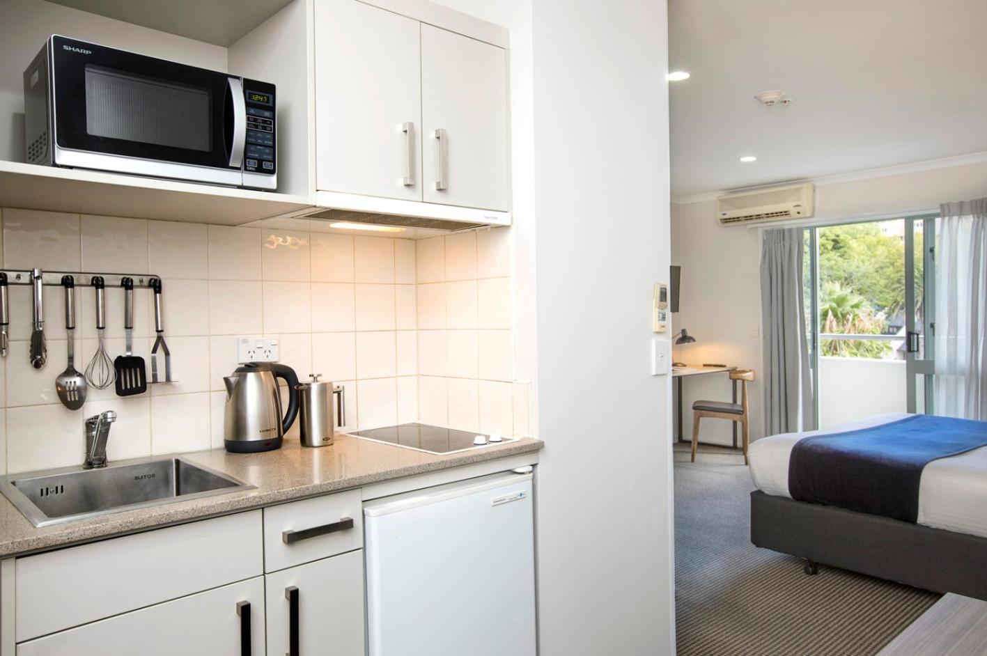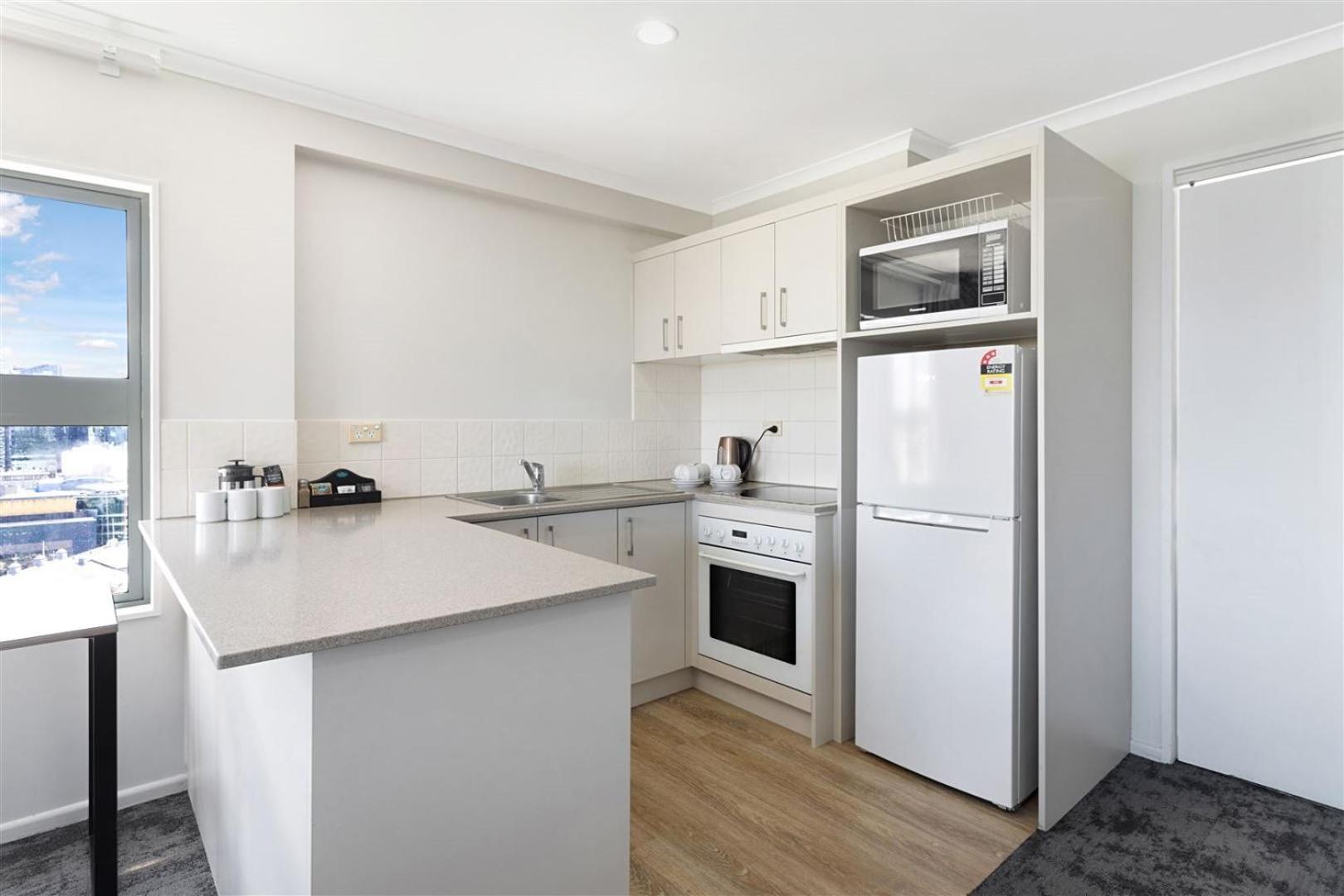 Enjoy breathtaking park or city views from your own private balcony at Quest Apartments Auckland. Whether you prefer the serene greenery of the park or the bustling cityscape, our balconies provide the perfect spot to unwind and take in the scenery.