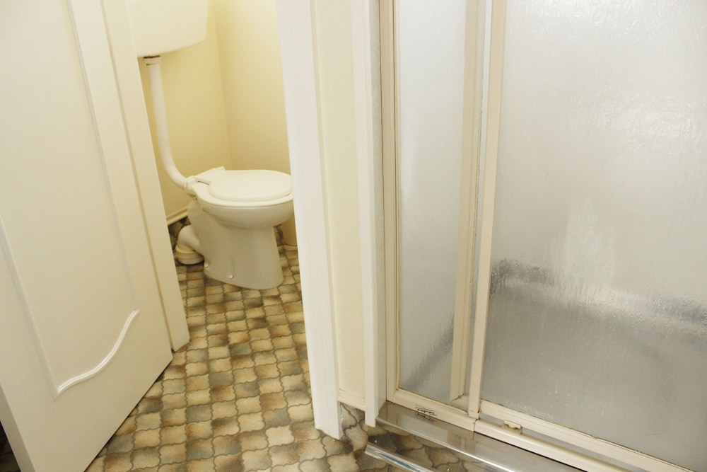 Tired decor and bathroom needs renovated. Cracks in wall and wallpaper peeling, cracked window in toilet. Ants in kitchen area.