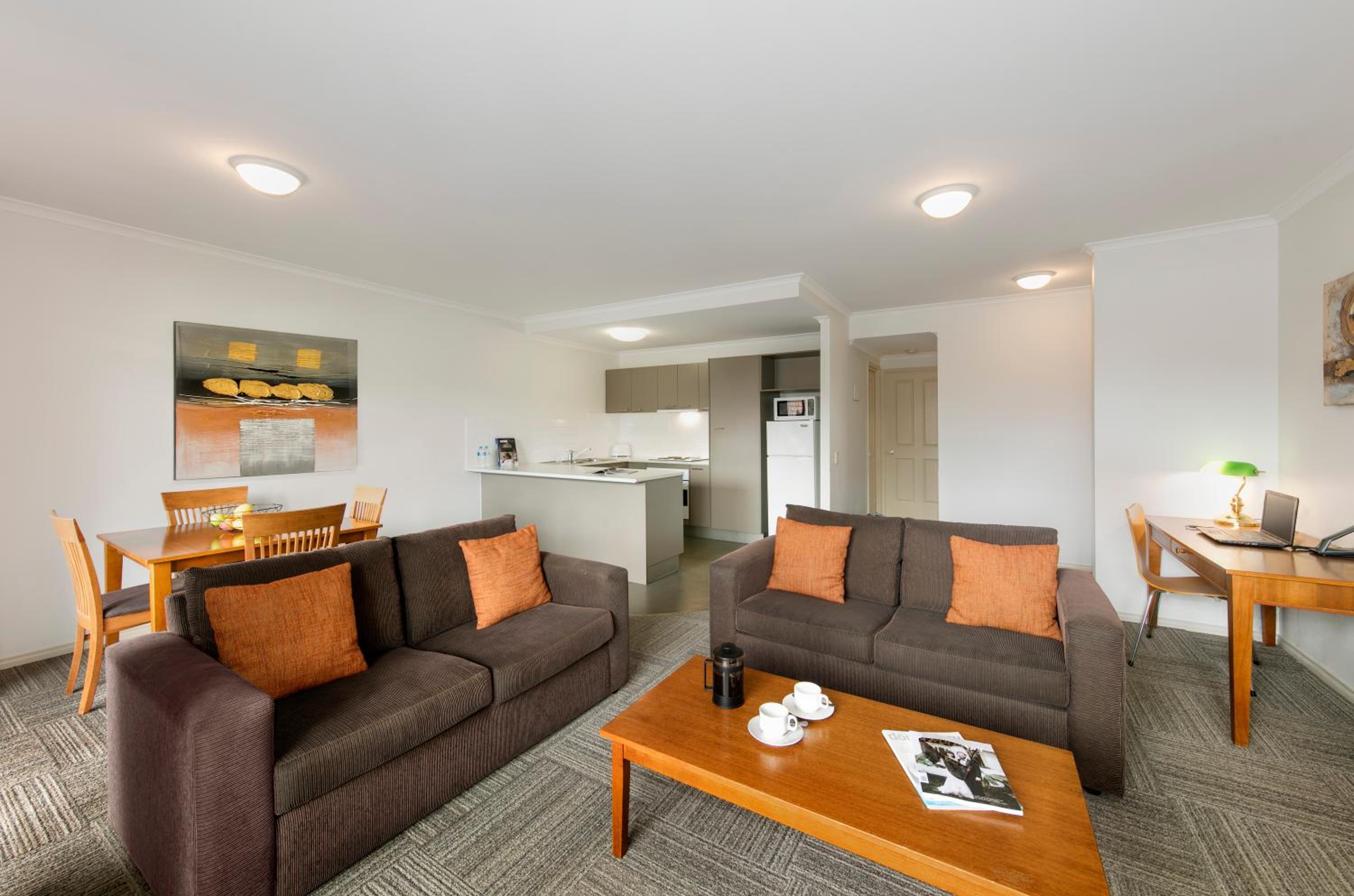 The air-conditioned apartments at Quest Bendigo are tastefully decorated with warm colors and feature full kitchen, laundry facilities, separate lounge areas, and flat-screen TVs. Whether for business or leisure, the apartments provide a comfortable stay for guests.