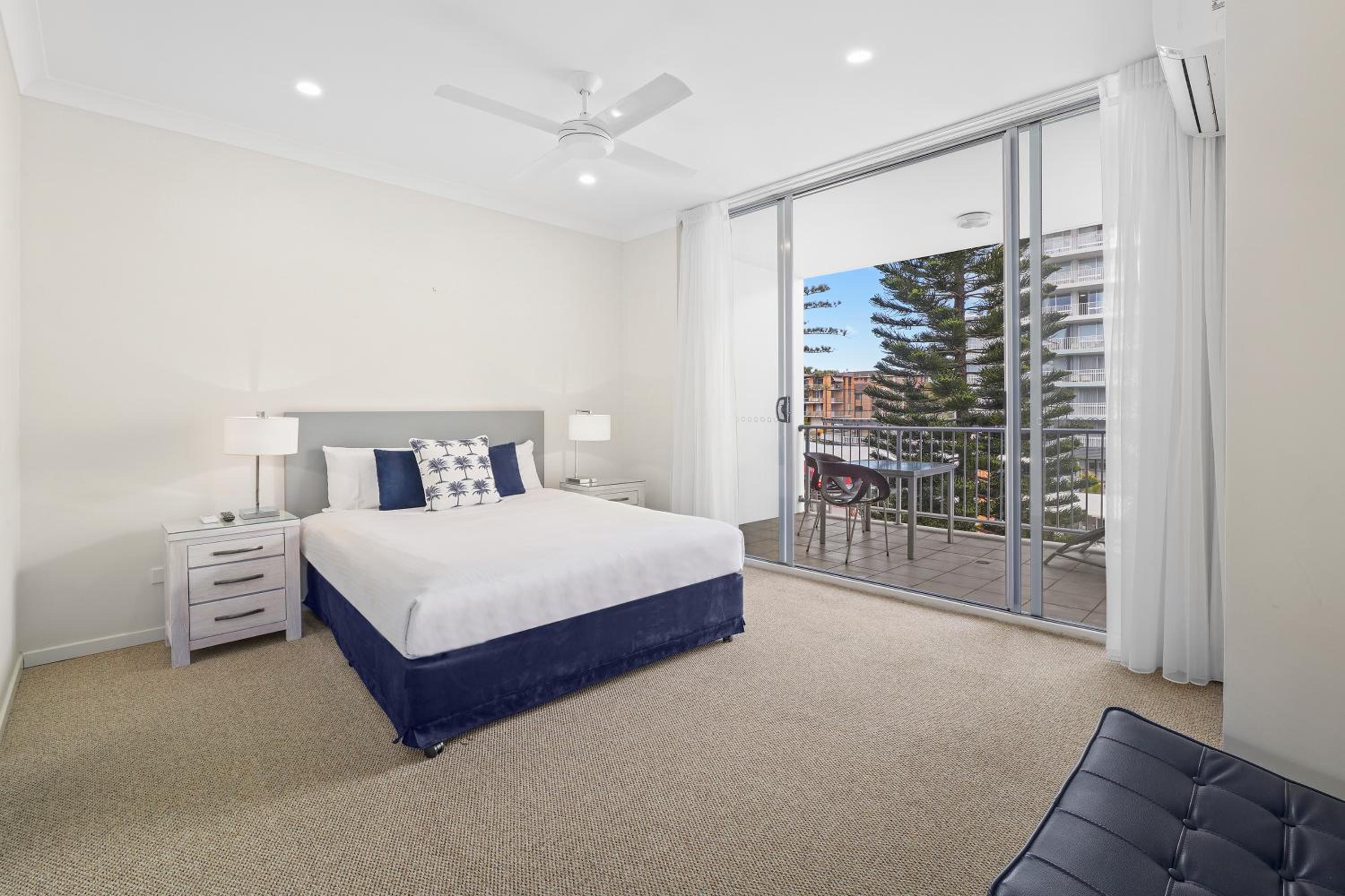 Both air con and bedroom ceiling fan kept the unit comfortable in sticky climate.