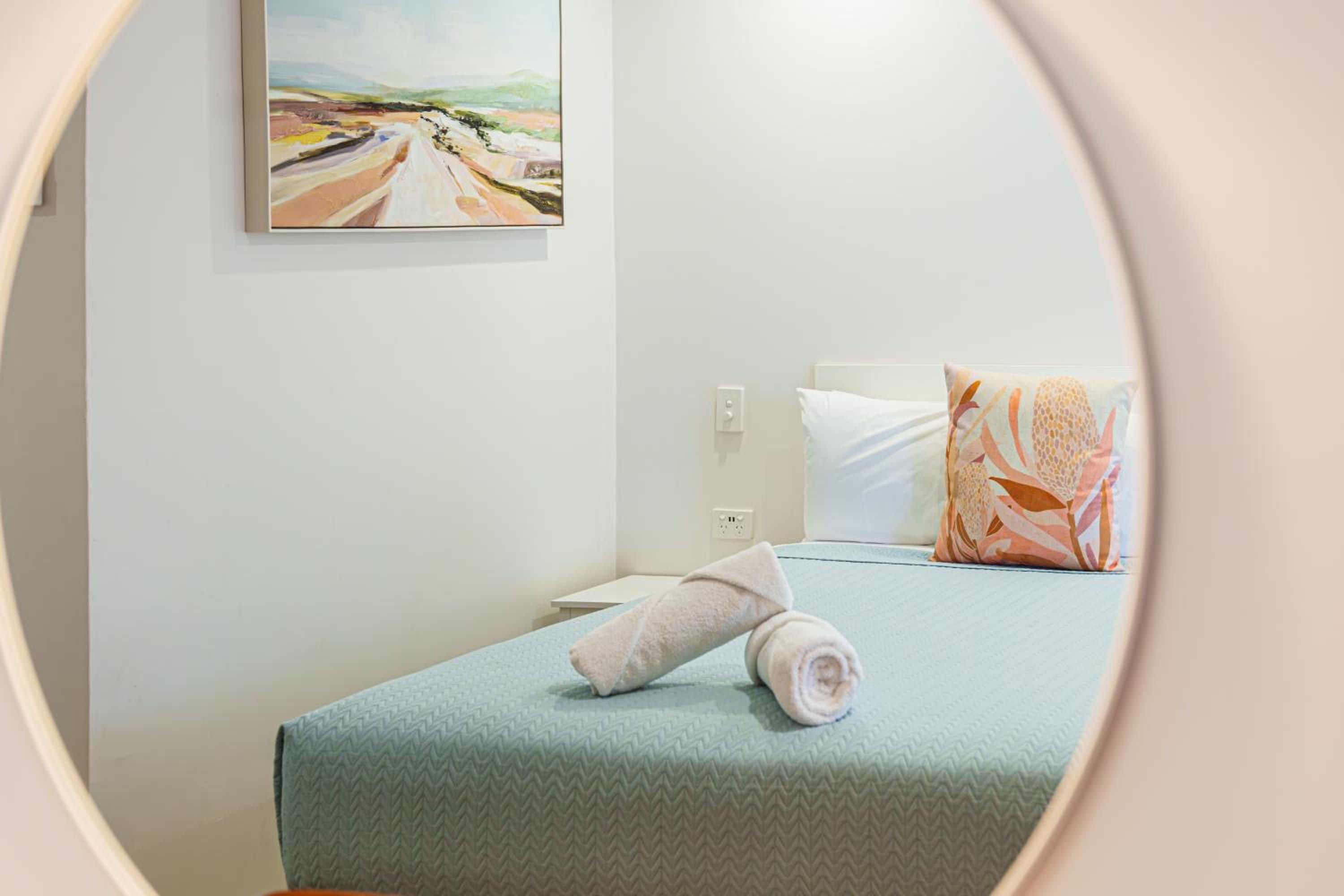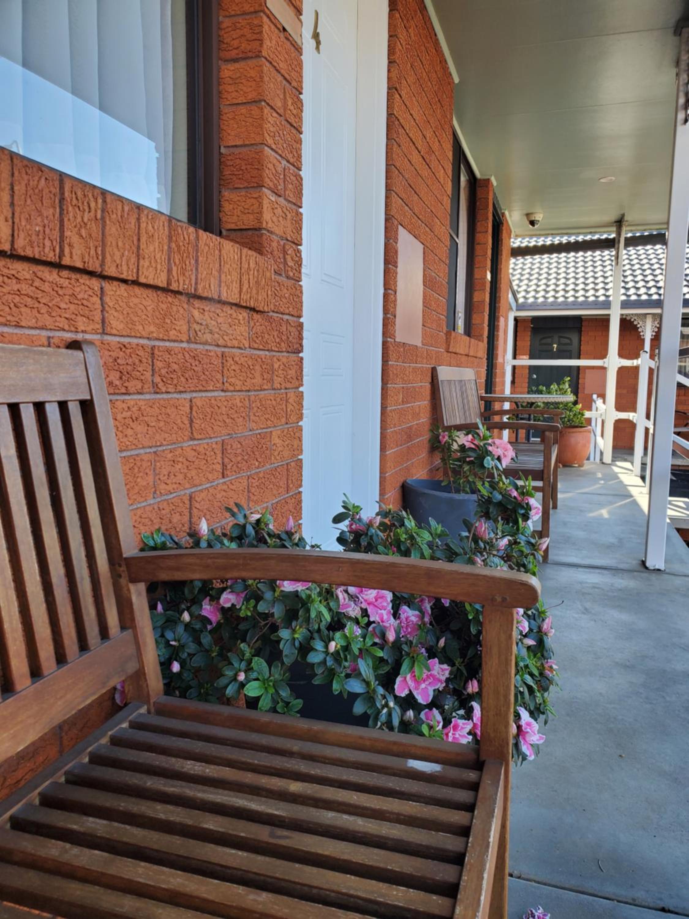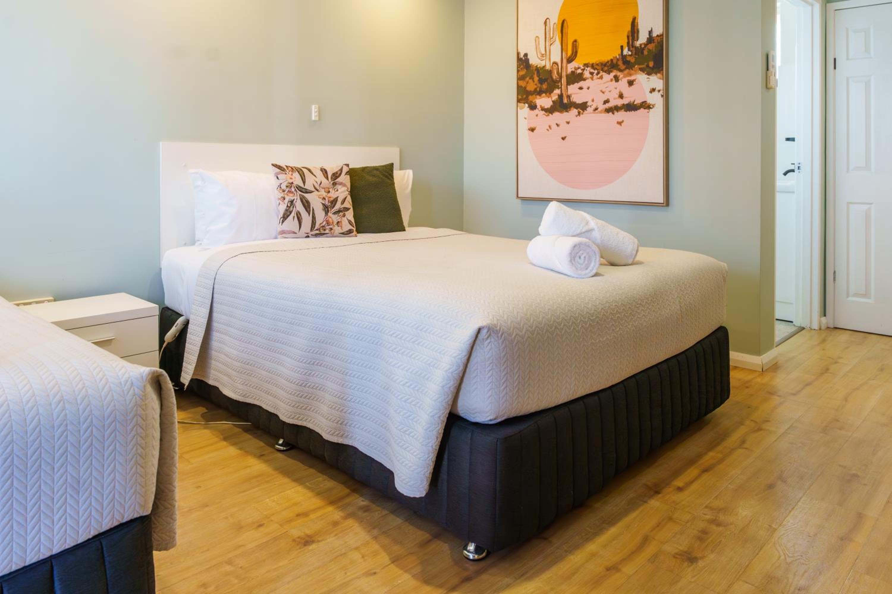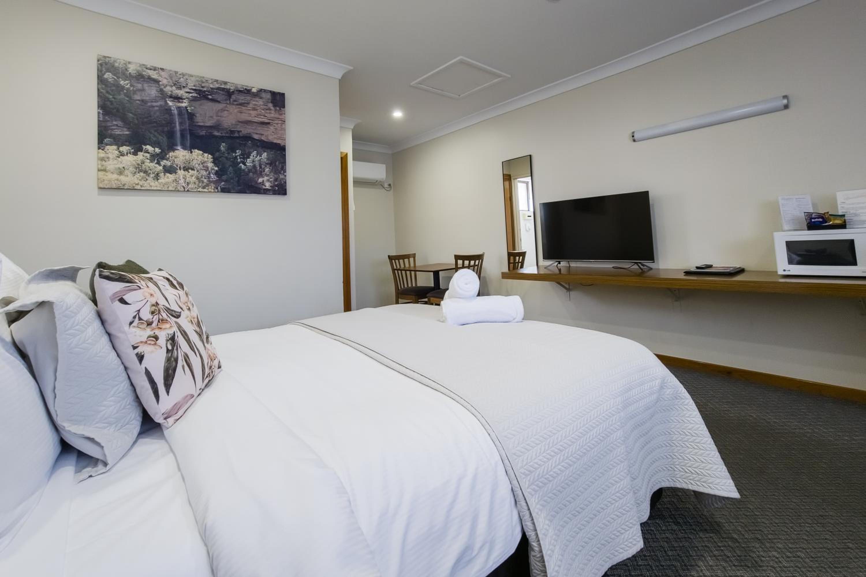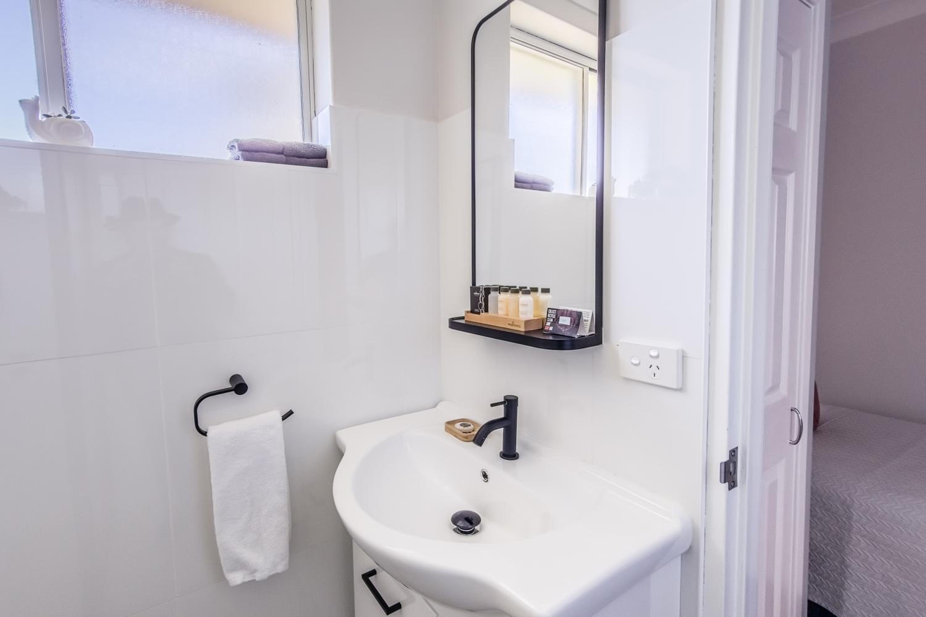 The decor/colour of the room was lovely (very calm & relaxing).. The timber floor covering was great, no smelly strong carpet cleaner smells to tolerate (we were grateful that our room was dog friendly). The basic kitchenette facilities were great, as was the outdoor/undercover barbecue area close to our room. They even give you a barbecue tray which was fabulous. Comfy beds, great shower. Very quiet room despite being close to the highway. Staff provided excellwnt service. Pool was great. Overall a great place to stay.