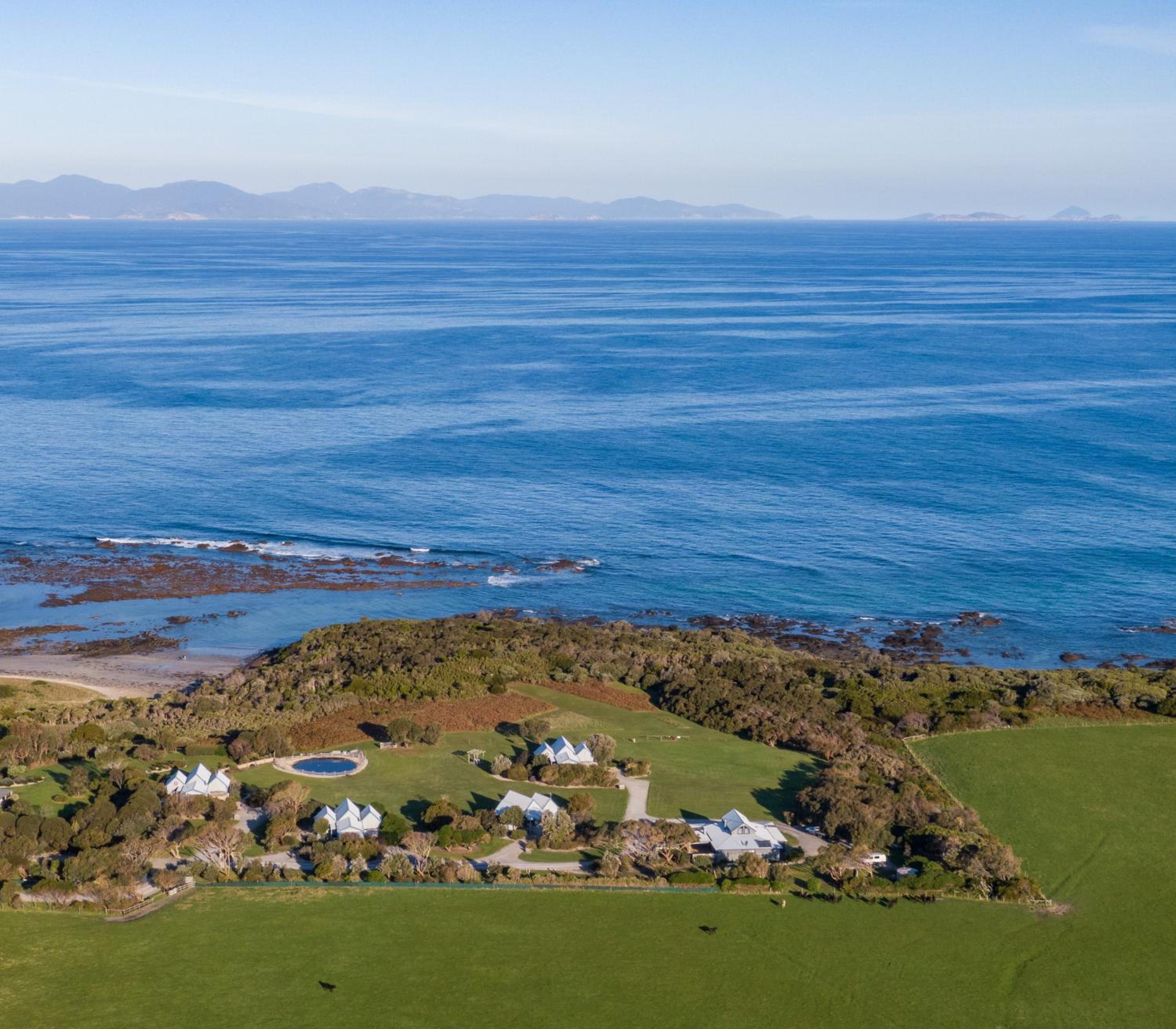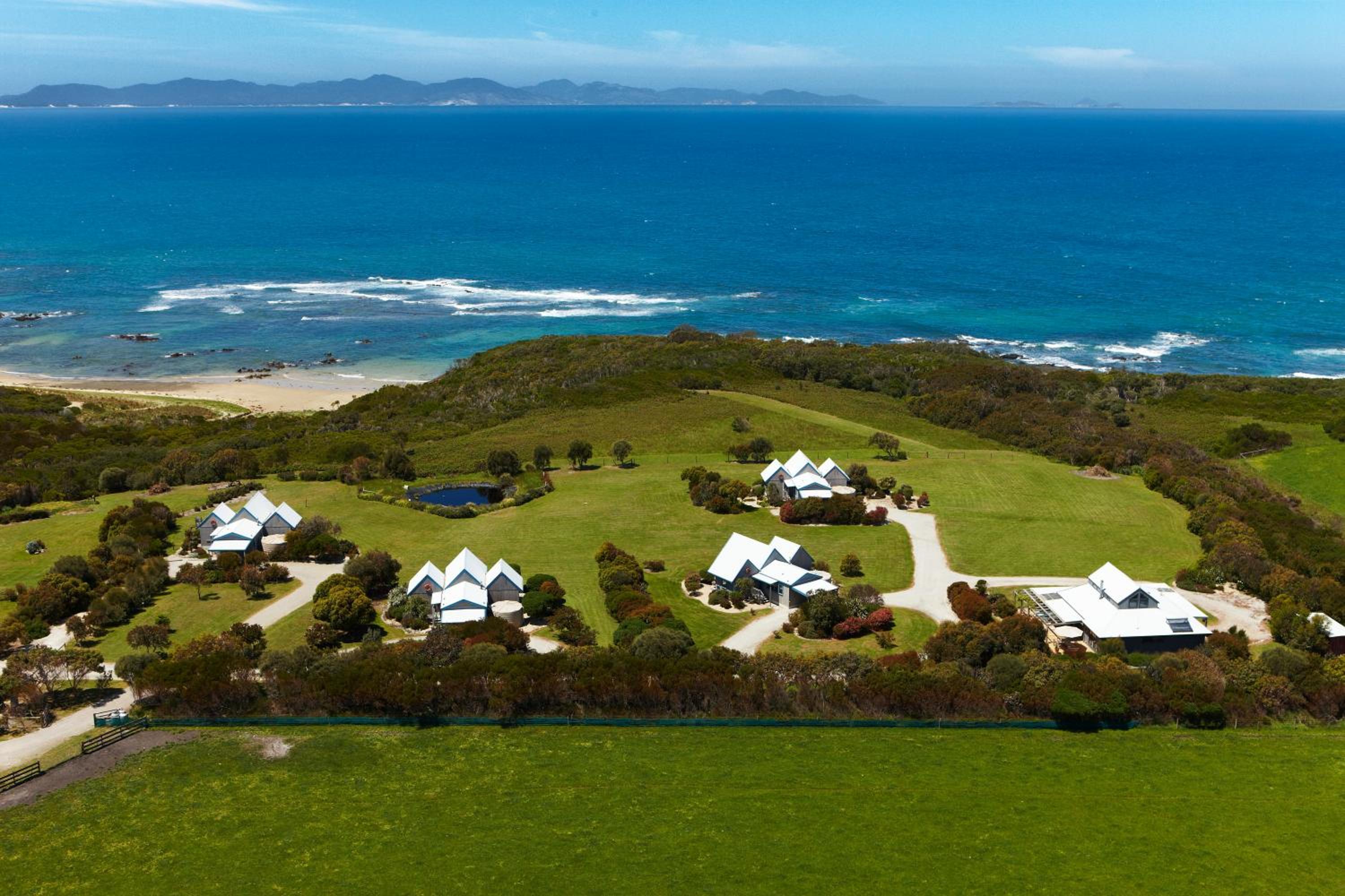 The Bear Gully Coastal Cottages offer breathtaking ocean views of Waratah Bay and Wilson’s Promontory. Each cottage is equipped with a fireplace and a patio, providing the perfect setting for a relaxing getaway.