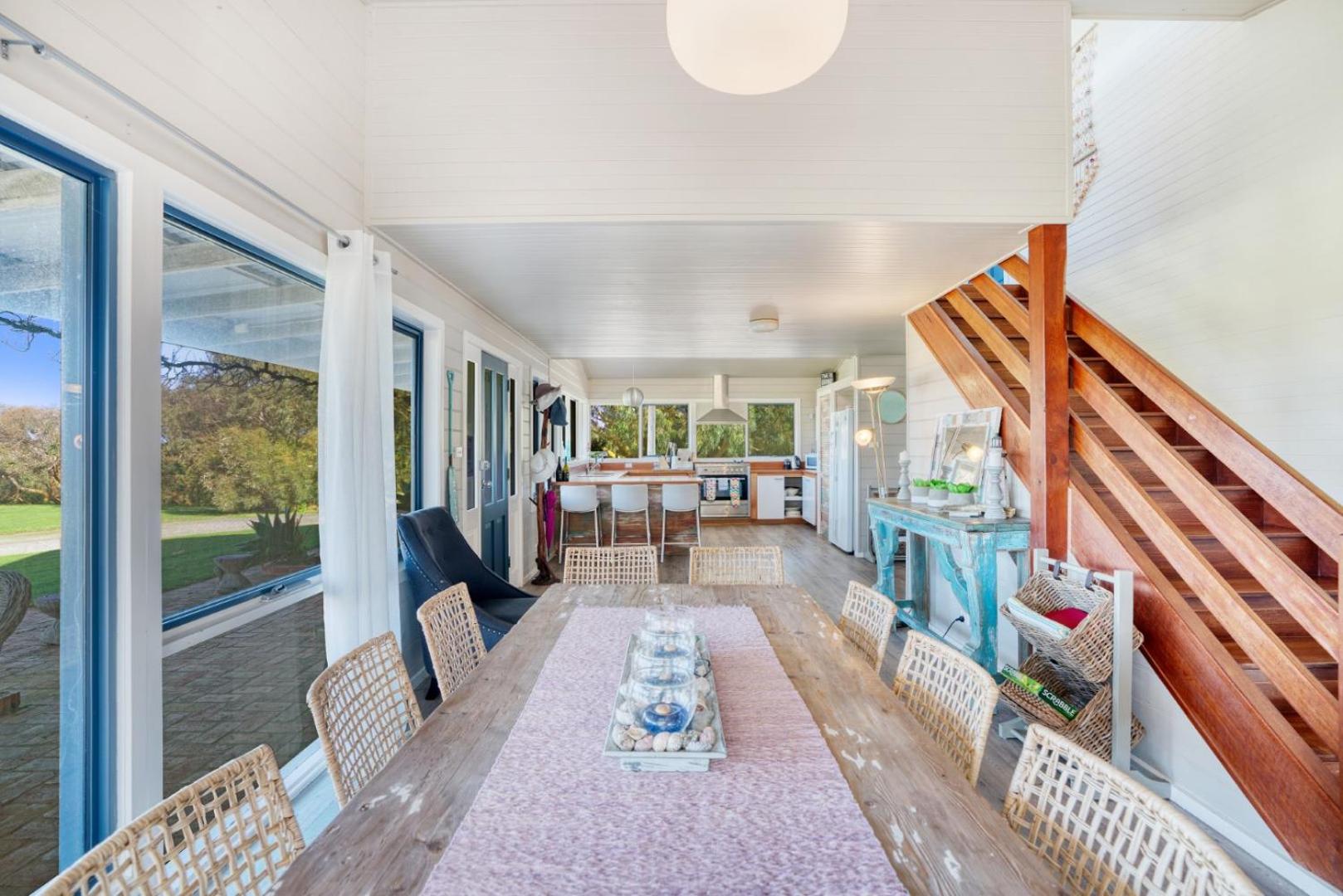 Guests can savor outdoor meals on their covered patio with BBQ facilities, overlooking the picturesque surroundings. With a tranquil local beach just a short walk away and Cape Liptrap Coastal Park nearby, there are plenty of opportunities for swimming, snorkeling, fishing, and exploring nature.