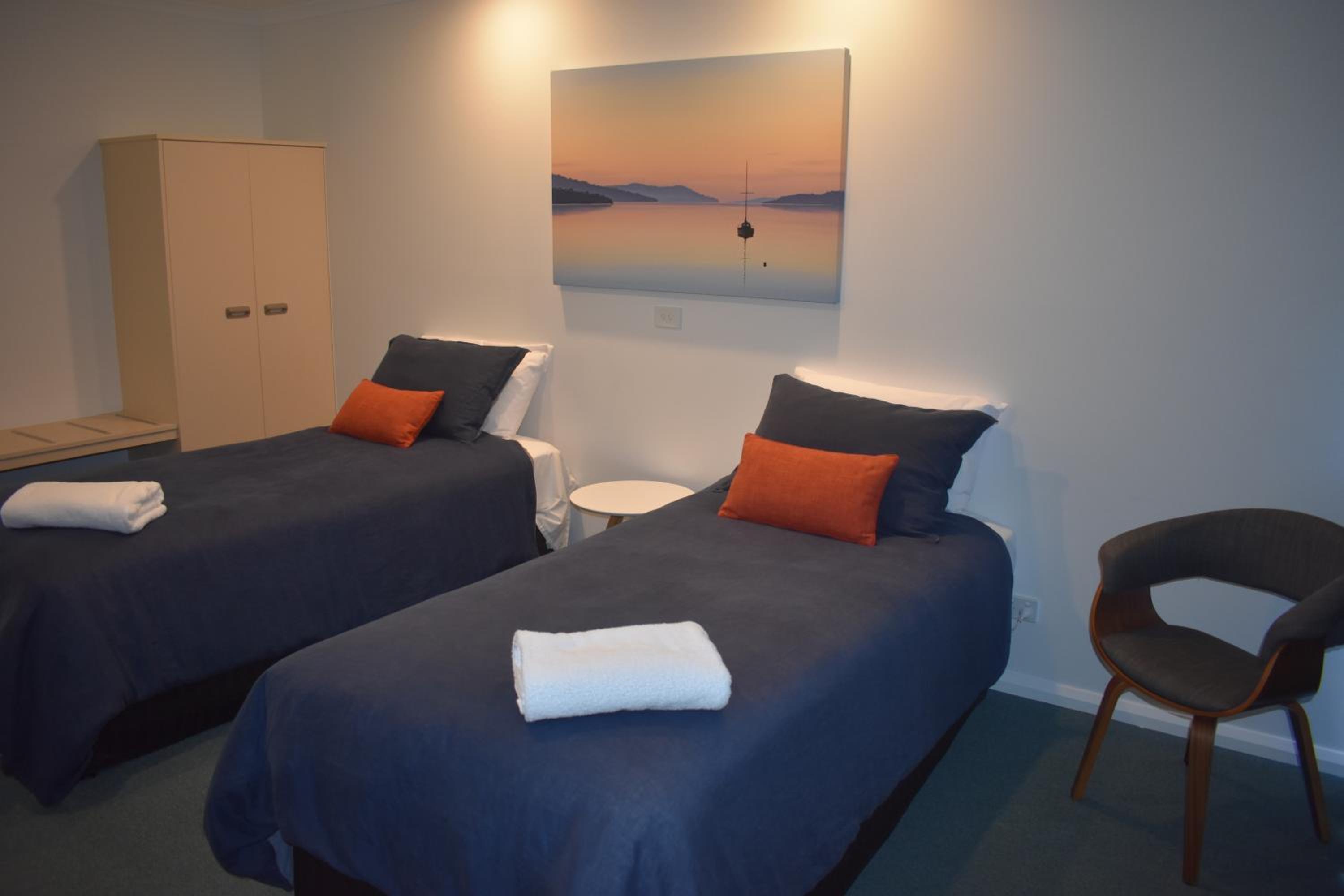 Idyllic Setting: Nestled in Port Huon, Kermandie Hotel offers a serene retreat with a garden, terrace, and cozy shared lounge for guests to unwind.