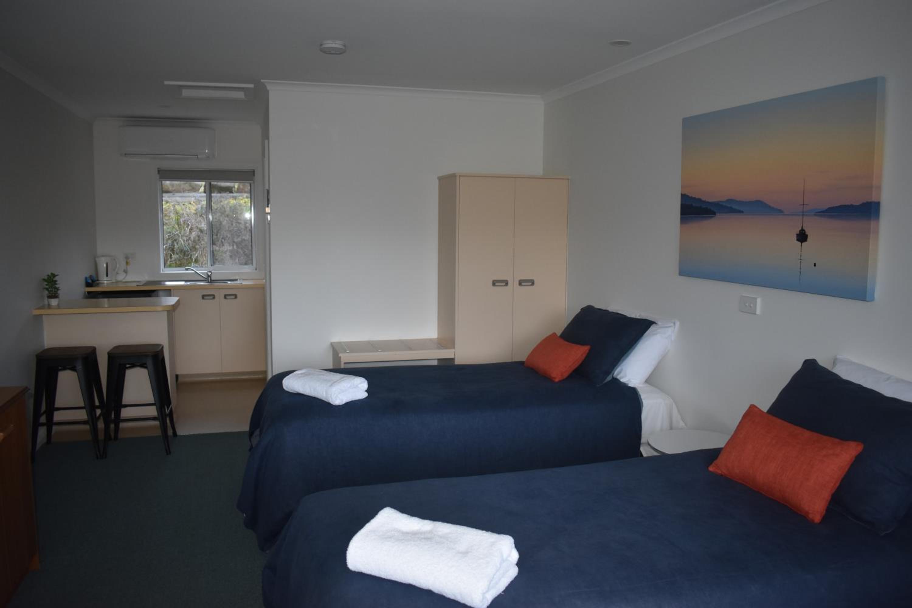 The room was very basic and dated. Bathroom had mould and broken tiles. Shower in bathtub. Bed hard and uncomfortable. Room way over priced. Kitchen closed, however staff did get a bowl of chips and i was able to get a beer to take to my room. Staff accomodating. Wouldn't recommend unless major renovations in the future.
