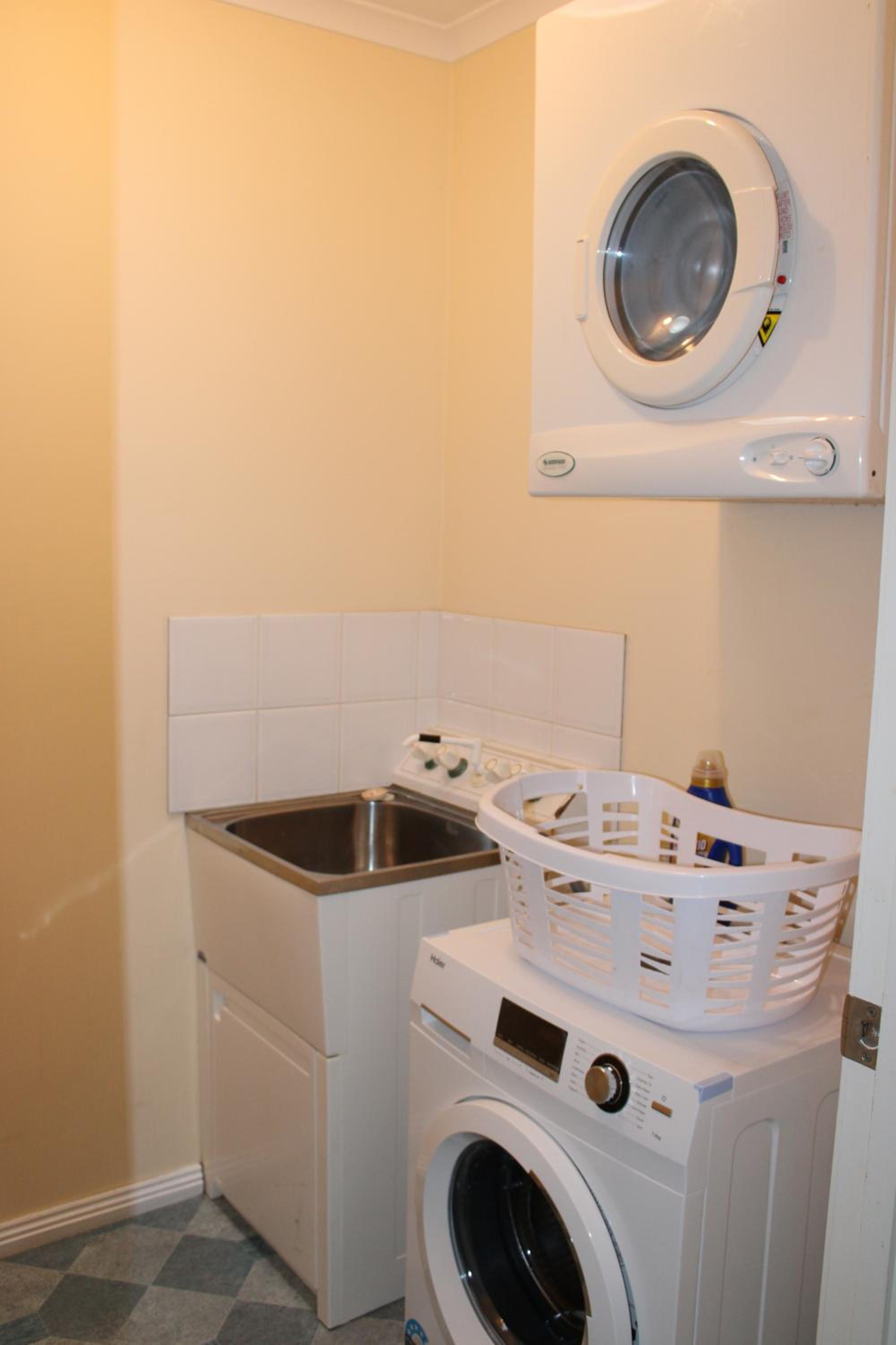 Landscaping in progress, muddy areas making it difficult to navigate to the dining room. Leaking taps in the bathroom
