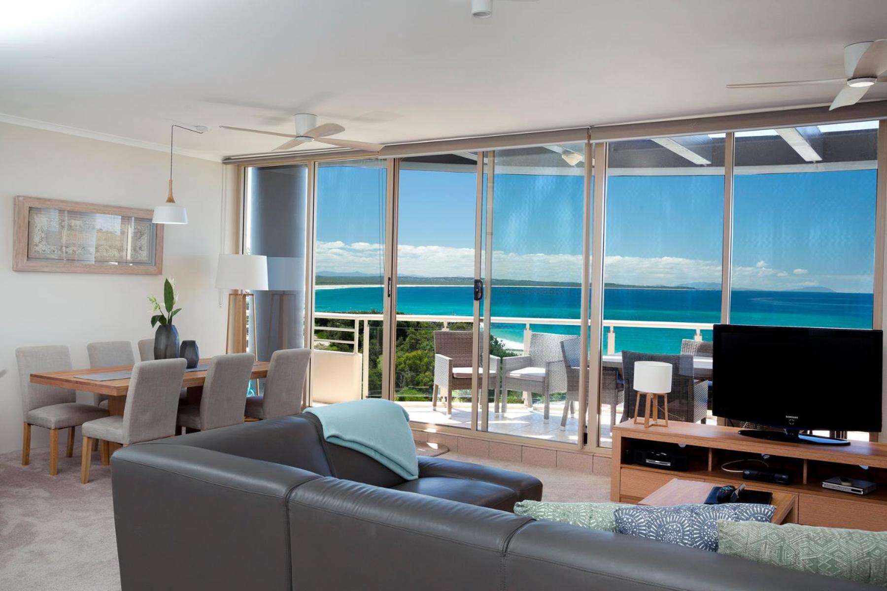 Indulge in the ultimate beachfront experience at Beaches International. Each apartment features a spa bath, private balcony, and stunning ocean views, just steps away from Forster Main Beach.