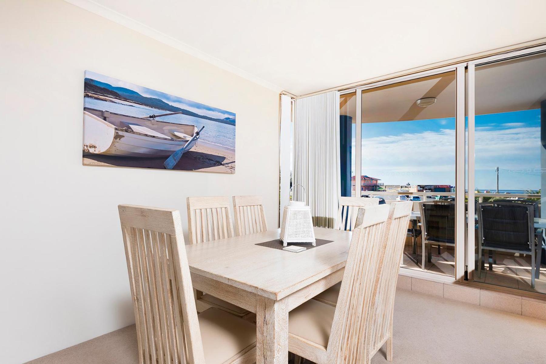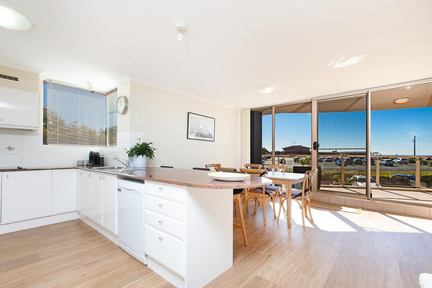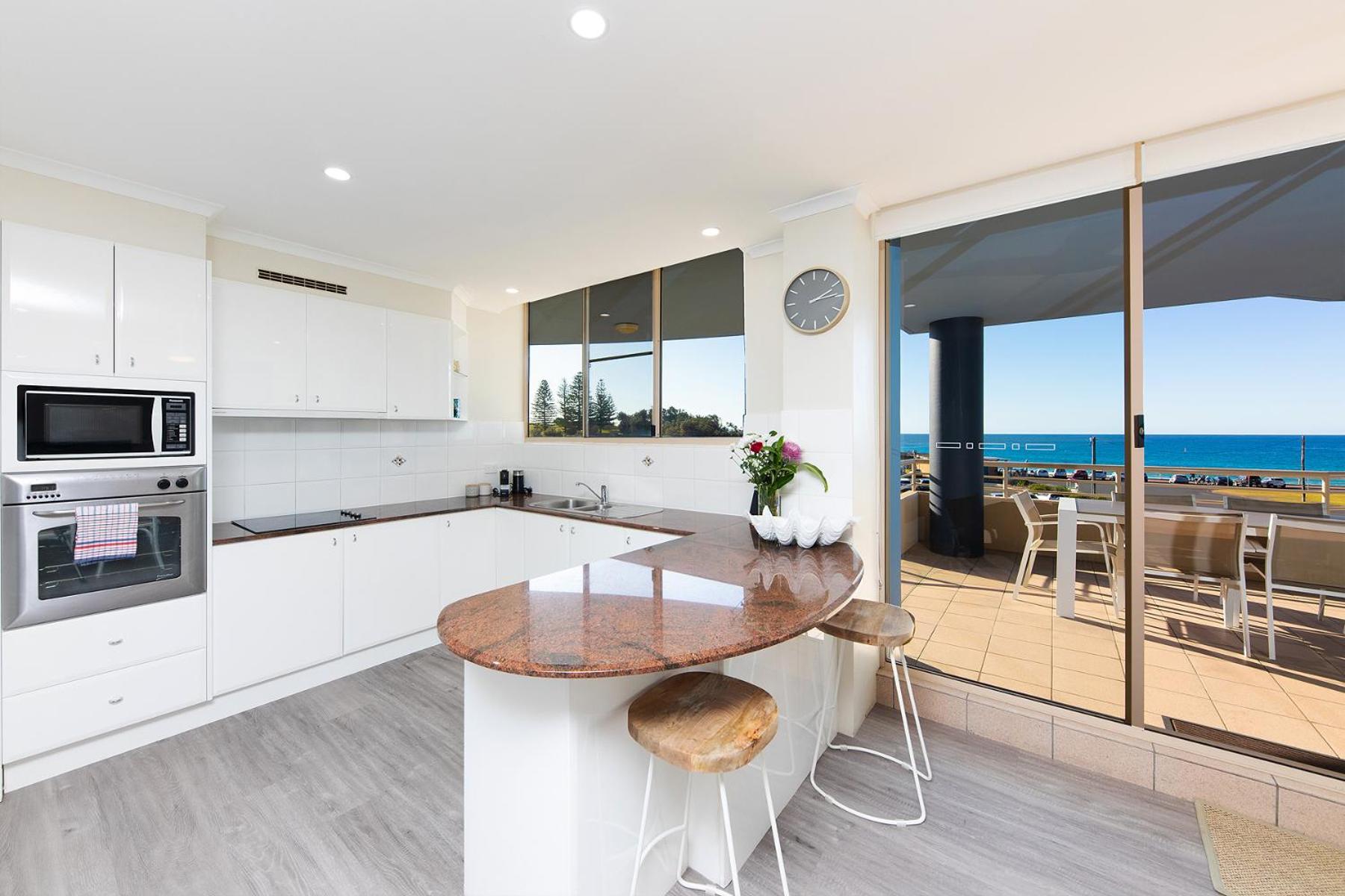 Beaches international is in an ideal location with ocean views and walking distance to Forster main beach, tidal pool, main street shopping and lots of great restaurants. Each bedroom had it's own ensuite and the main even had a spa bath! A lovely welcome gift when we arrived. The kitchen was very clean and well equipped - it even had a Nespresso machine for my daily coffee fix. Our apartment was lovely and welcoming. Furniture & decore in really good condition. Tammy & Greg were very accommodating hosts and were able to offer extra equipment for us to use to help my elderly mum during our stay. We loved it so much we have rebooked for next year.