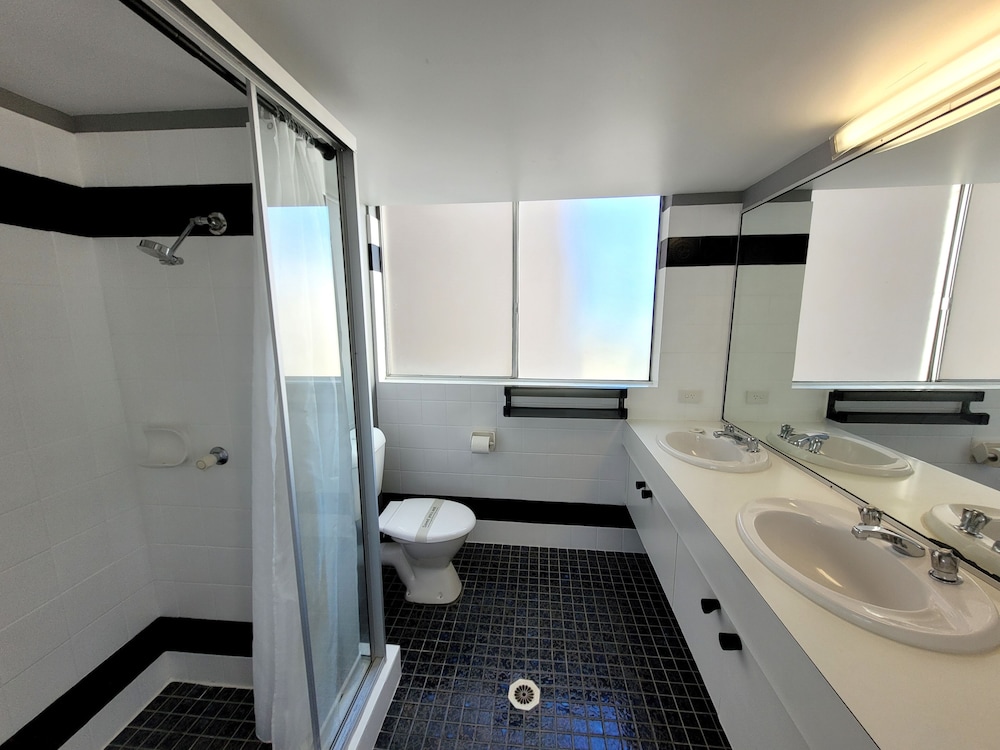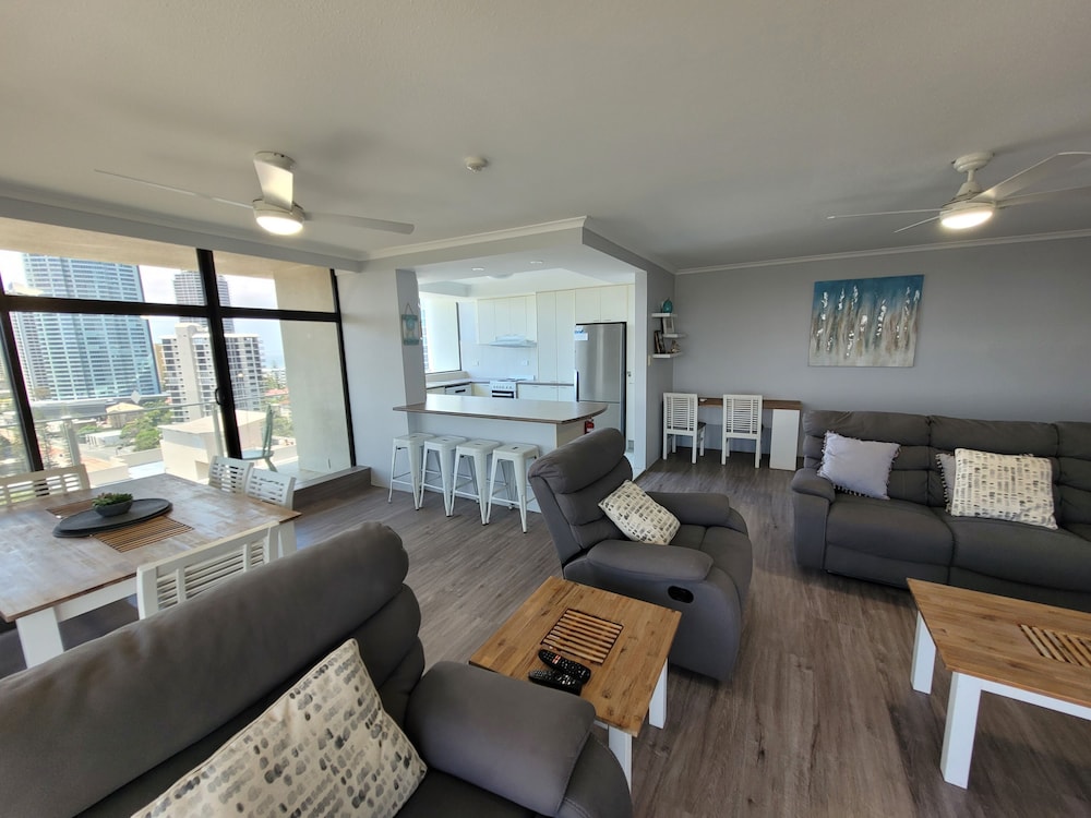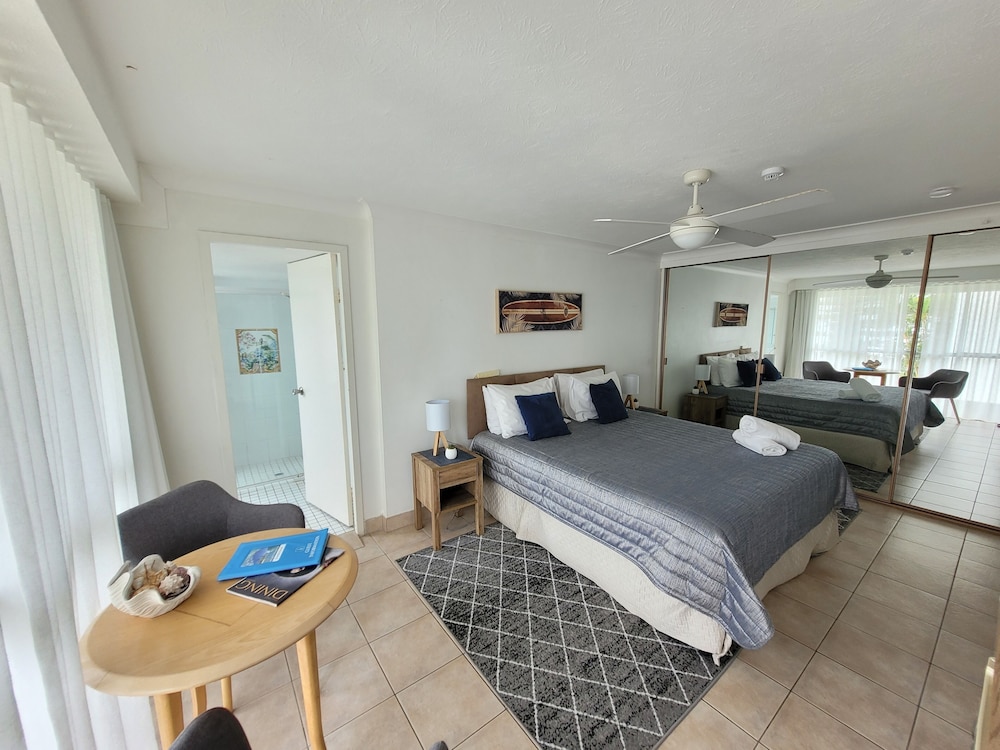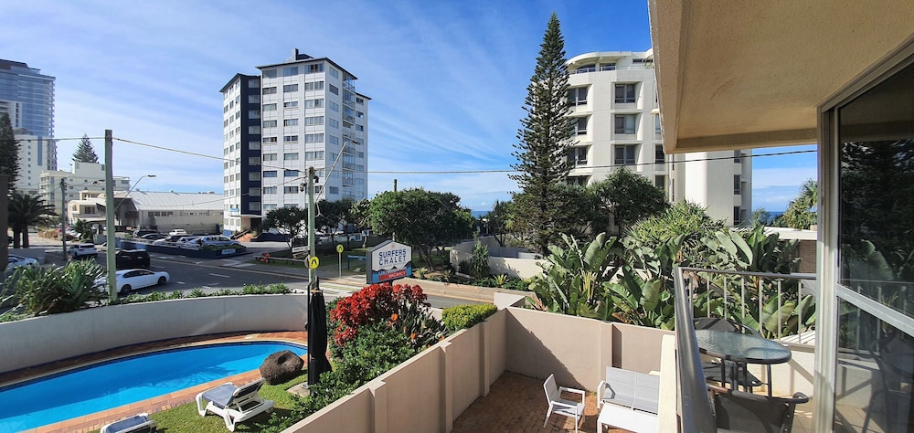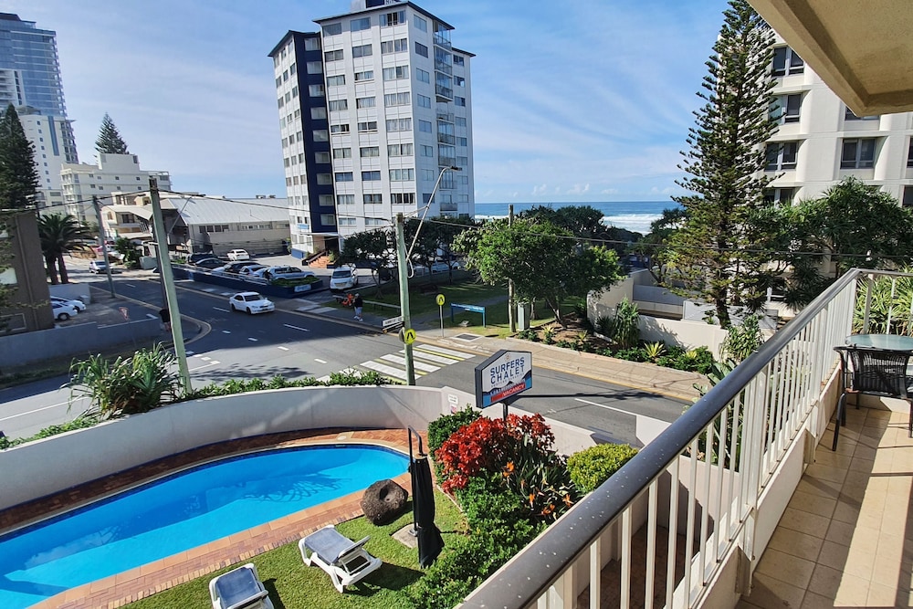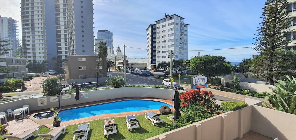 Although this was an older establishment, Surfers Chalet was perfect for our family stay.. Good sized rooms, comfy beds, beautifully furnished, pool & spa plus a park across the road & beach access. Only a 10 minute stroll to the night life, but far enough away to escape the noise.