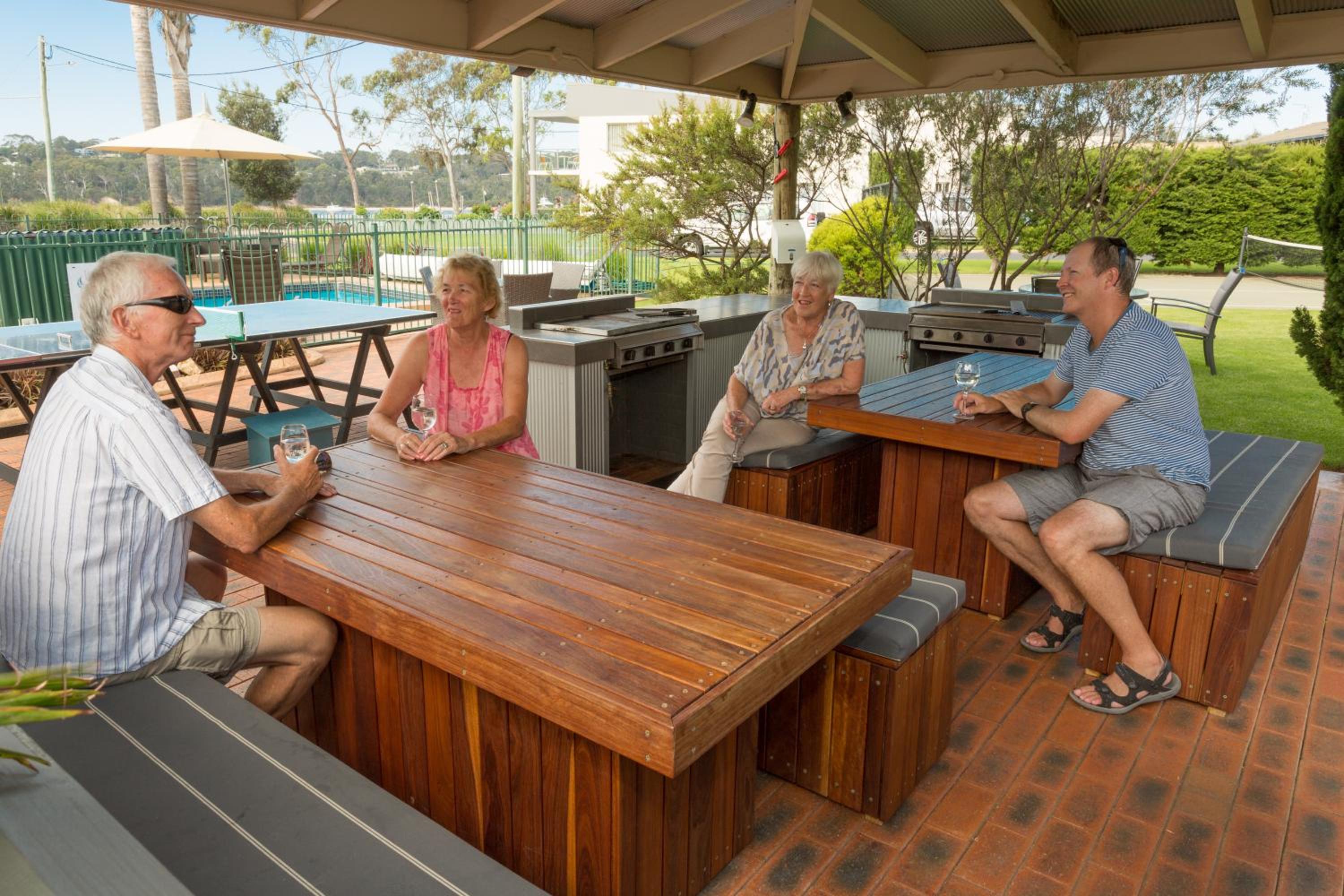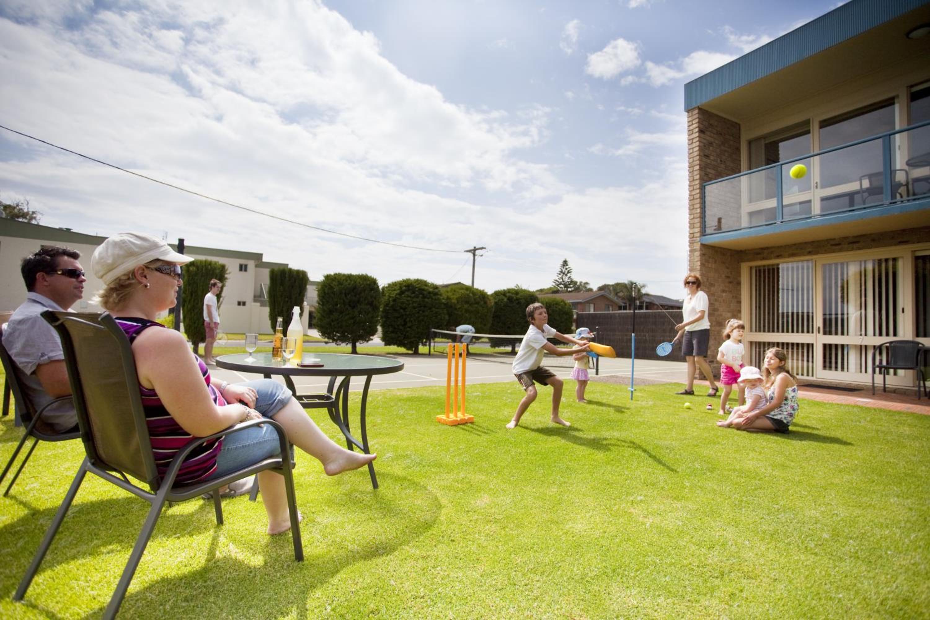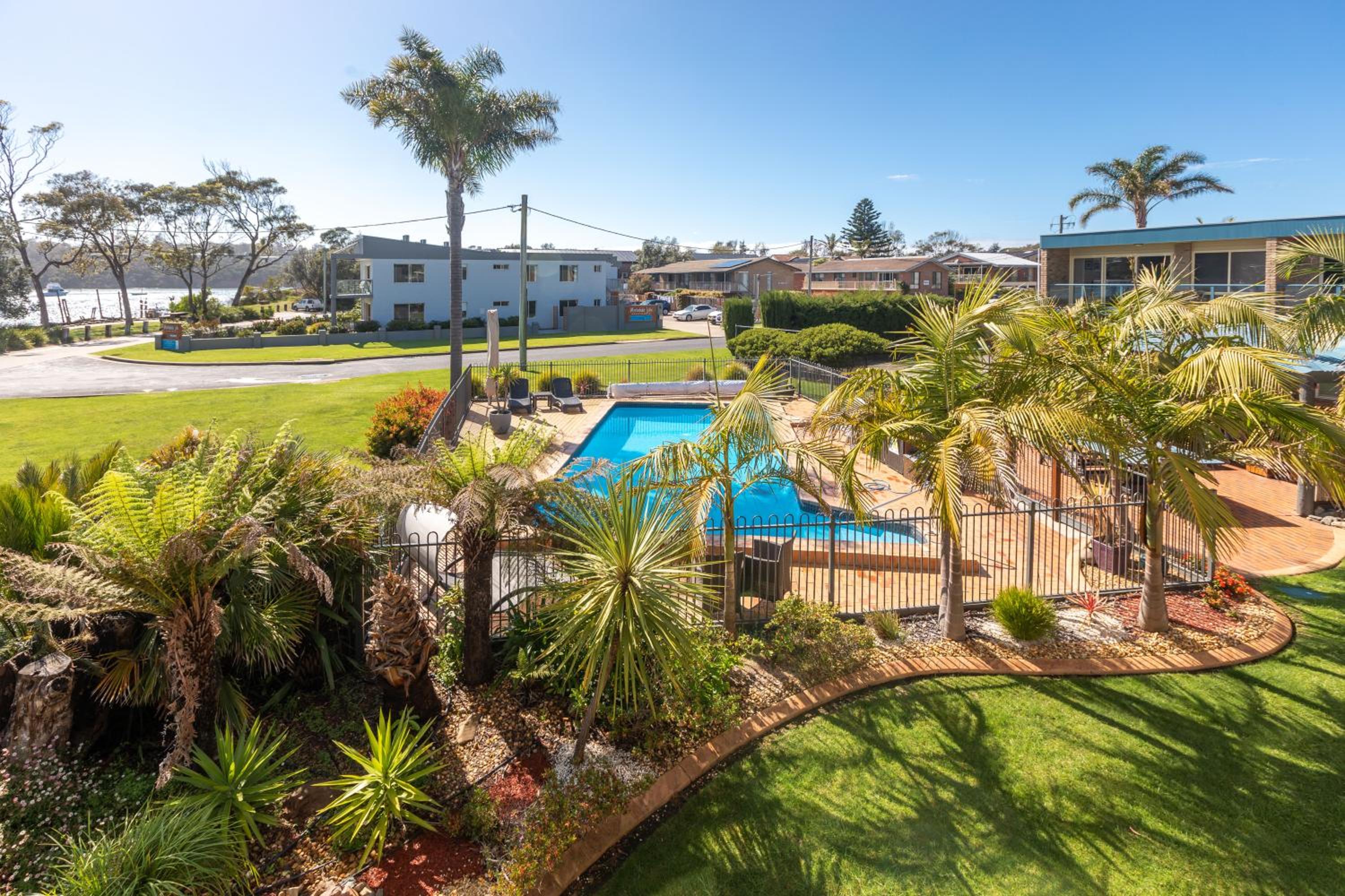 The position is perfect. An all day sunny aspect looking over Merimbula Lake. The gardens and the cleanliness of the bbq and pool areas are the nest we have seen. Congratulations to the groundskeeper