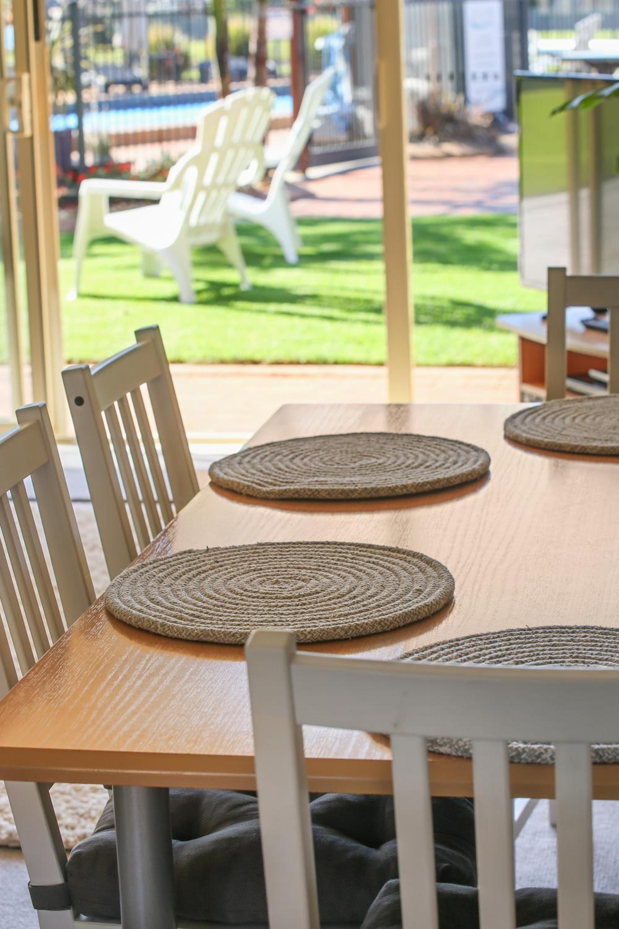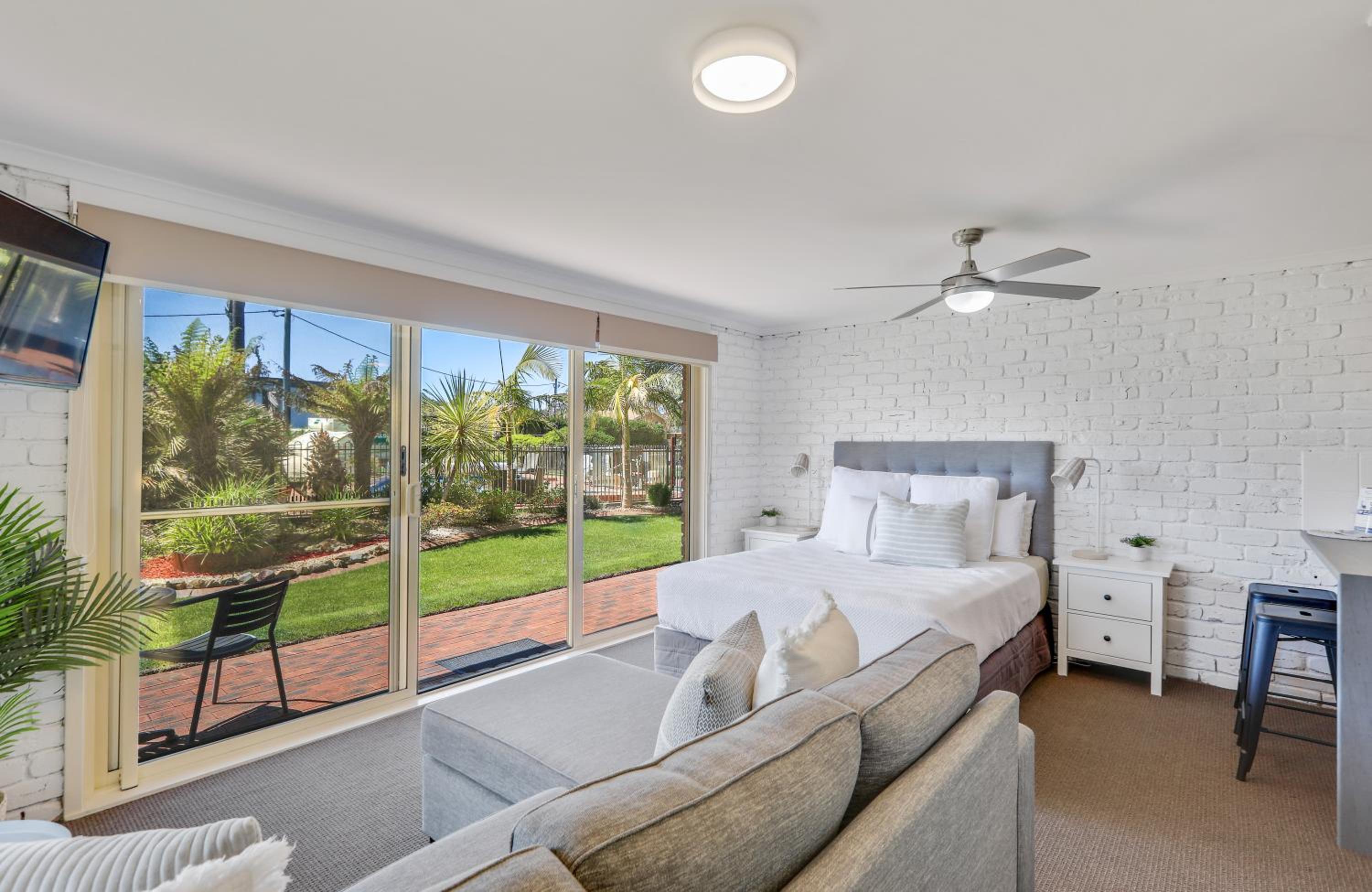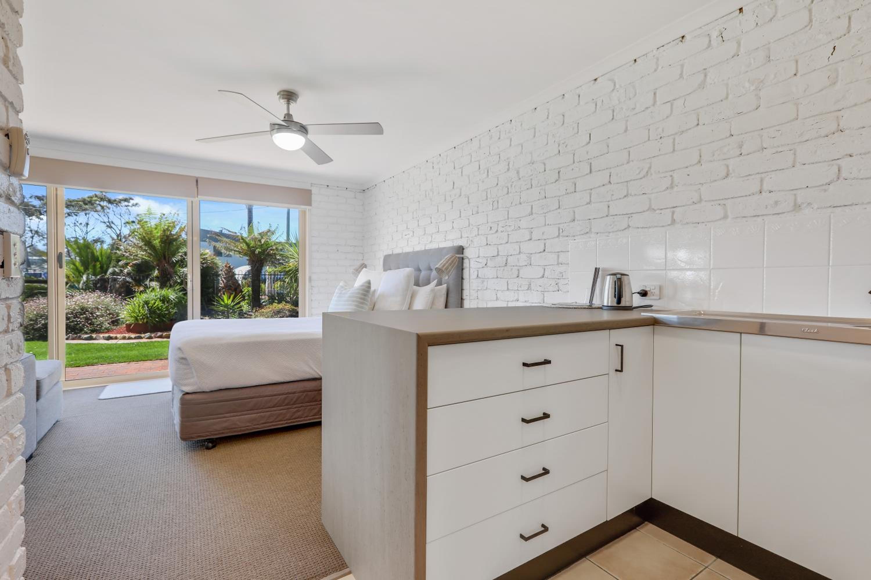 The position is perfect. An all day sunny aspect looking over Merimbula Lake. The gardens and the cleanliness of the bbq and pool areas are the nest we have seen. Congratulations to the groundskeeper