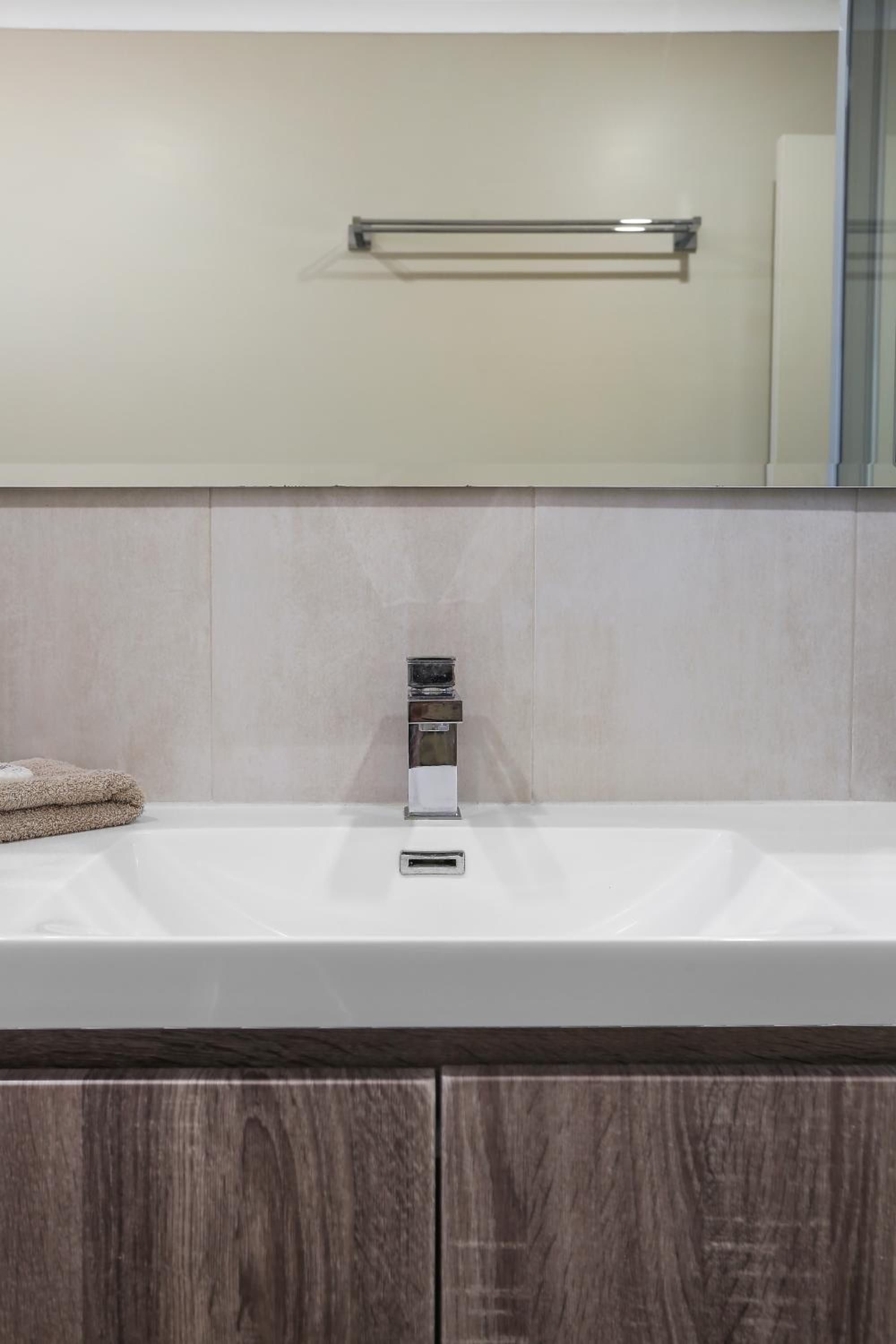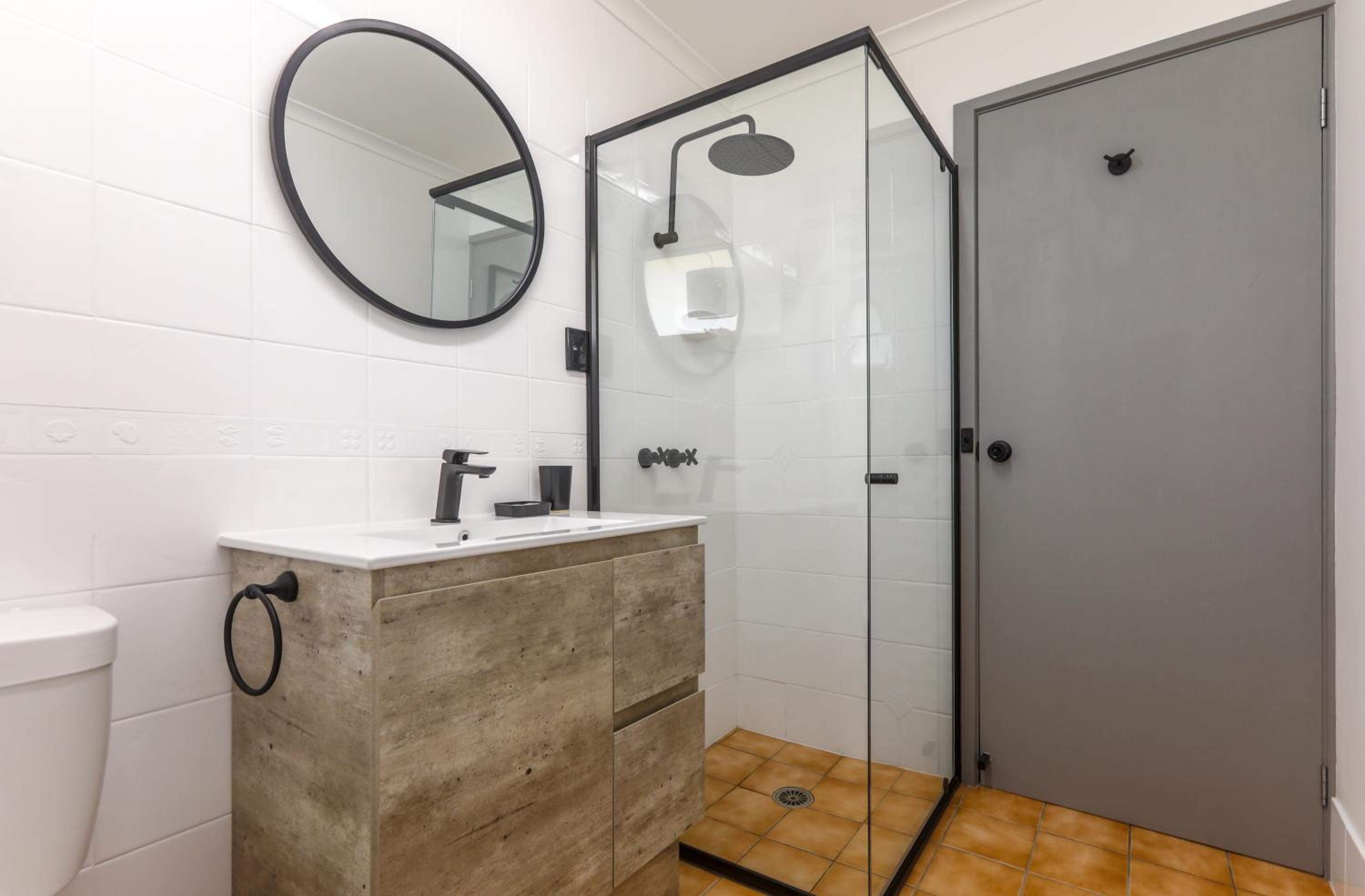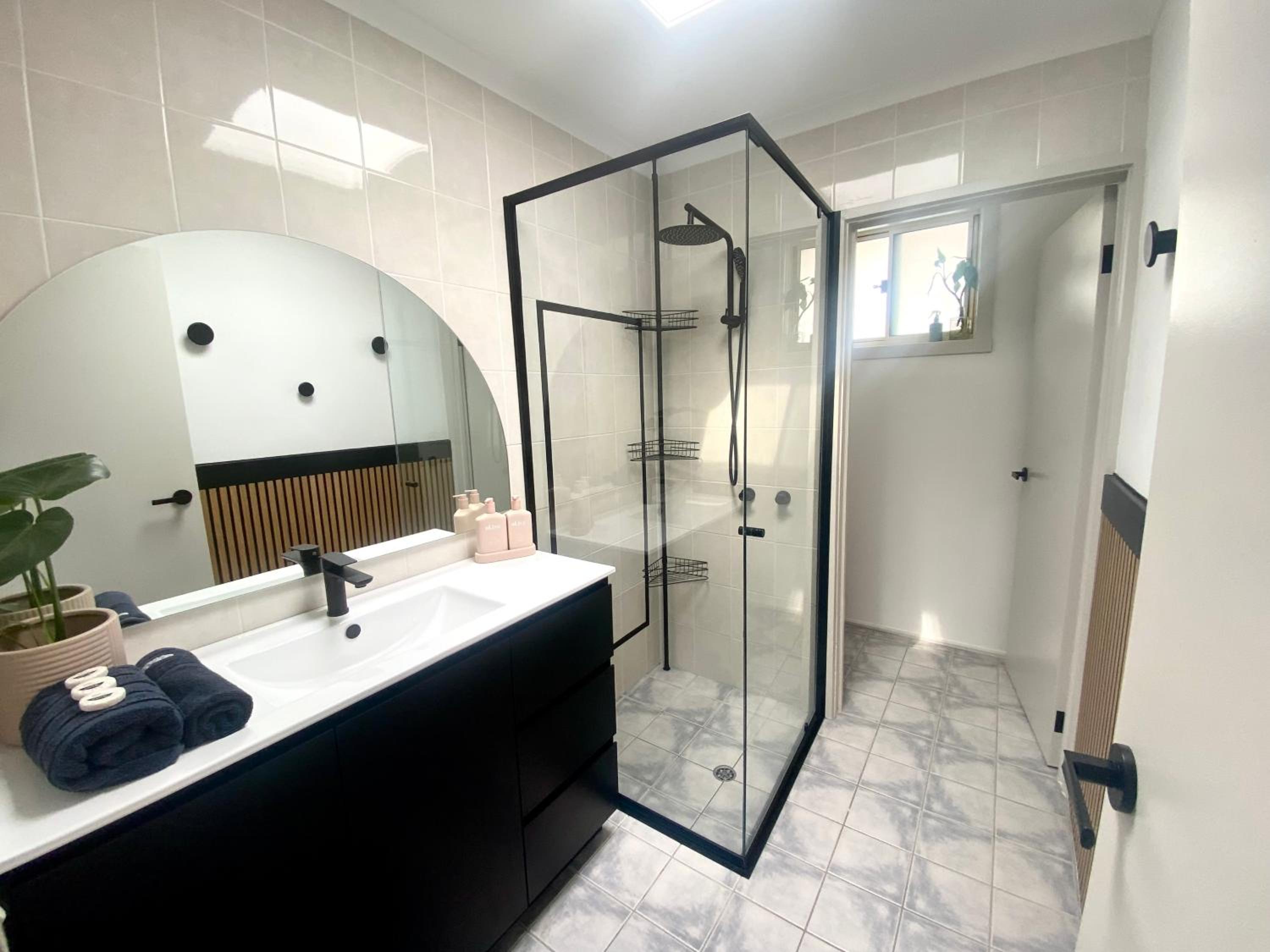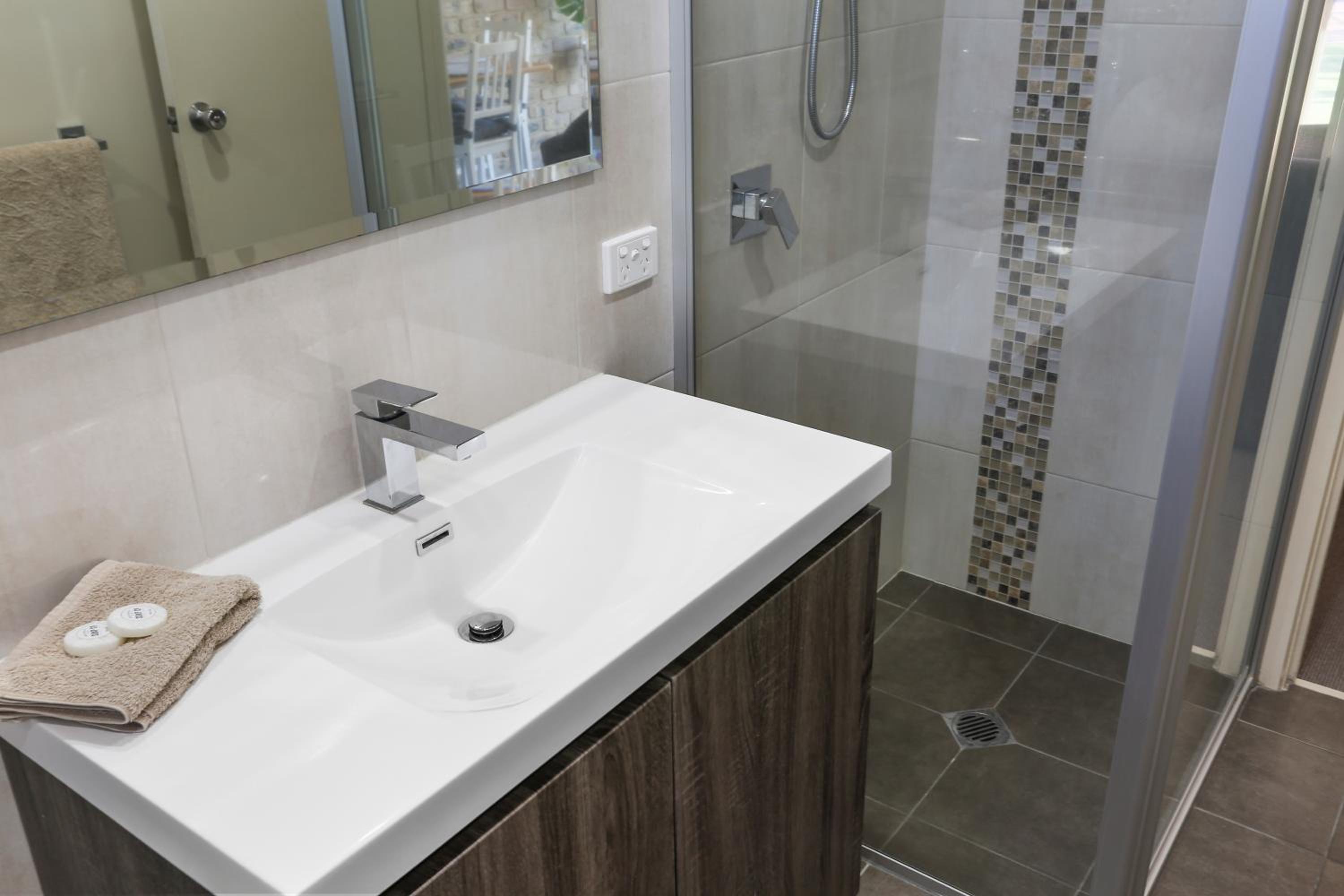 Great location, close to lake, beach & Mitchie’s jetty. Terrific hot water, fast & great pressure. Well maintained grounds.
