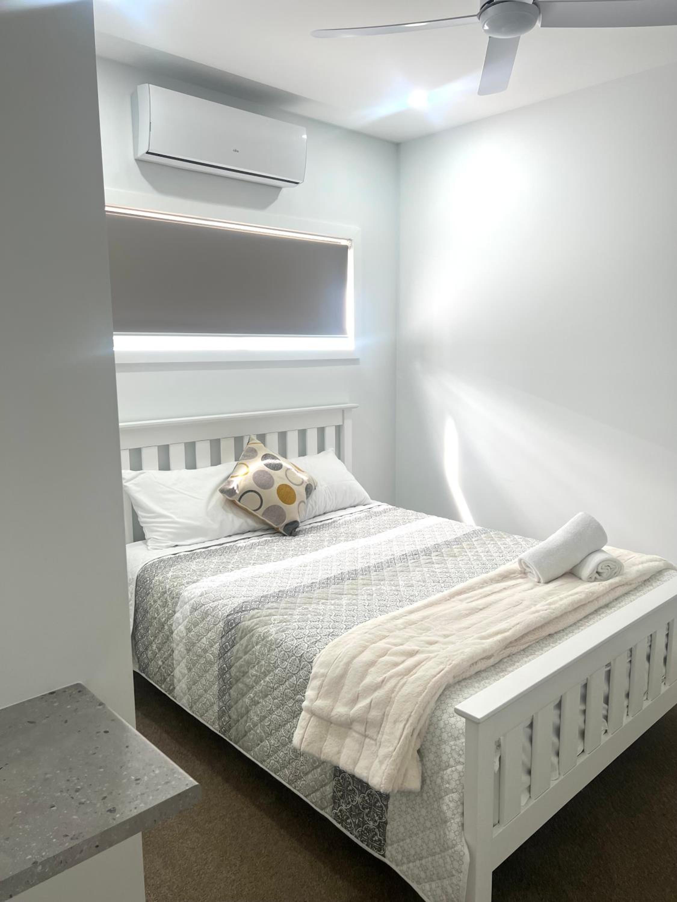Access wasn’t easy at start and we called number and received no response to help us complete self check in. Split system heaters didn’t work so rooms were freezing couldn’t heat them up despite heater being on all night. Hot water not on as gas had run out this was sorted after a few phone calls. Basically room not ready for visitors