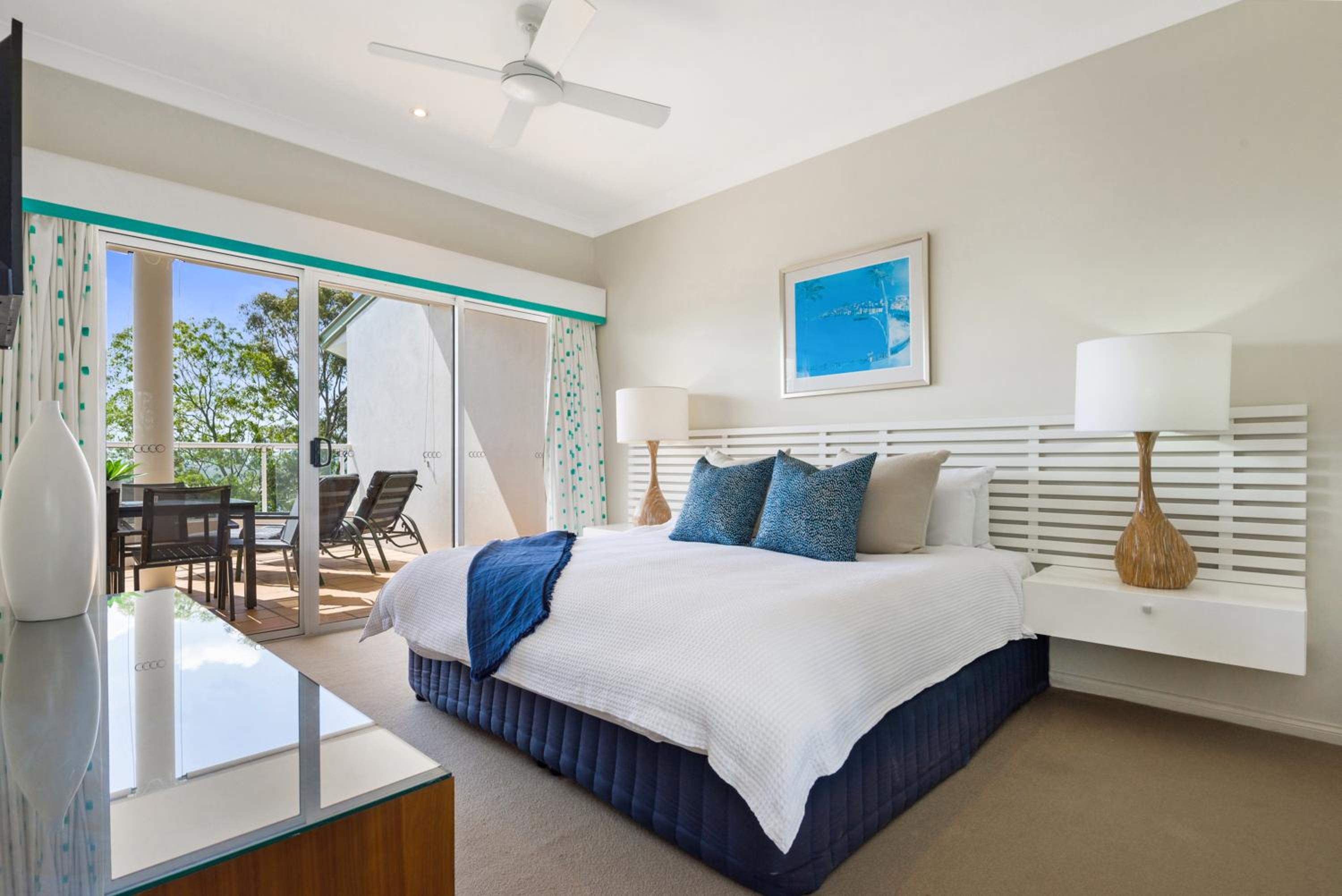 Experience stunning panoramic views over Laguna Bay and Noosa hinterland from your private balcony at The Lookout Resort.