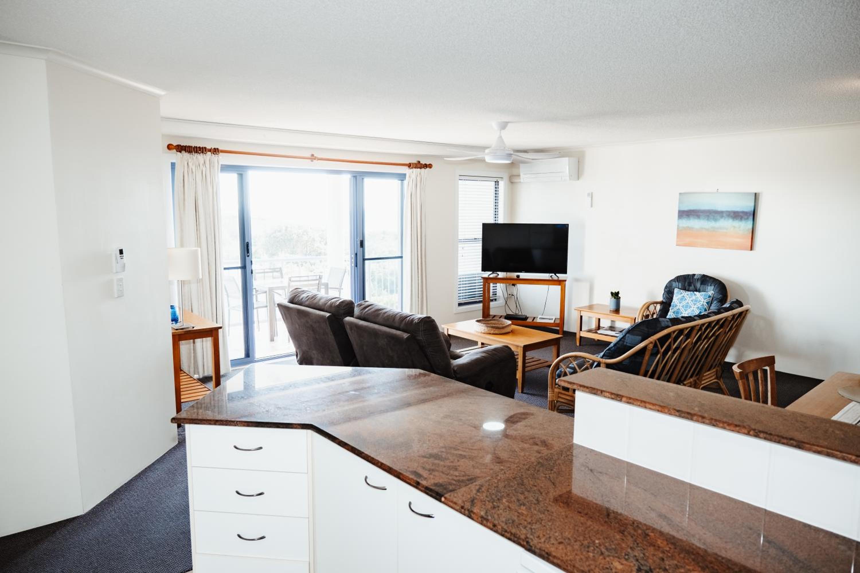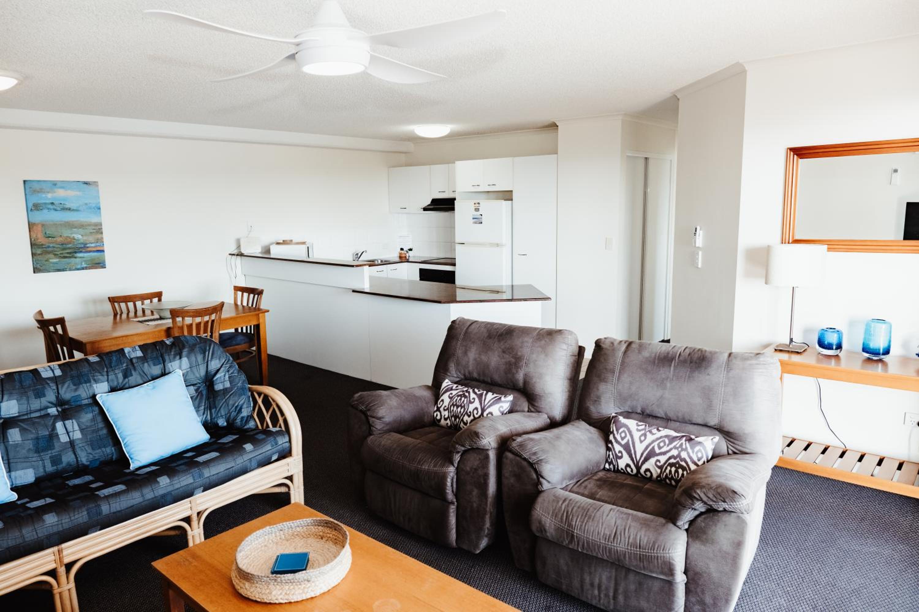 Stayed in apartment 14 and it was a beautiful view from the outside deck. The apartment had everything we needed :) Through the back gate is the walkway to the beach which is so handy. I was greeted by Tony at reception and he was very friendly and informative with places to eat etc will definitely be coming back