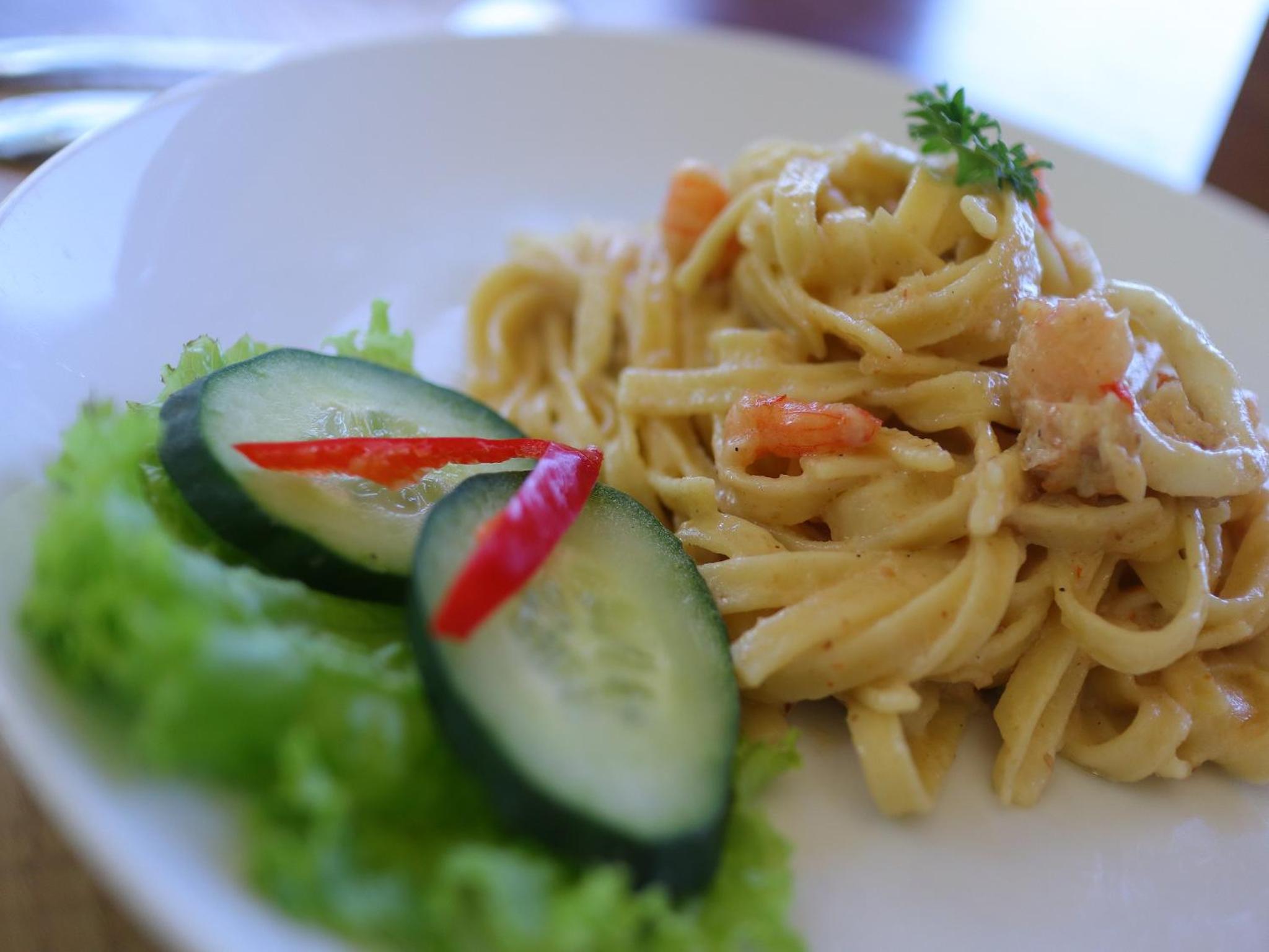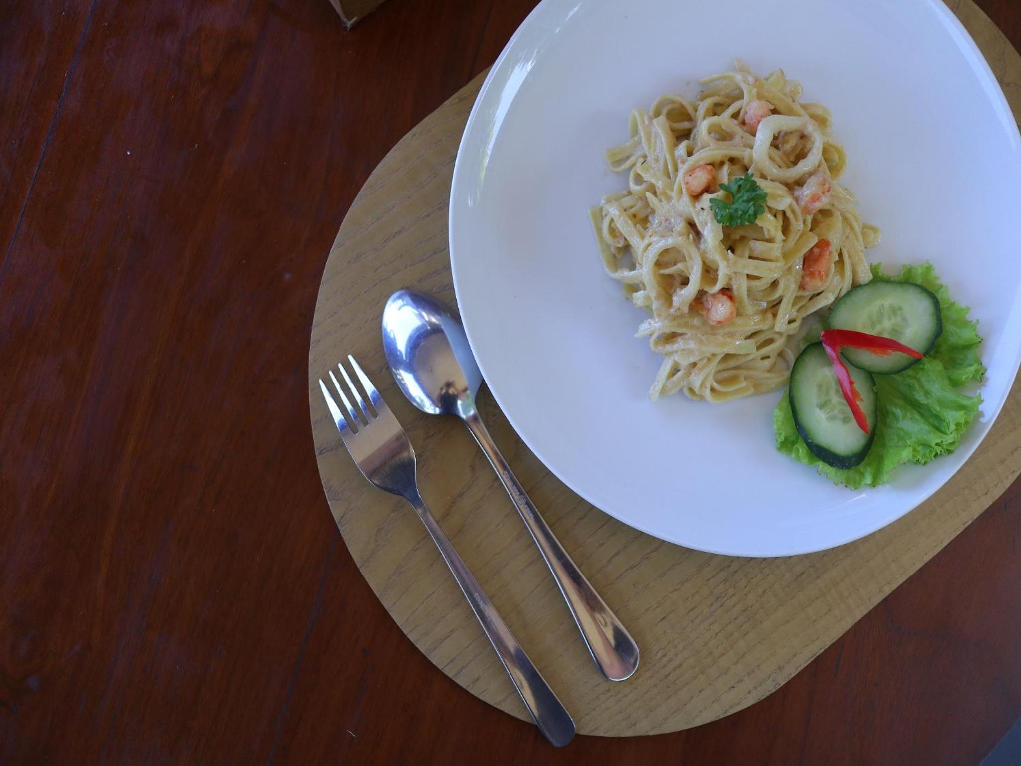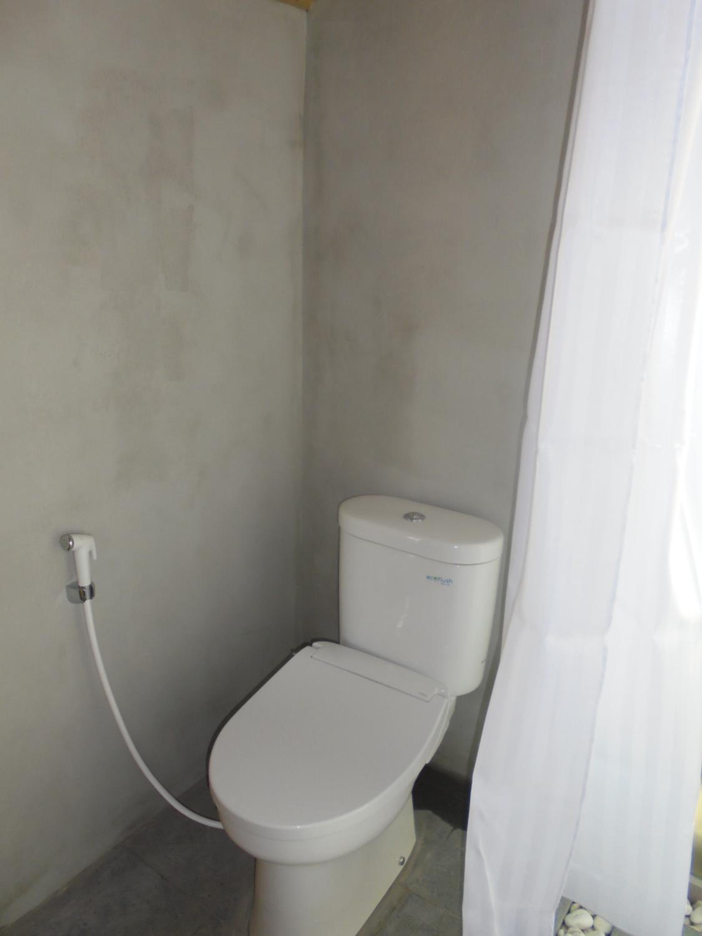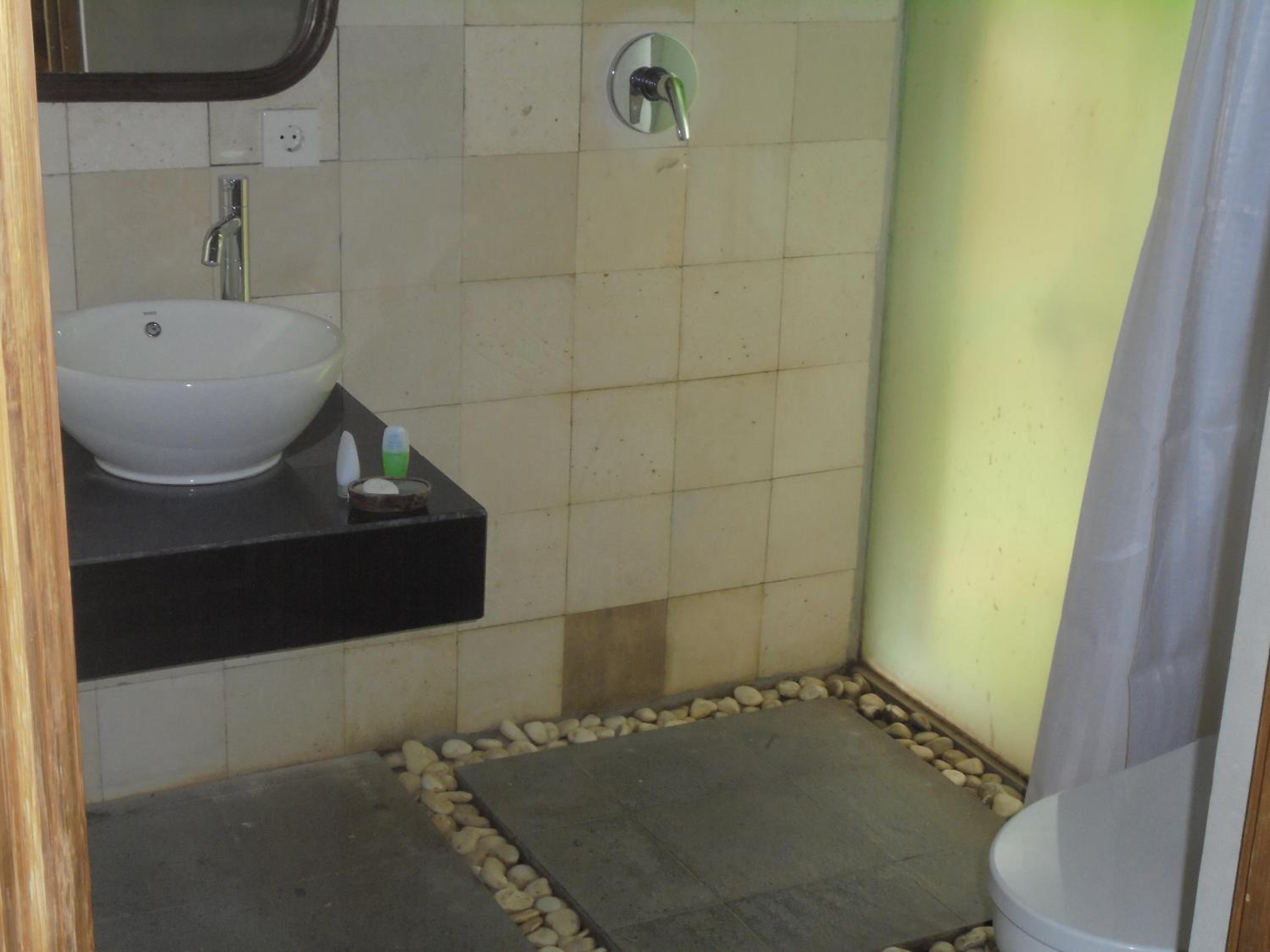 mon bungalow en bambou était à coté d'un écoulement d'eau qui faisait un bruit d'enfer jour et nuit, les toilettes au rdc ne sont pas très pratiques pour les personnes agées , les cabanes qui sont tout en bas de l'hotel nécéssitent de monter pour aller au petit déjeuner et à la réception (plus de 50 marches) TV pas de chaines étrangères