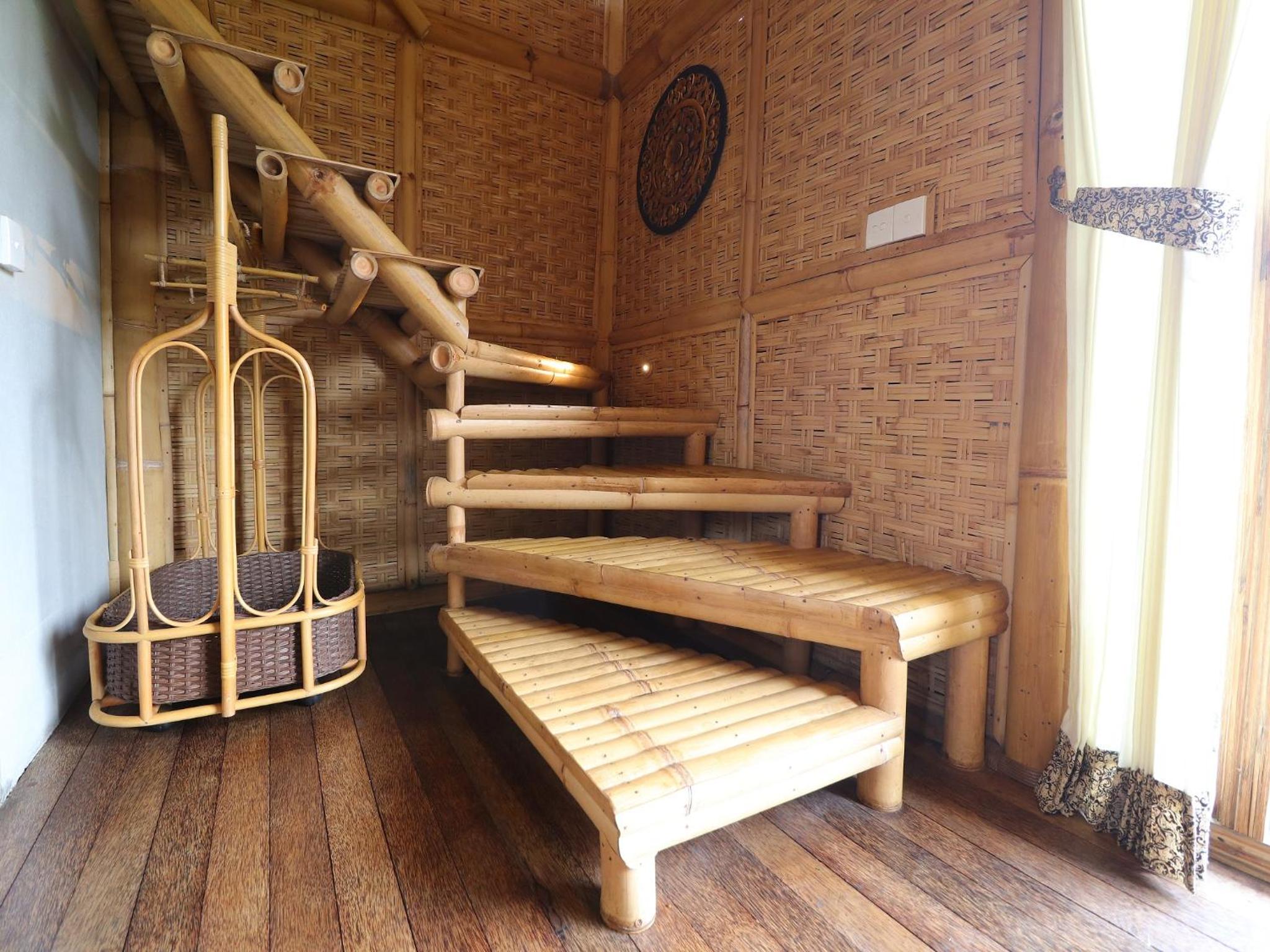 The house is said to have a garden view but in reality the view was to the walls of other bamboo homes