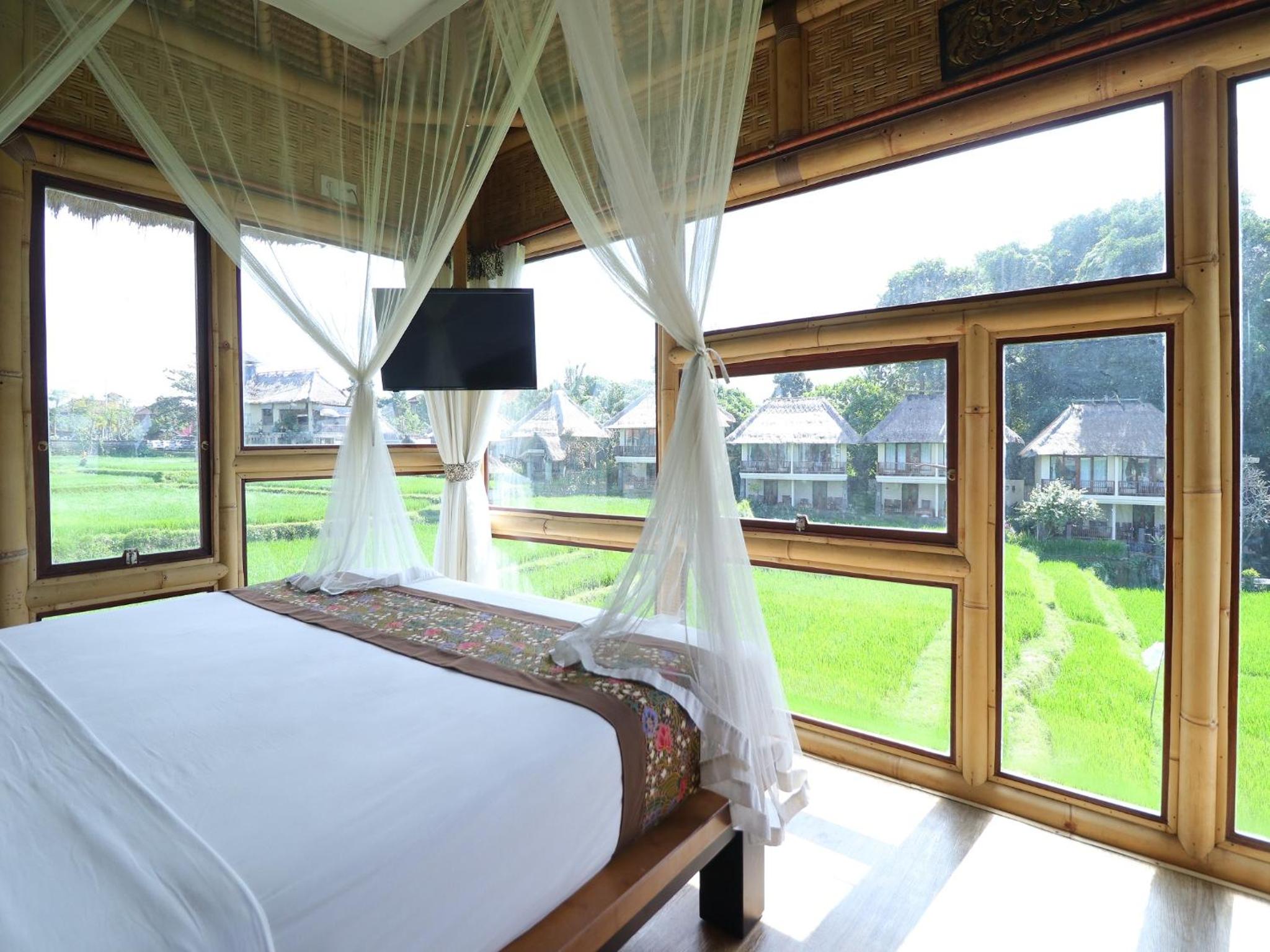 I stayed in one of the bamboo houses, it was super comfortable and unique, the location was perfect for me - close to cafes, walking distance to shops, yoga barn and other Ubud favorites. Because they have their own rice field, it honestly felt like I was in a distant location in nature and not in the middle of a very busy city.