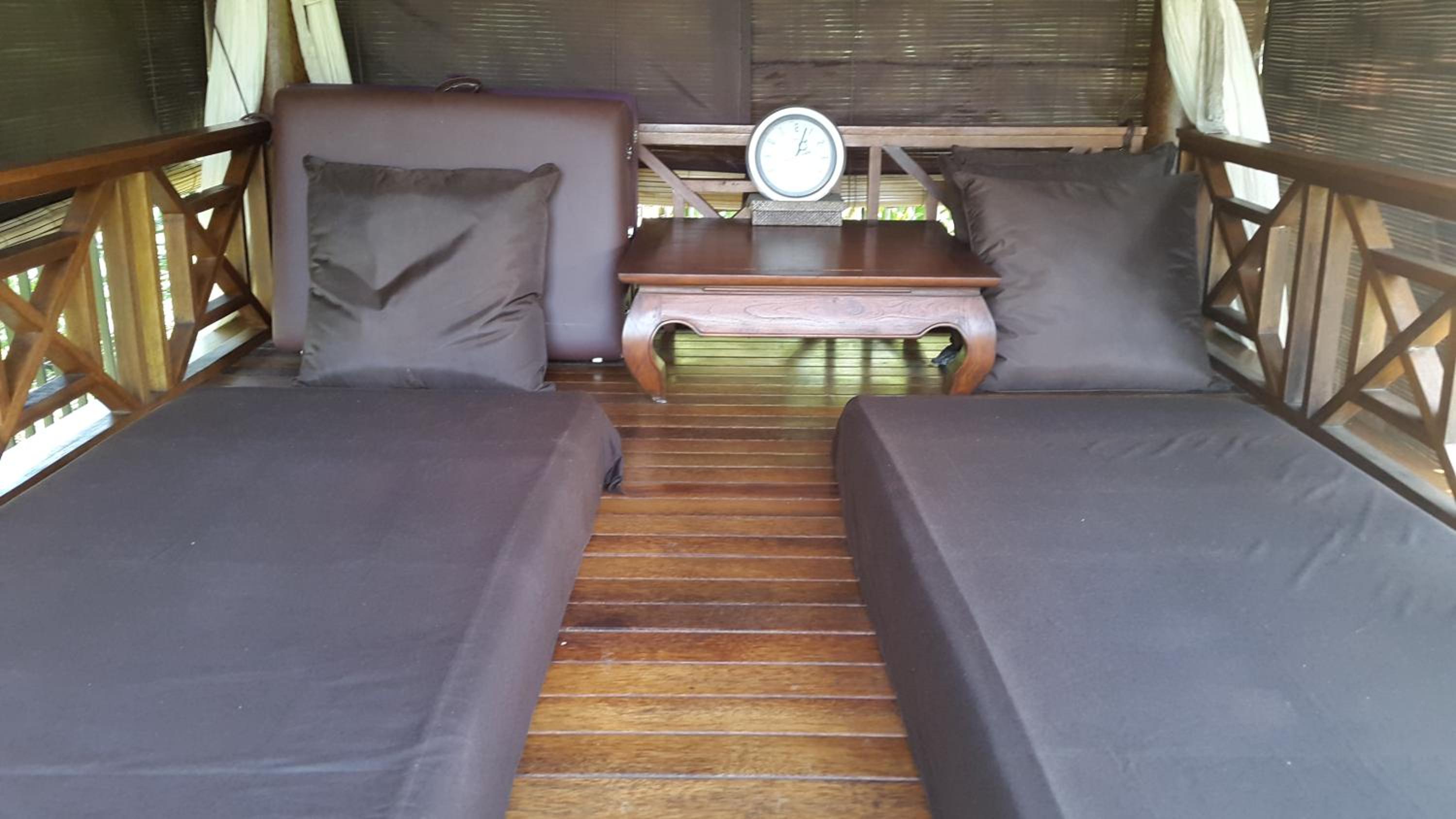 Het huisje was niet schoon geen tafeltje of stoel in het bamboe huisje 😩