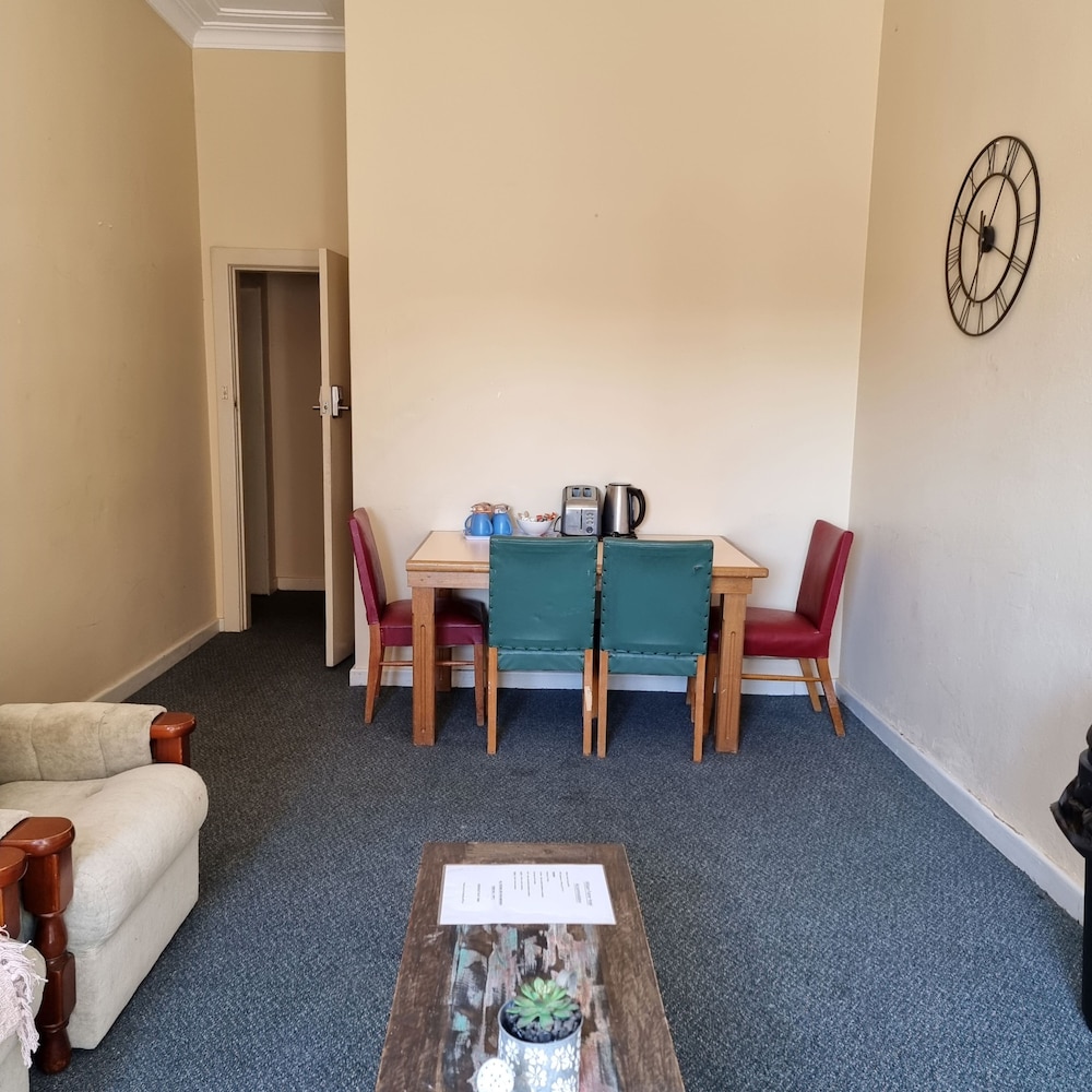 The hotel/bars/dining itself is very good, however the accommodation was terrible. Peeling paint, threadbare carpets, clean sheets but a stained blanket. No tv, no crockery (even though there were teabags, coffee and a kettle!), and the unisex bathroom was obviously designed for skinny males. I discovered the female bathroom around the corridor, which was marginally better. For $10 more, I have booked a different hotel for my return journey, which has all the necessary amenities in it. Disappointed.